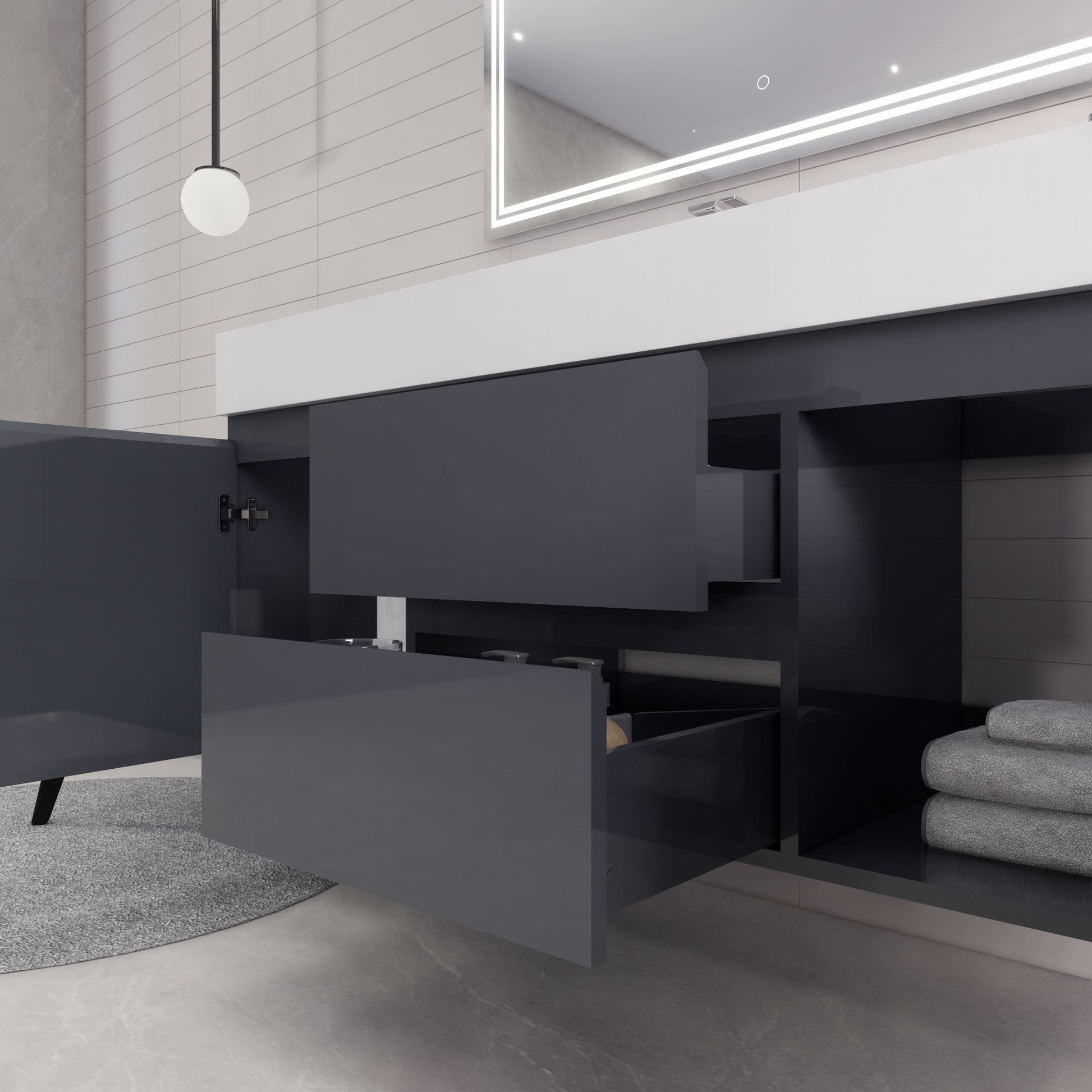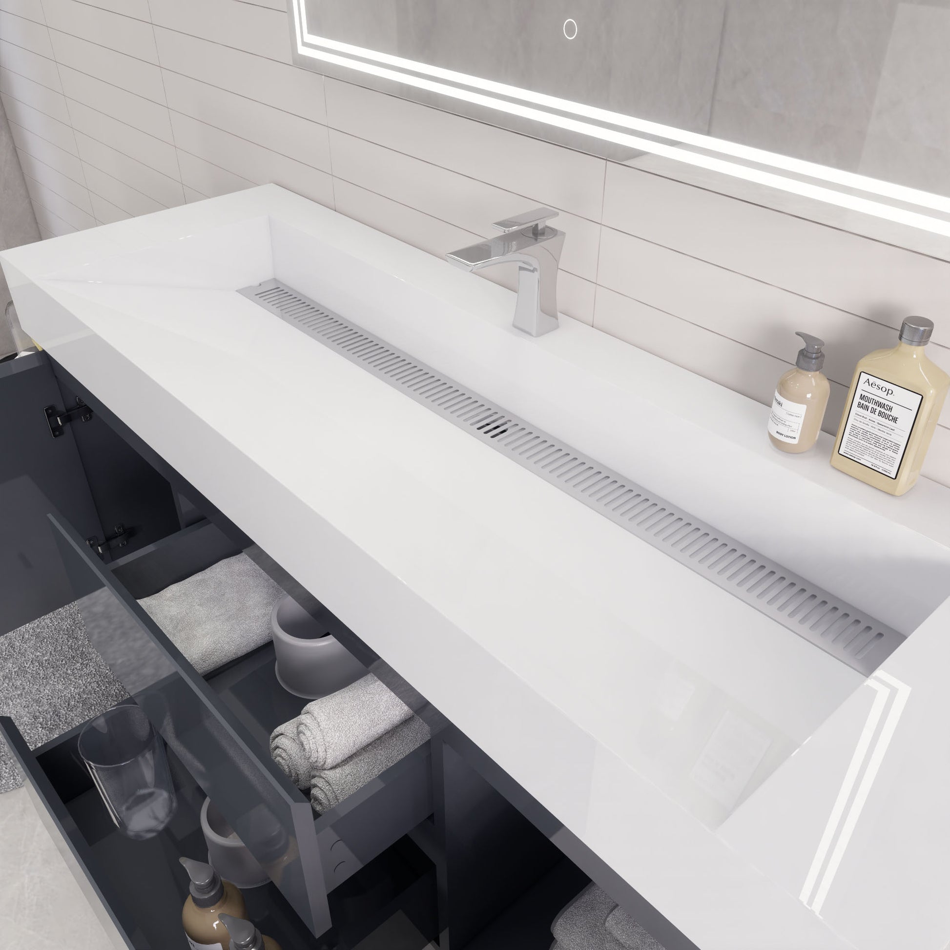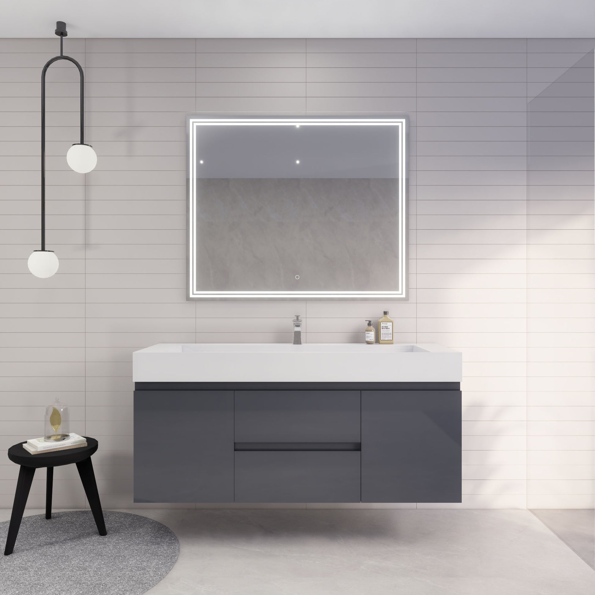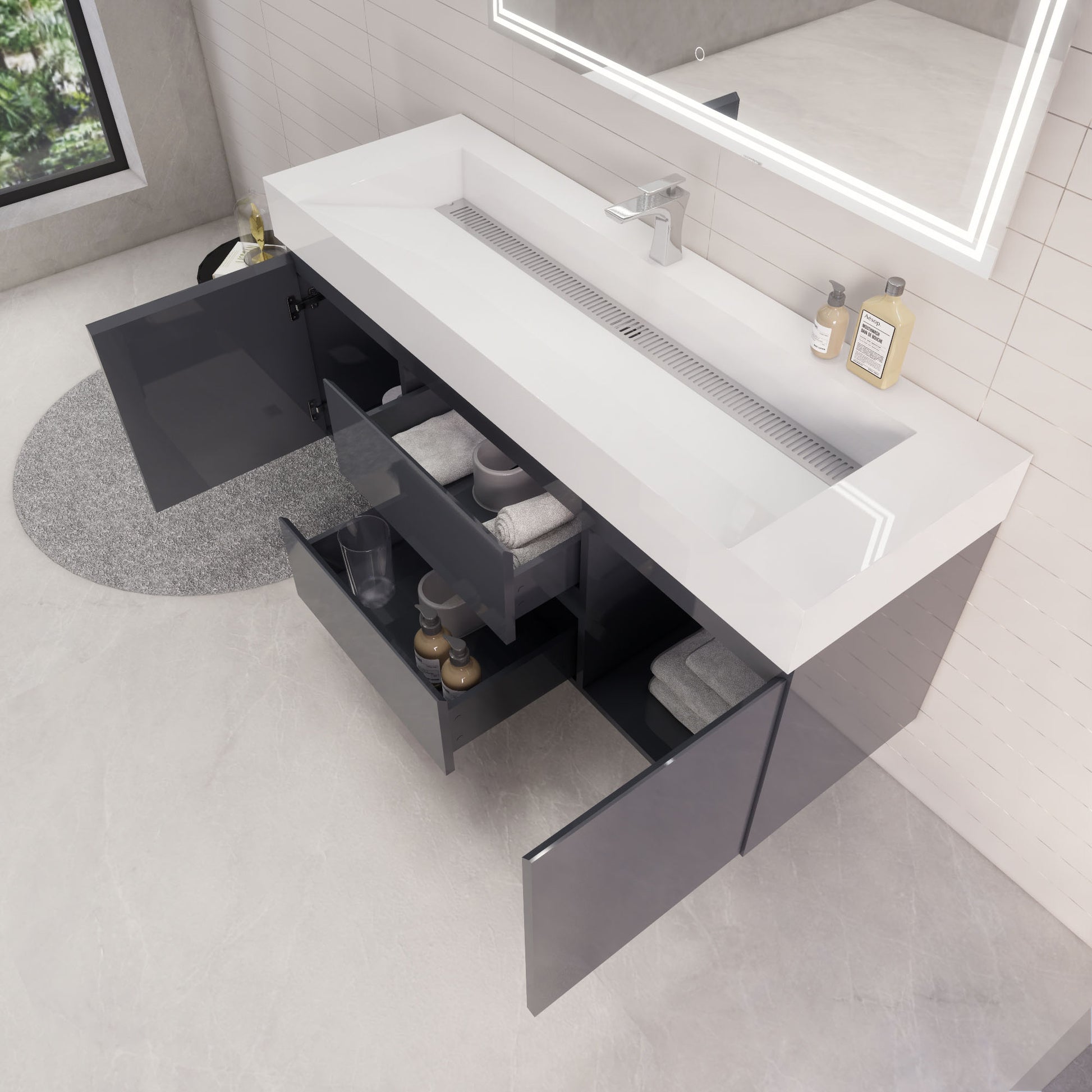 Monterey 60" Glossy Gray Wall Mounted Vanity with Reinforced Acrylic Sink