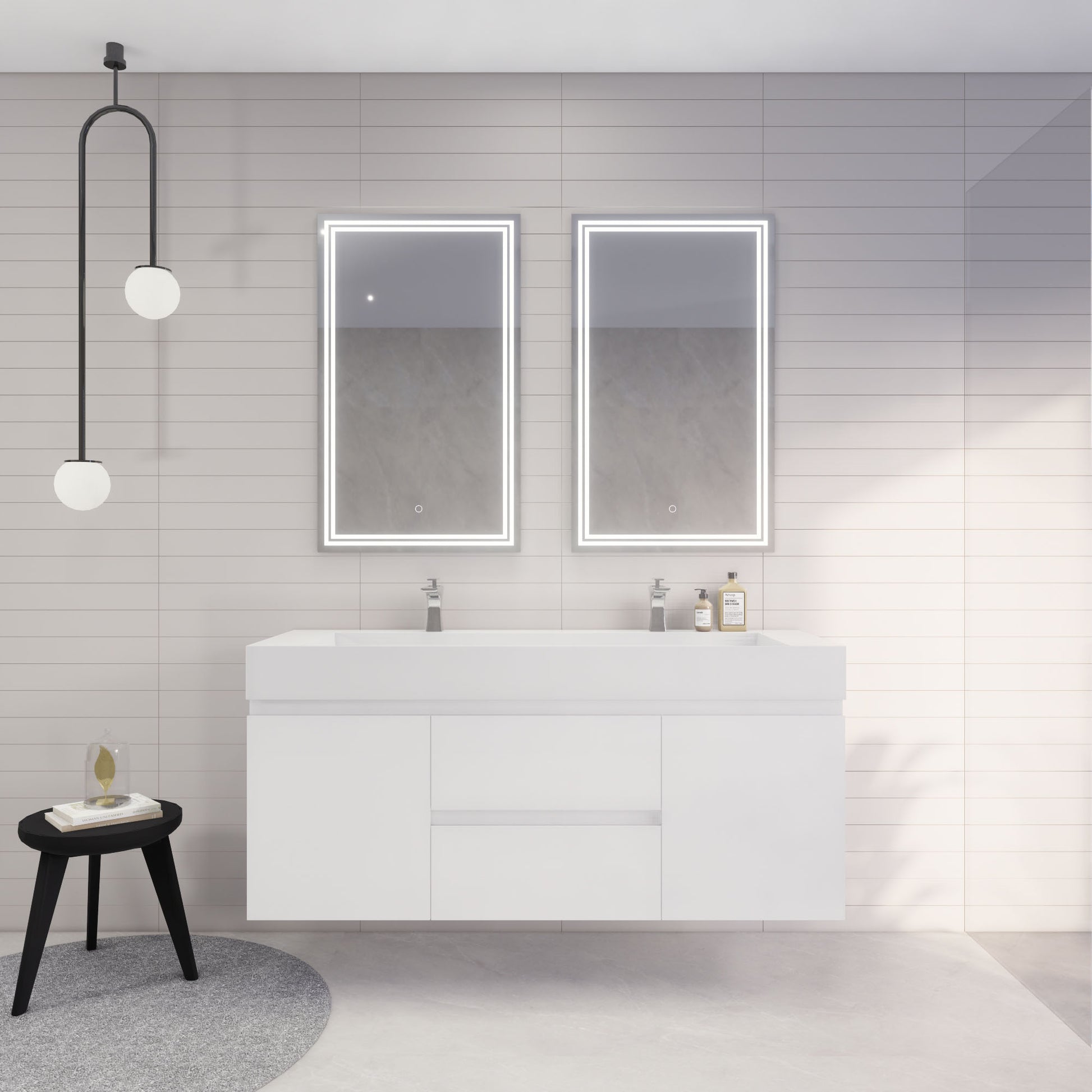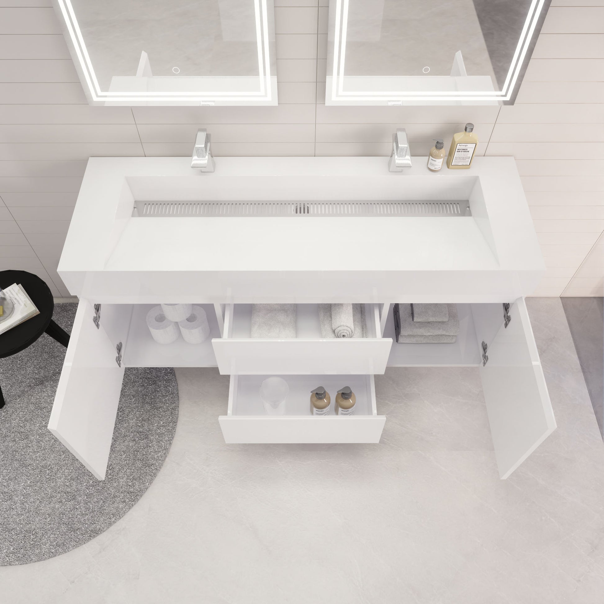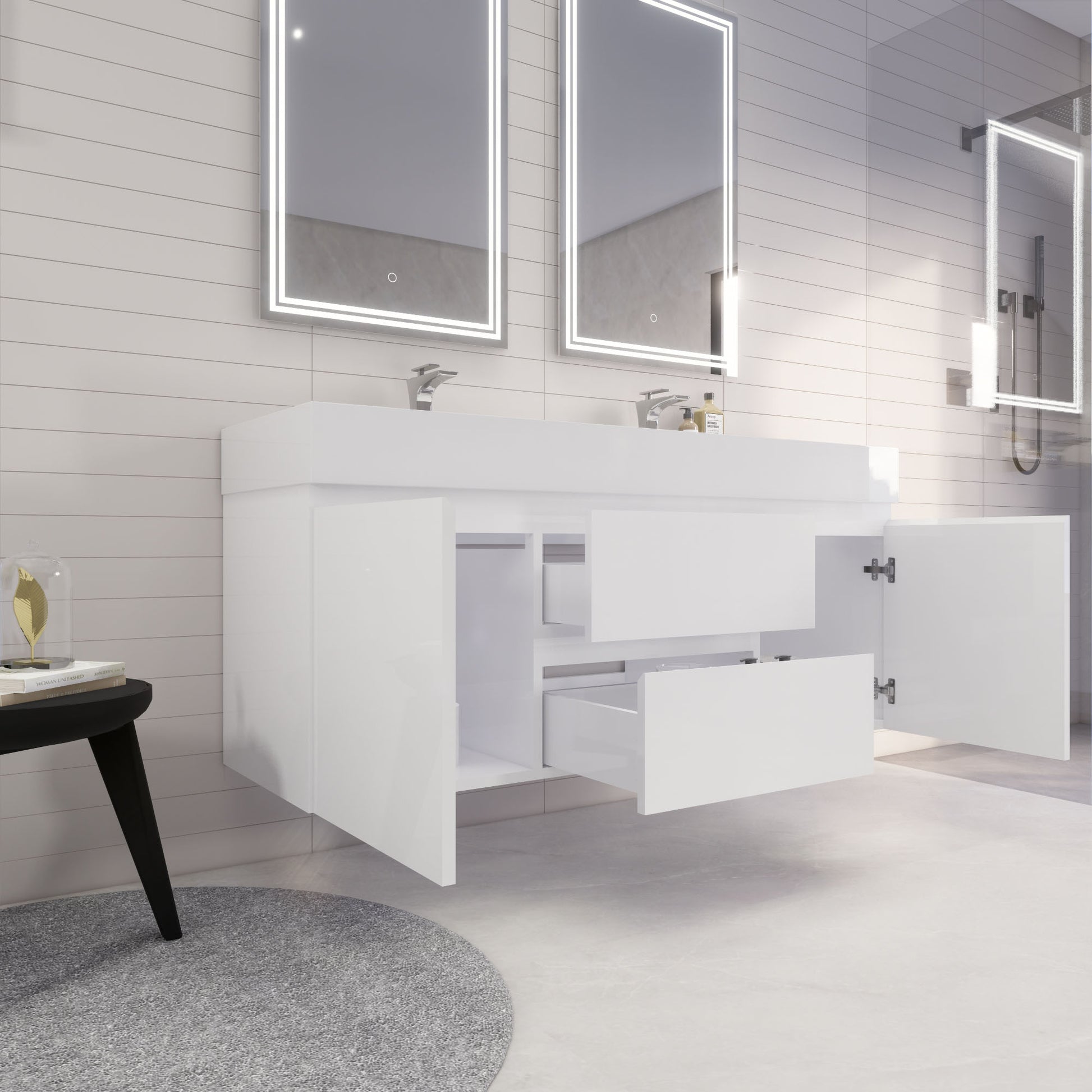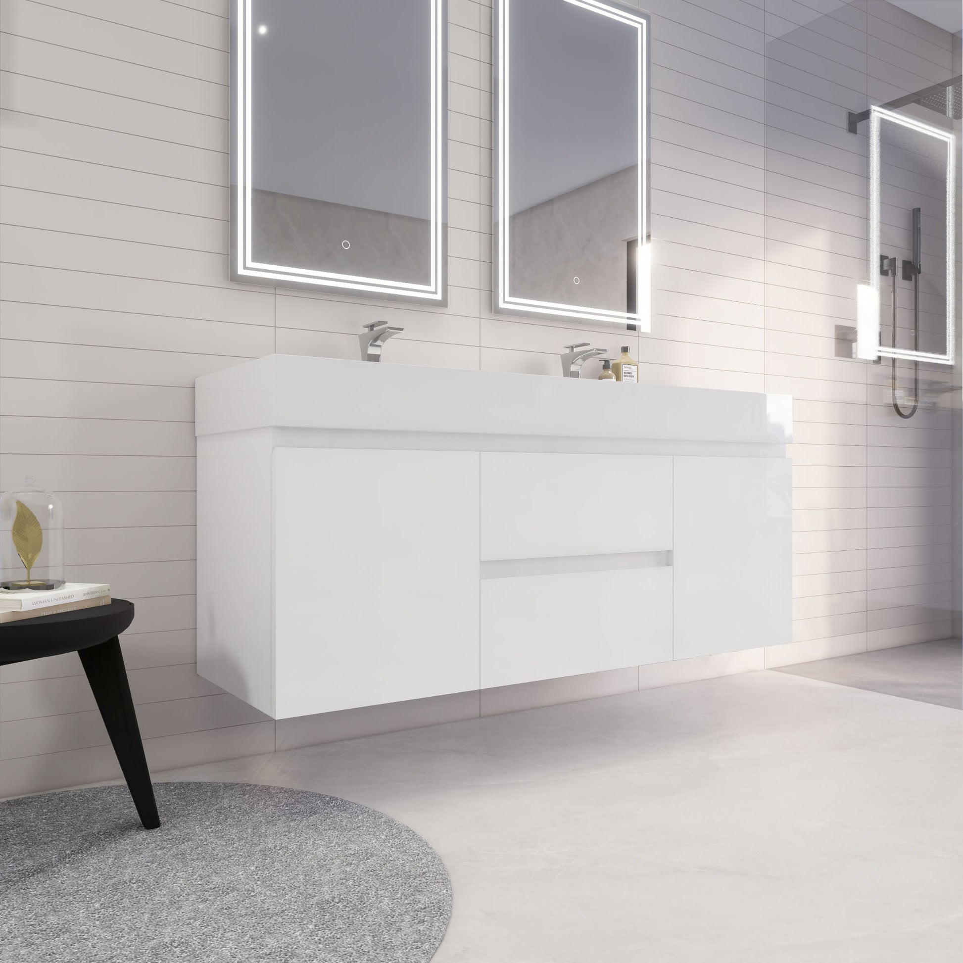 Monterey 60" Glossy White Wall Mounted Vanity with Reinforced Acrylic Sinks