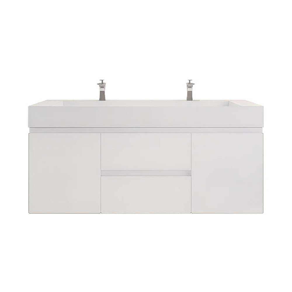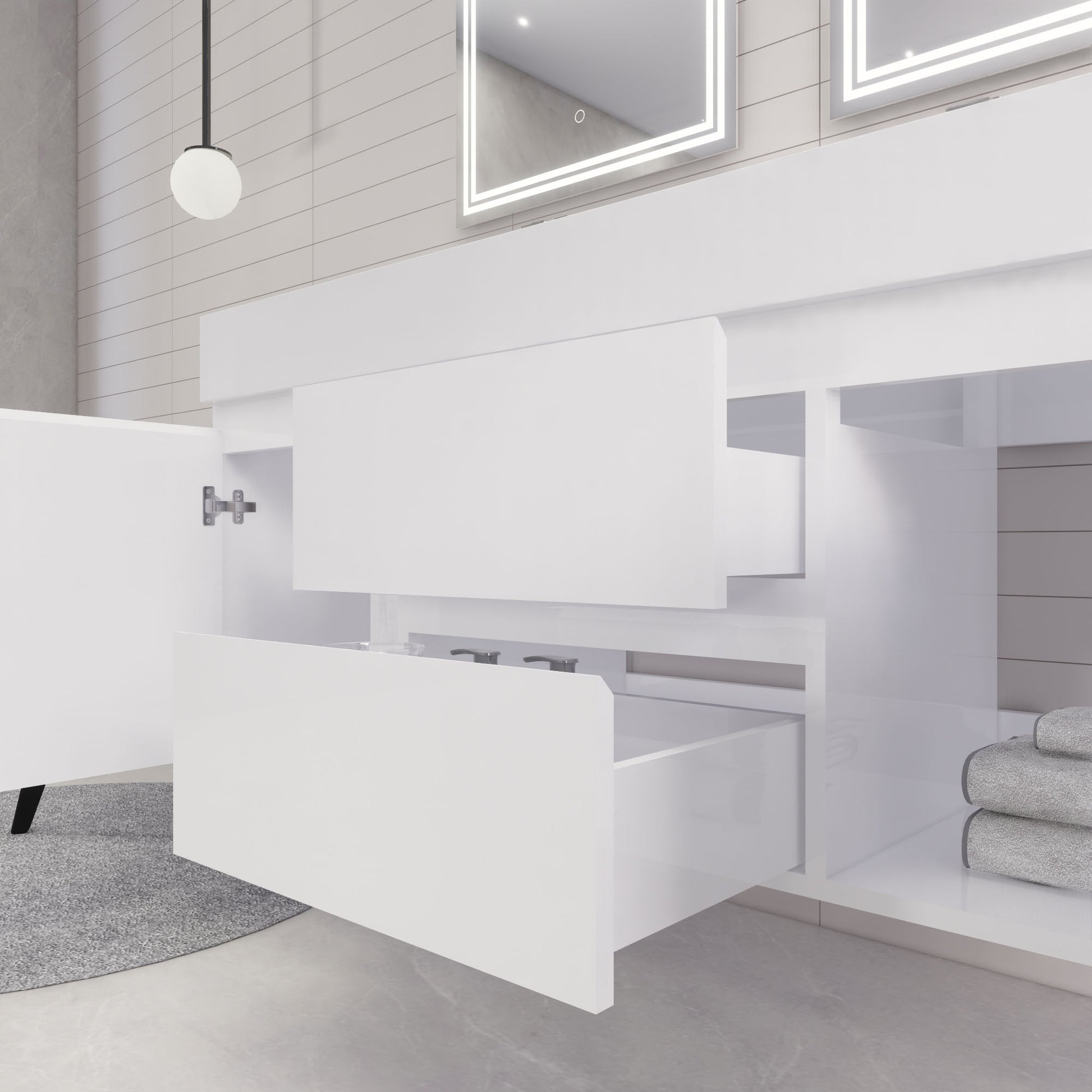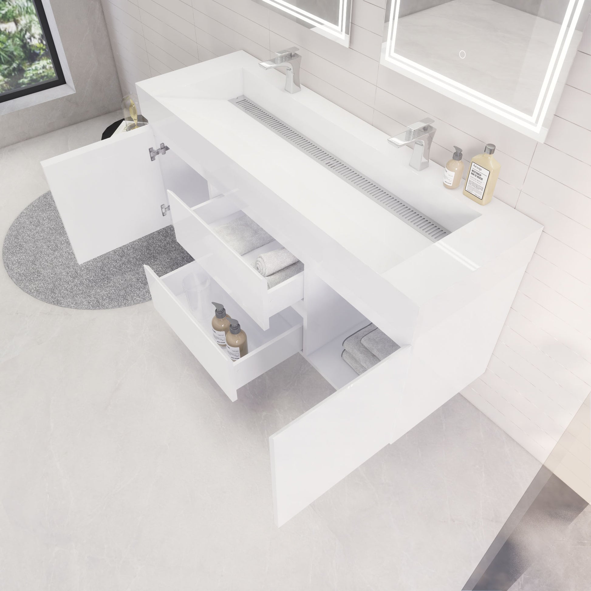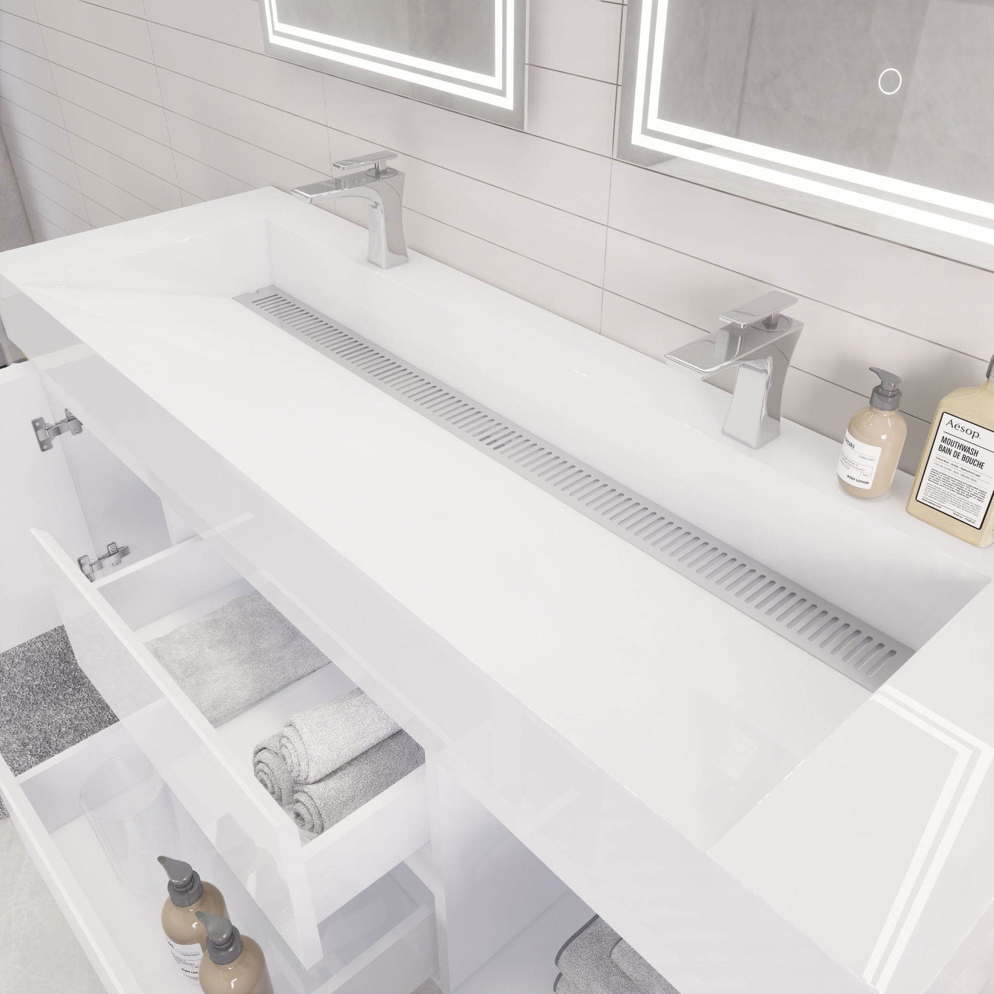 Monterey 60" Glossy White Wall Mounted Vanity with Reinforced Acrylic Sinks