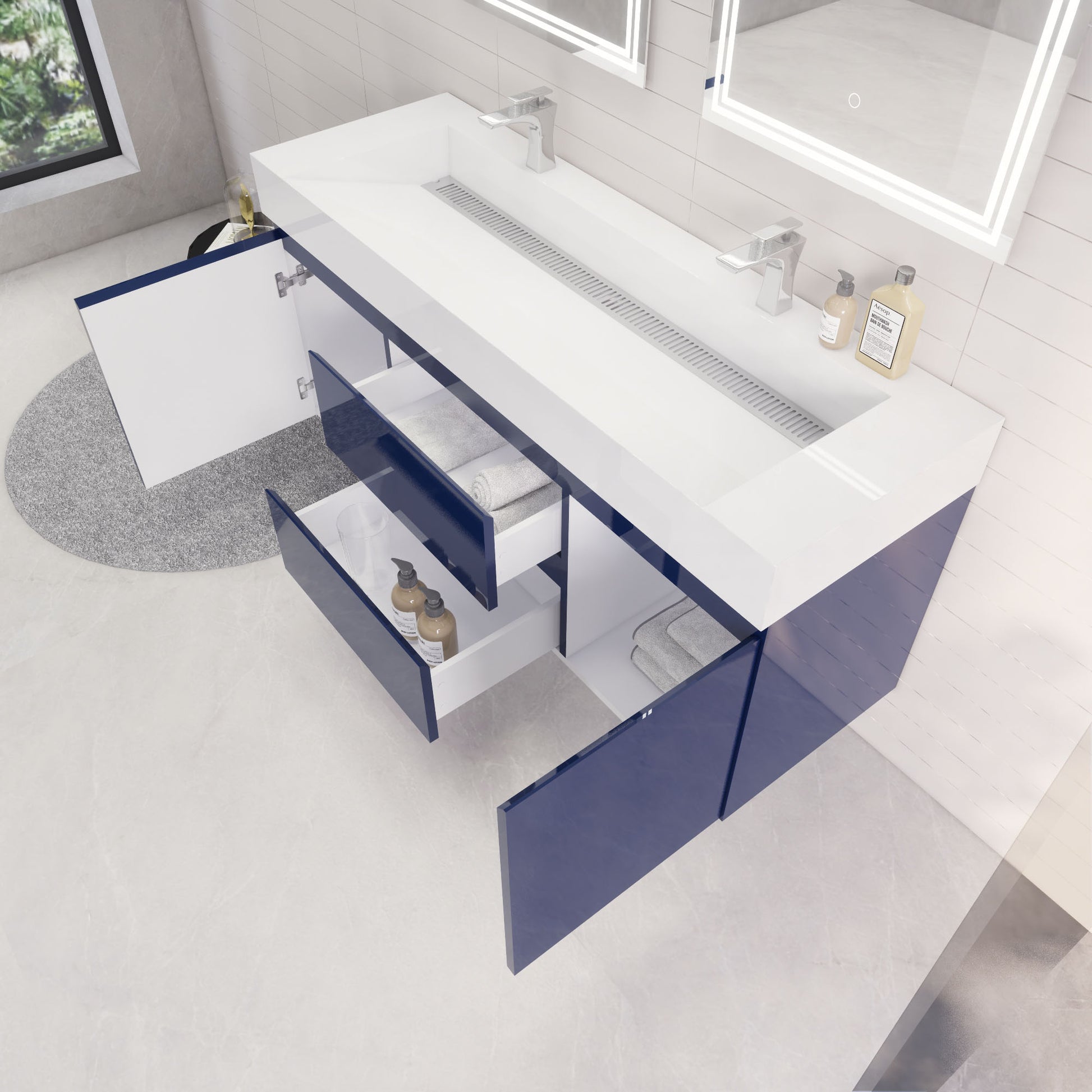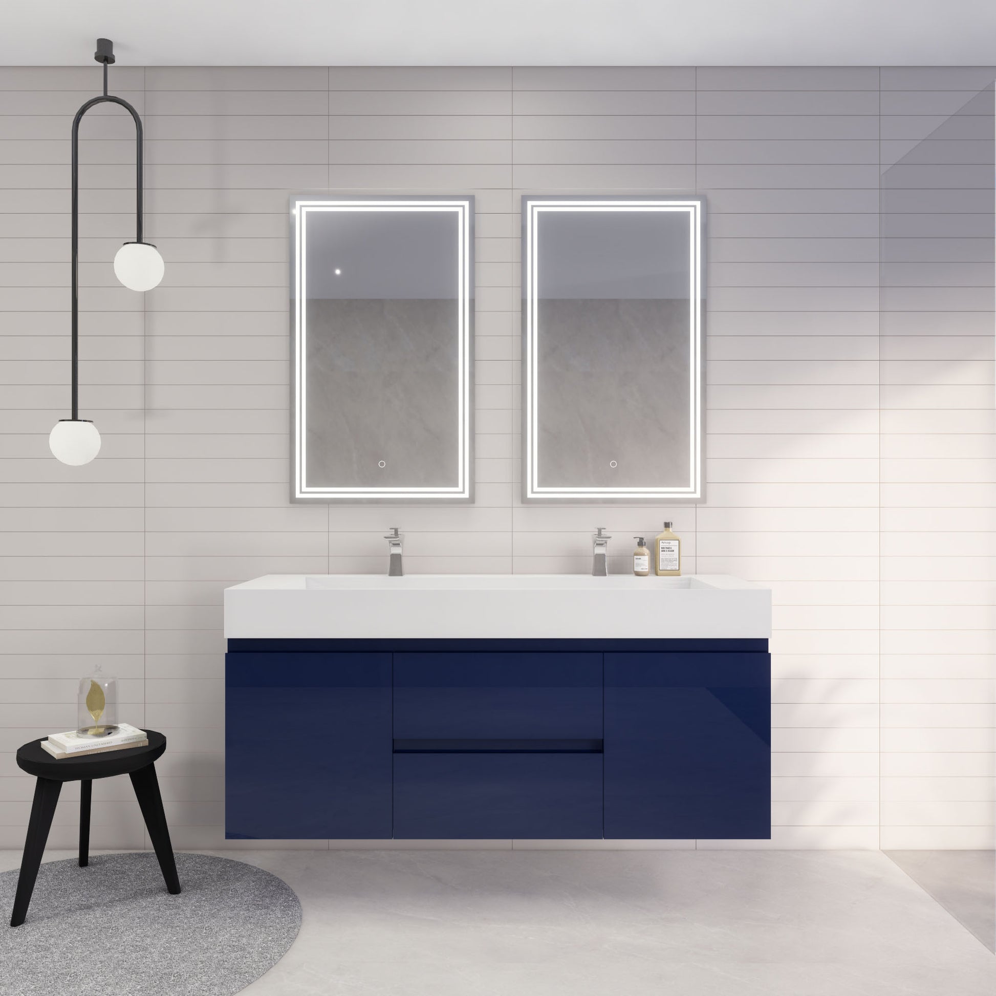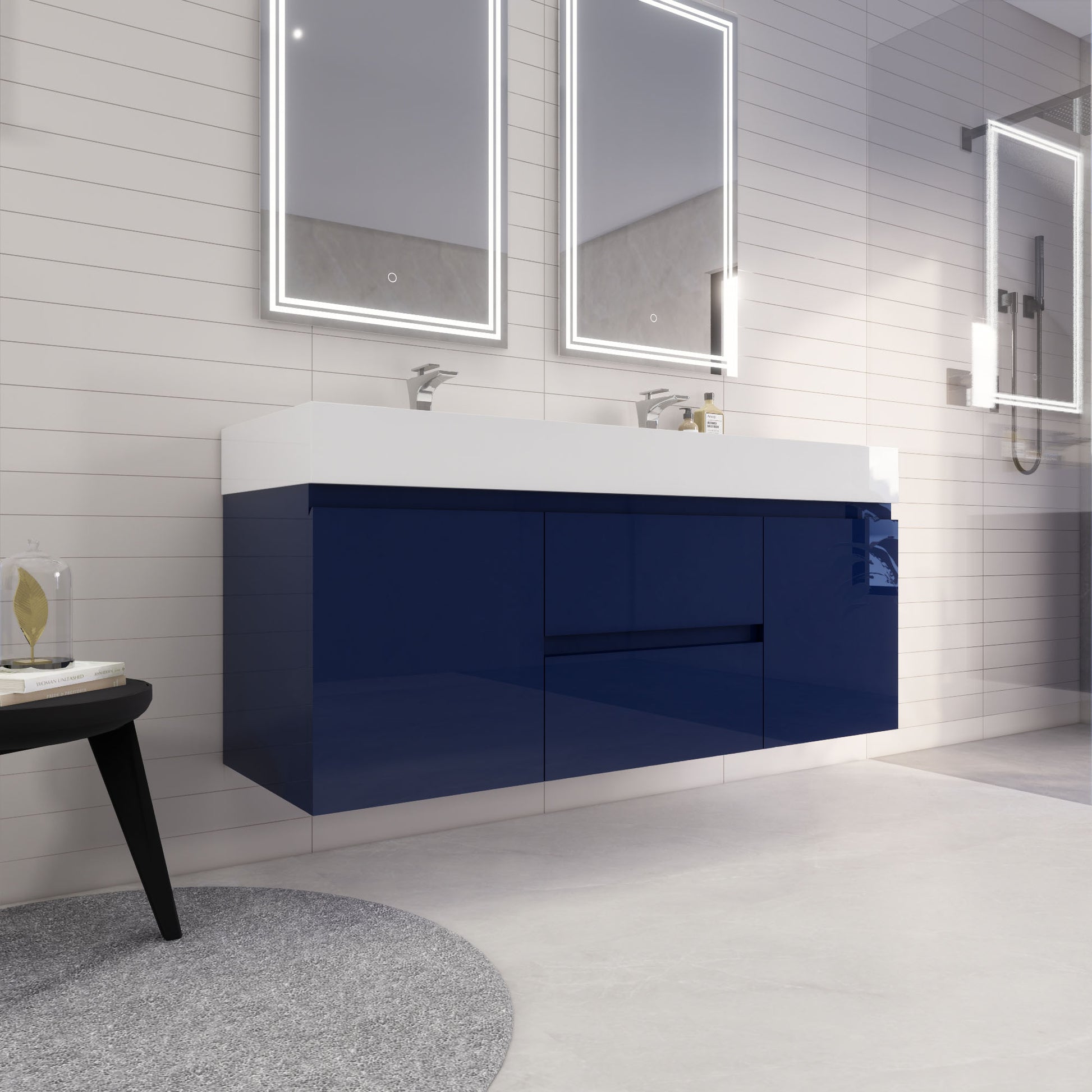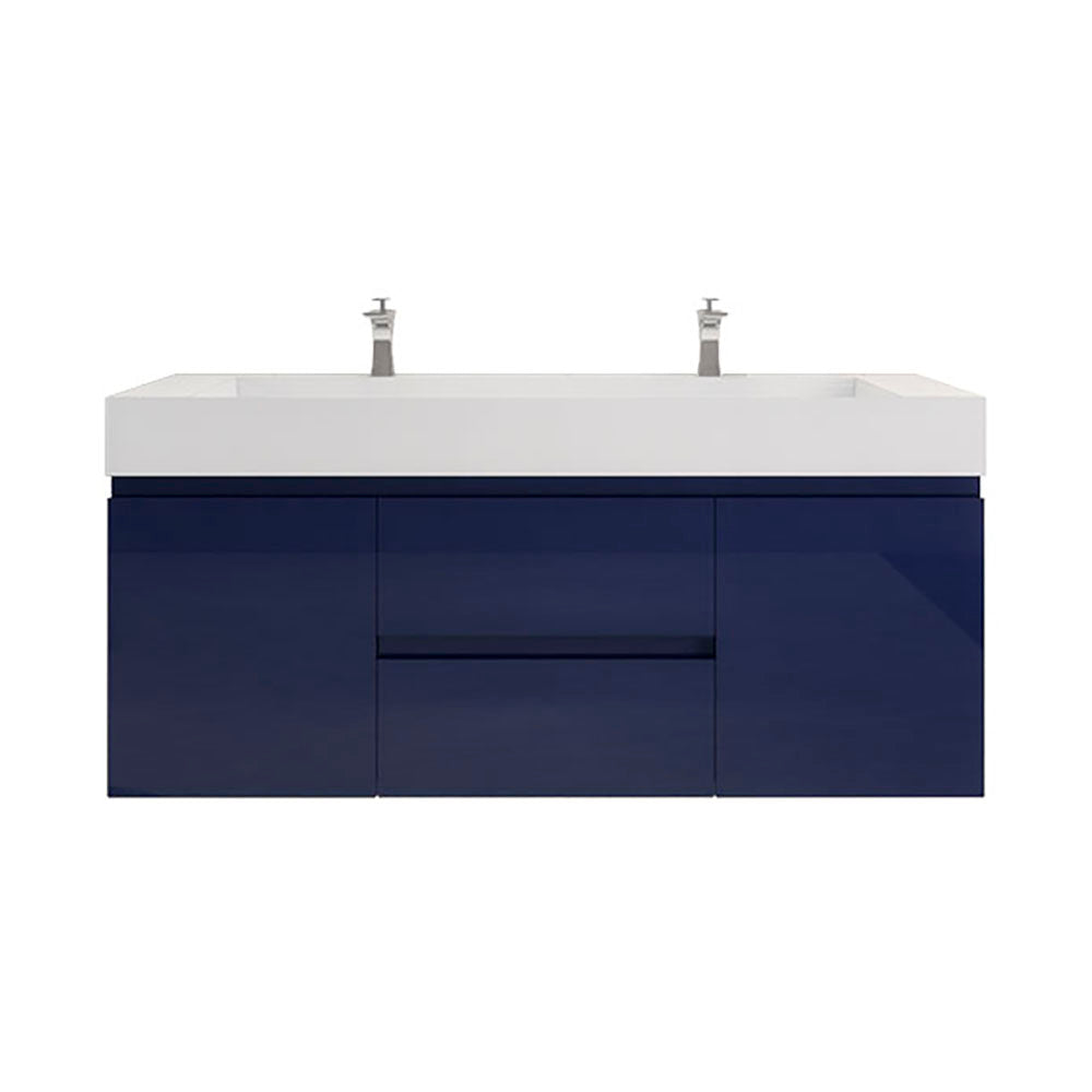 Monterey 60" Night Blue Wall Mounted Vanity with Reinforced Acrylic Sinks