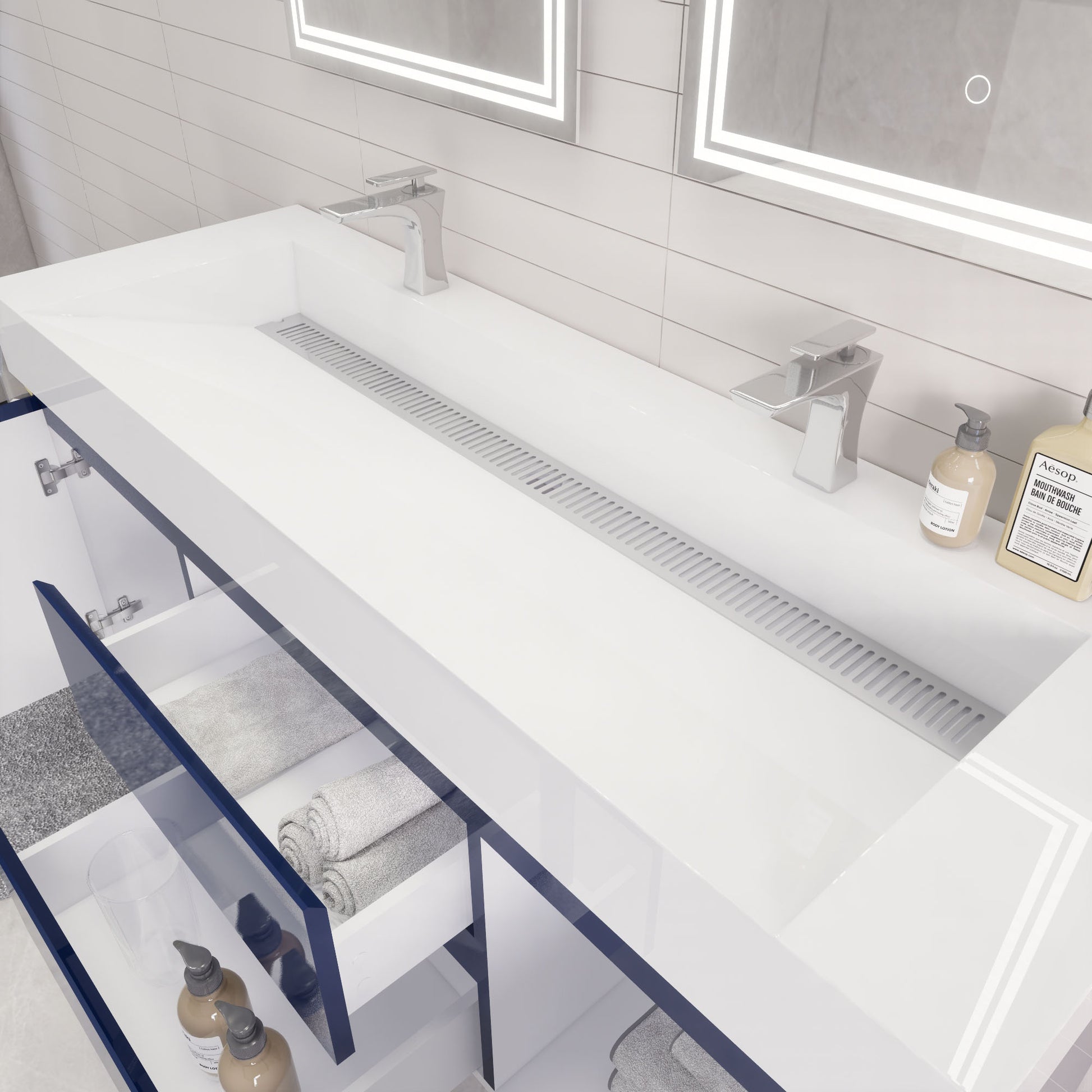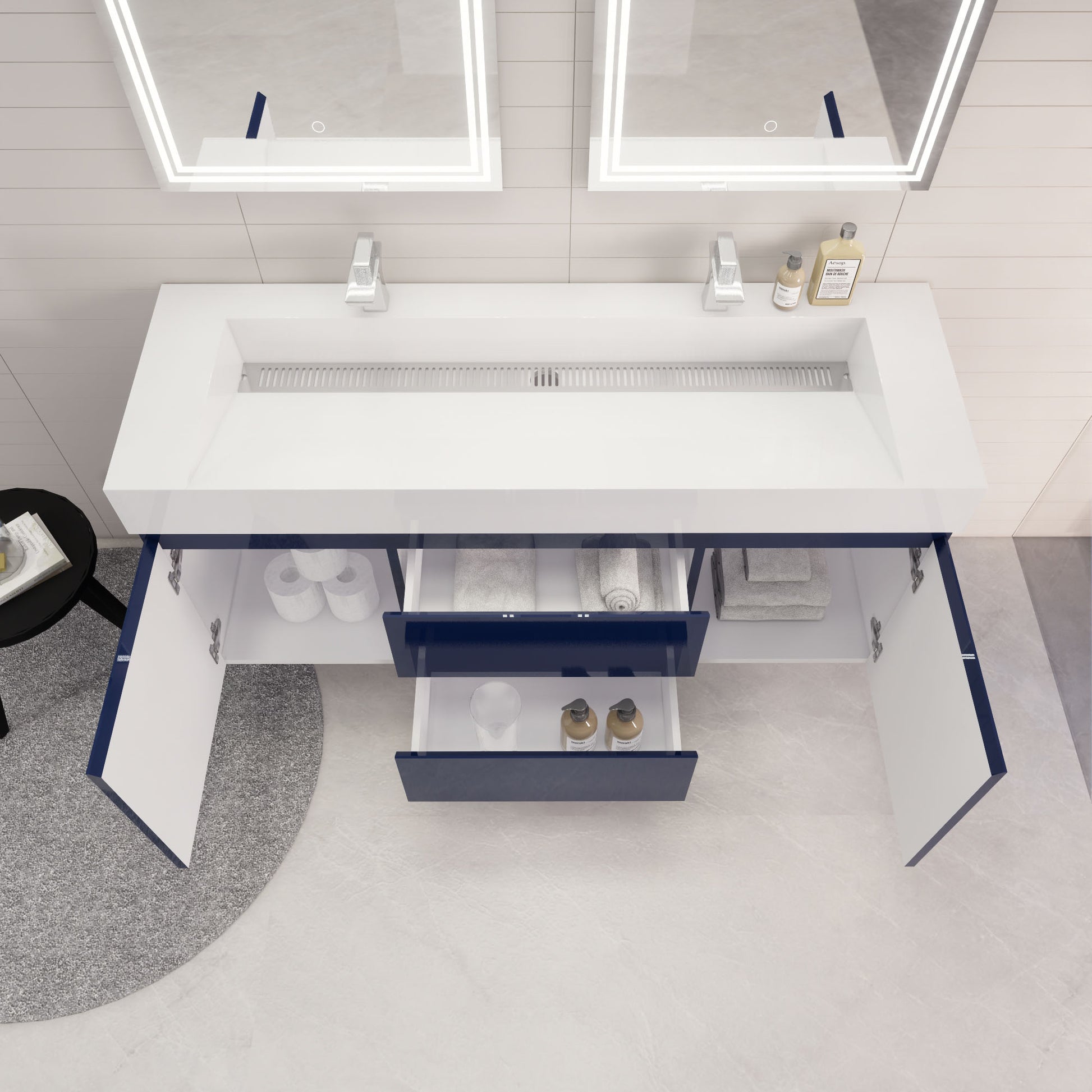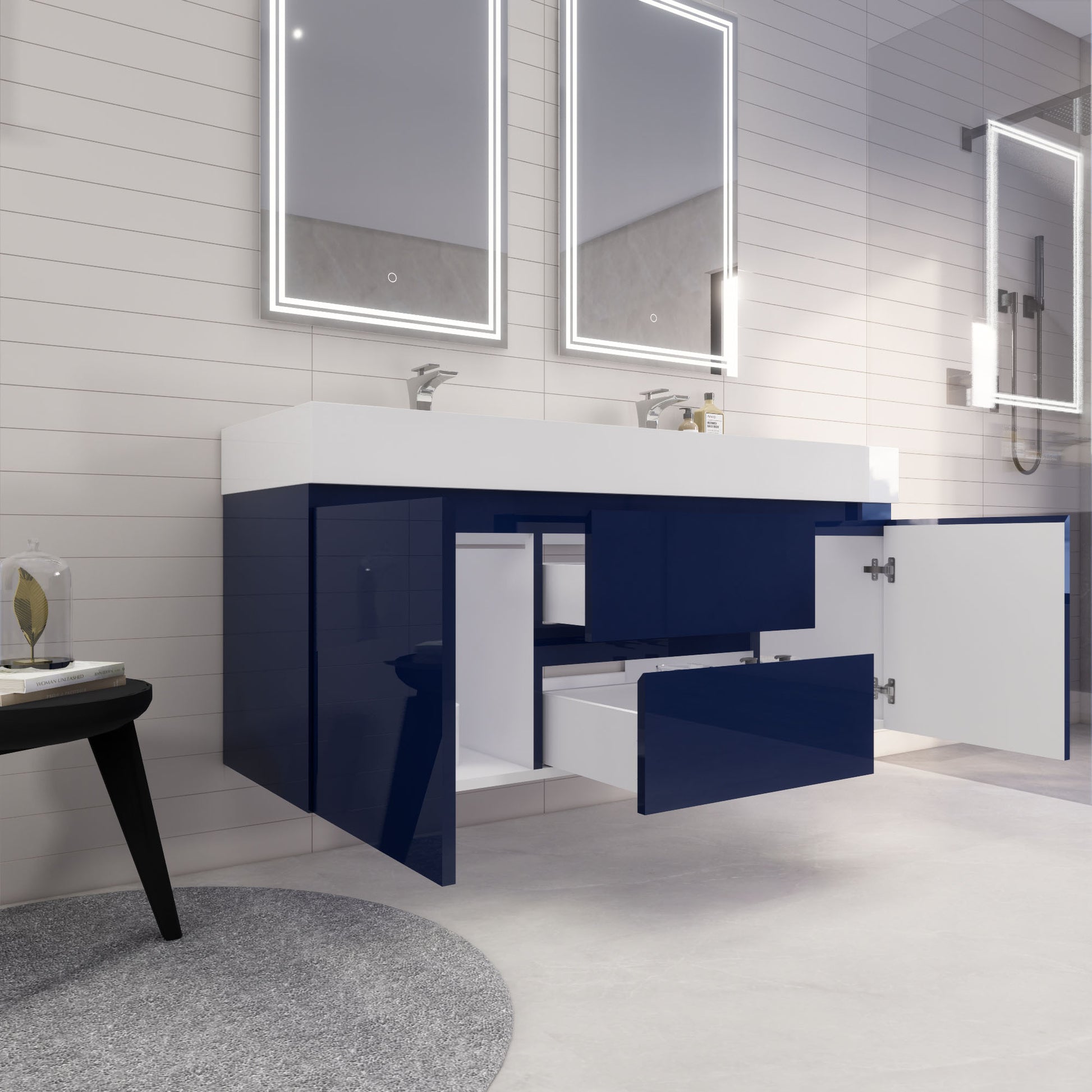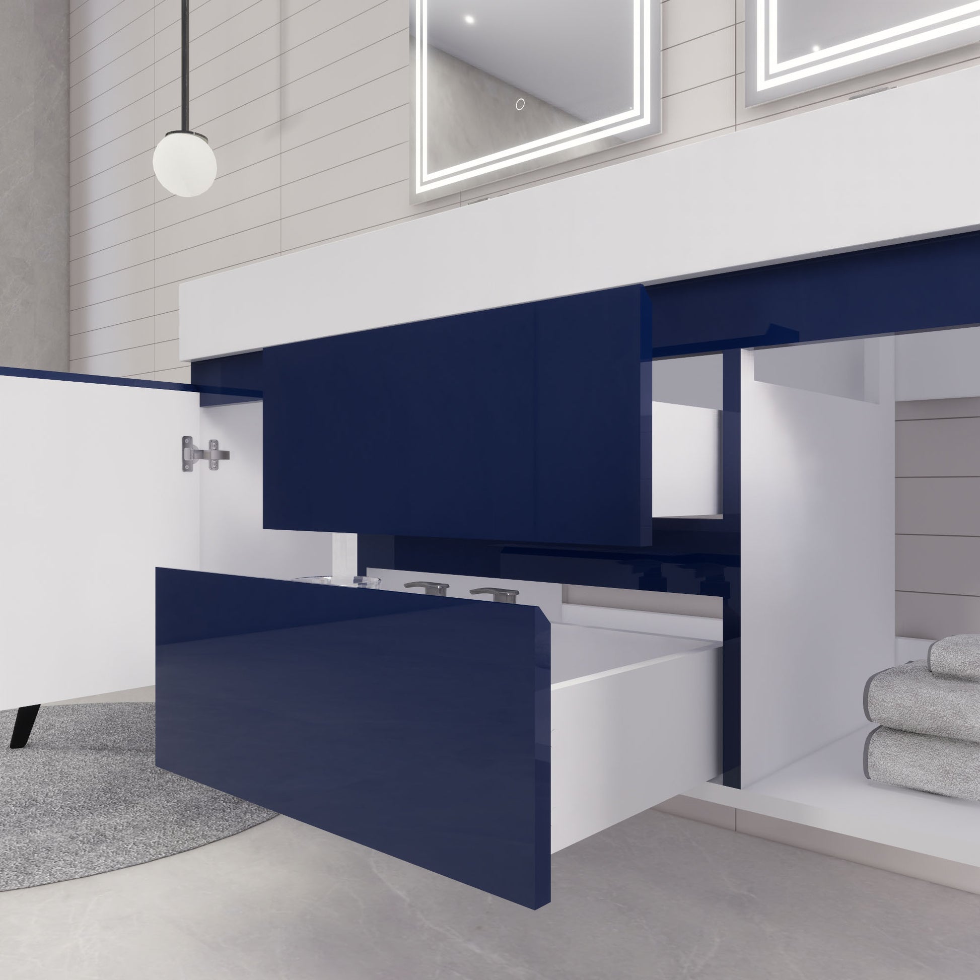 Monterey 60" Night Blue Wall Mounted Vanity with Reinforced Acrylic Sinks