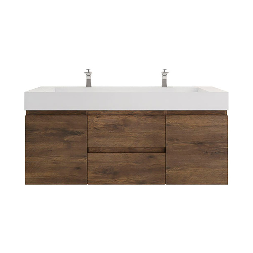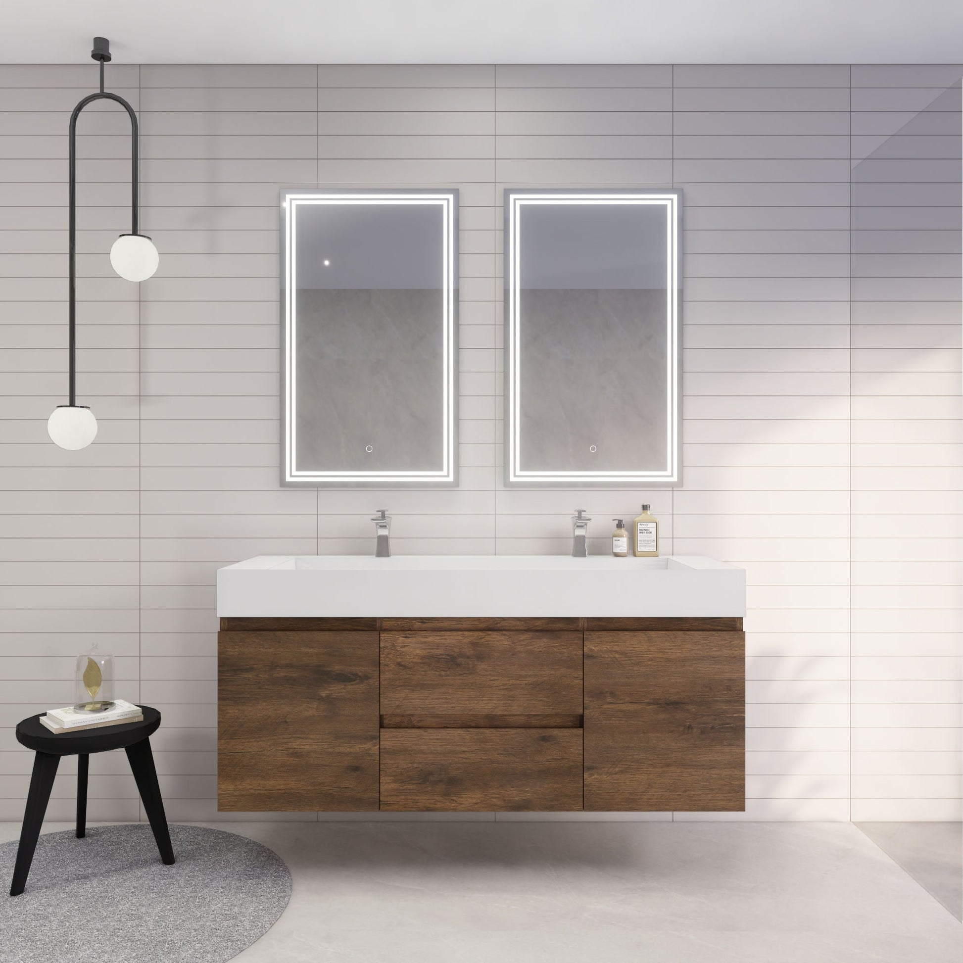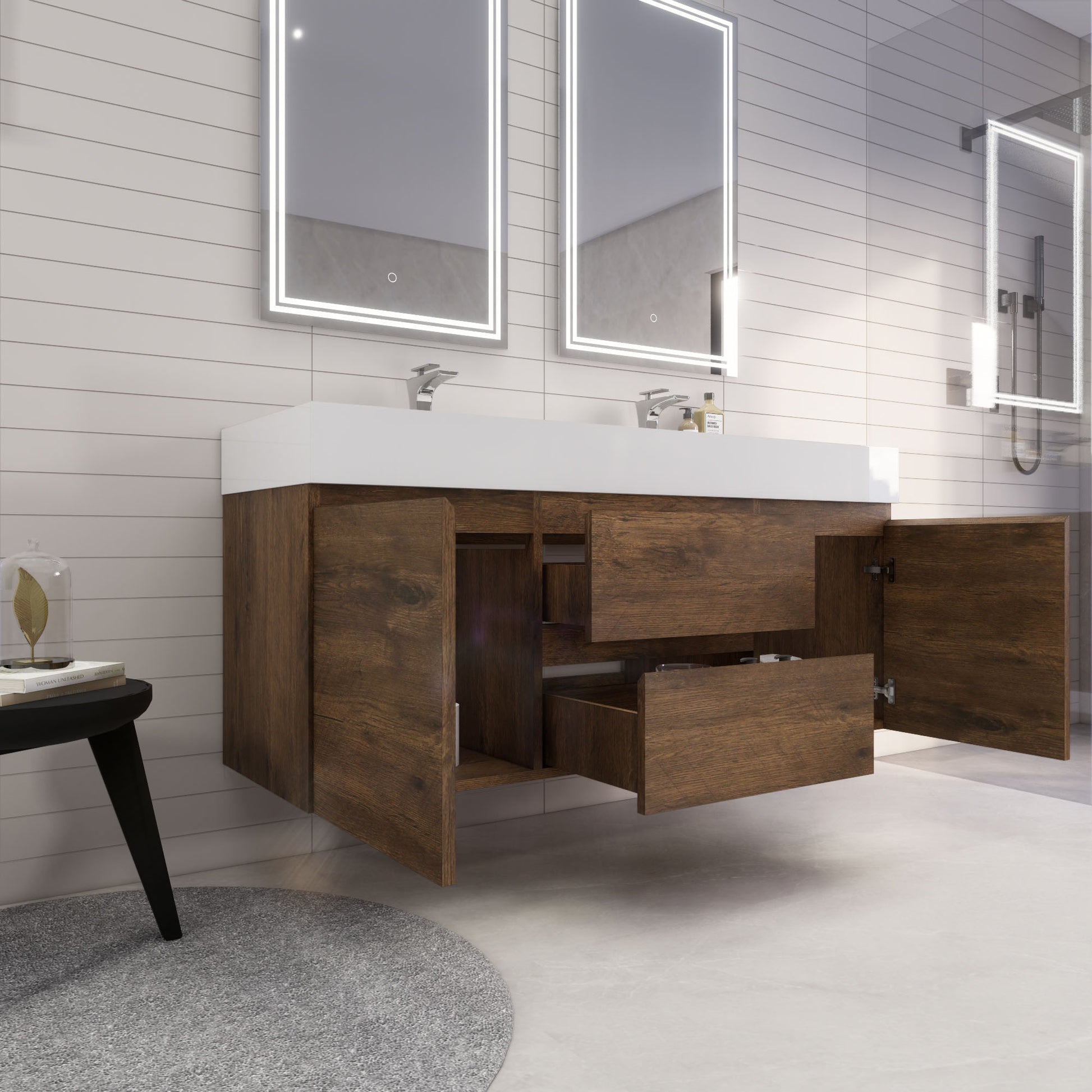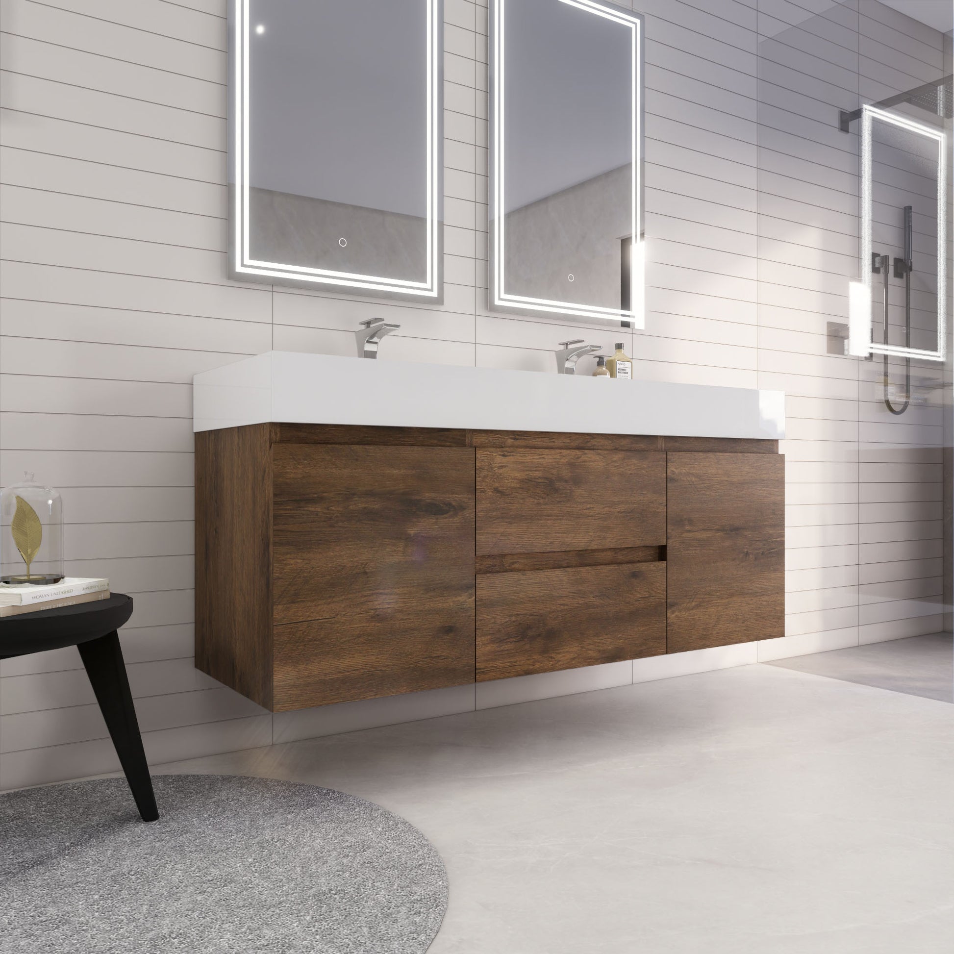 Monterey 60" Rosewood Wall Mounted Vanity with Reinforced Acrylic Sinks