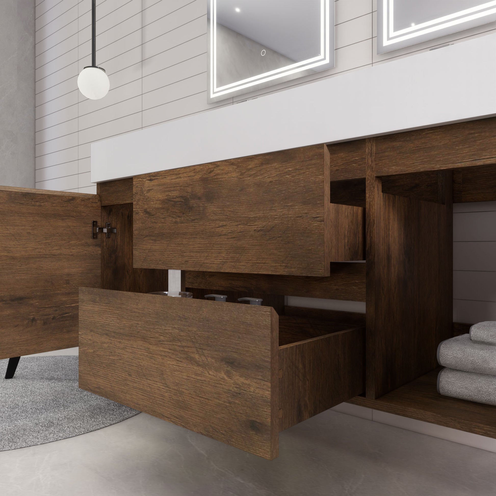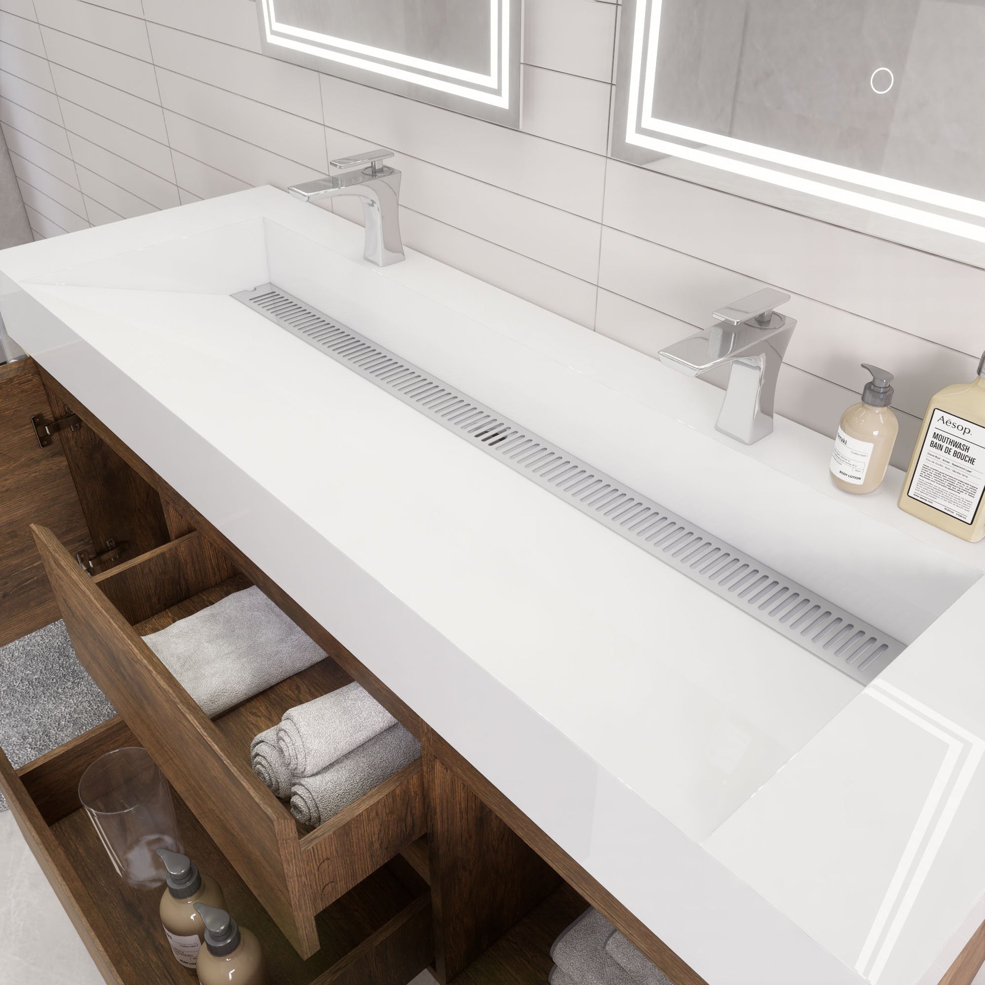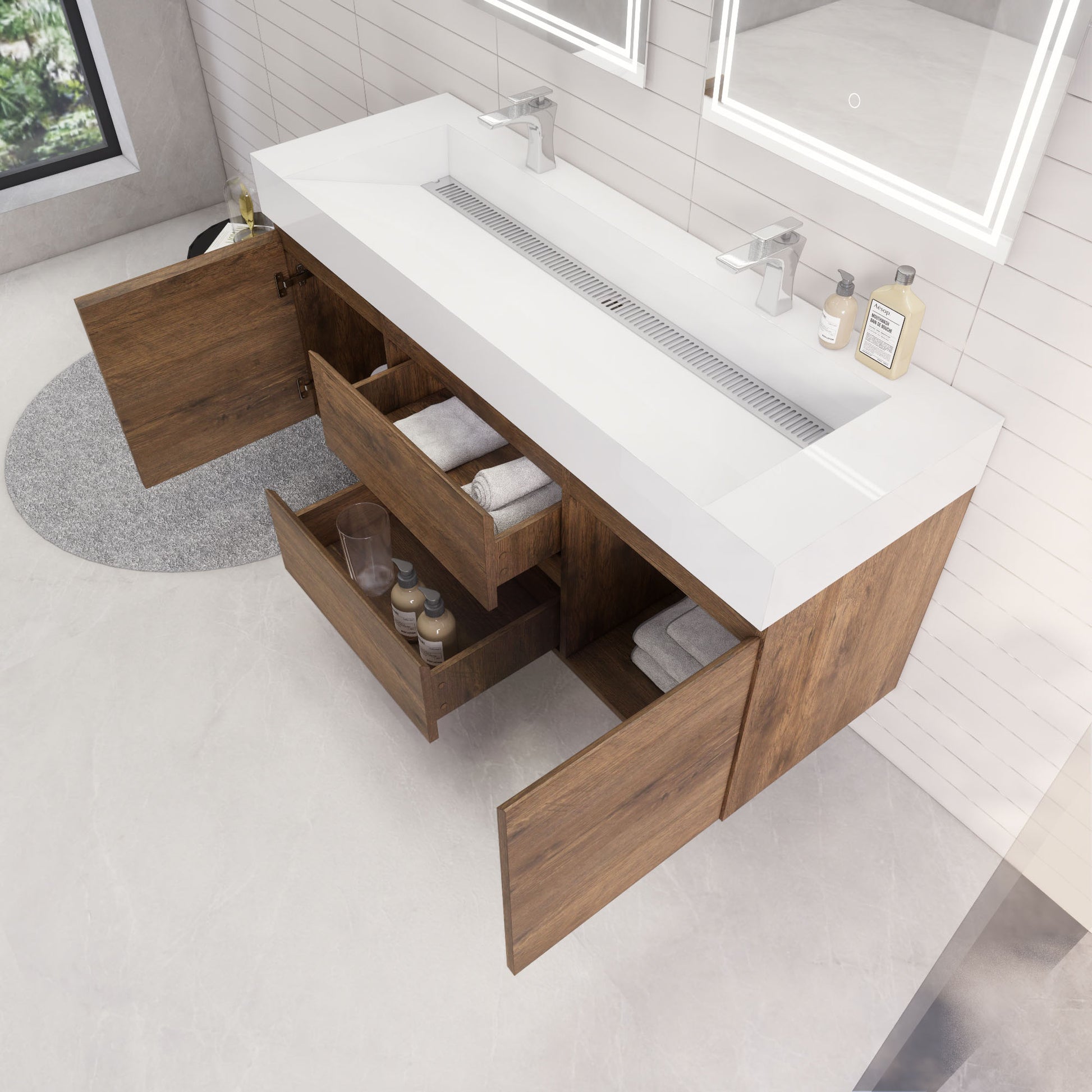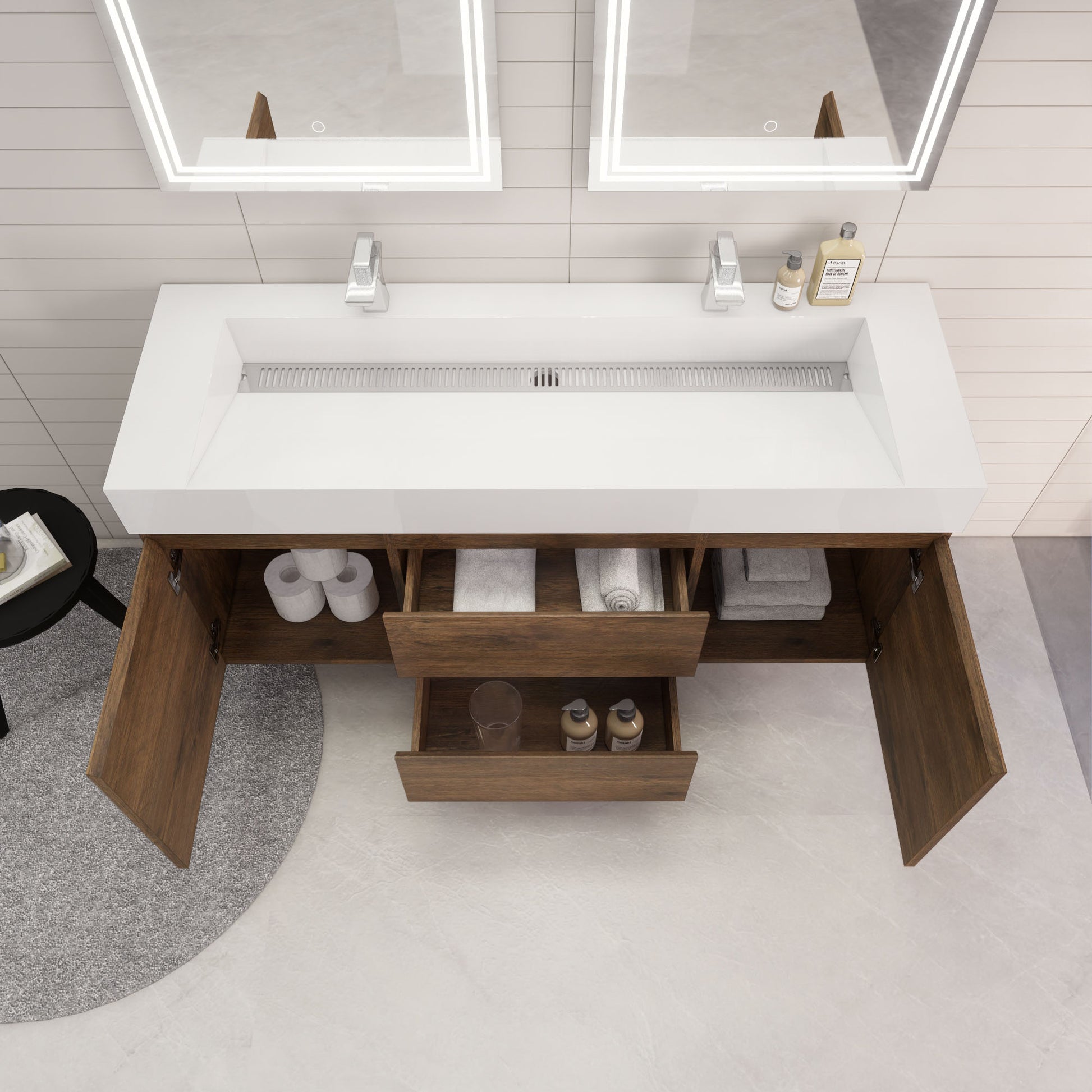 Monterey 60" Rosewood Wall Mounted Vanity with Reinforced Acrylic Sinks