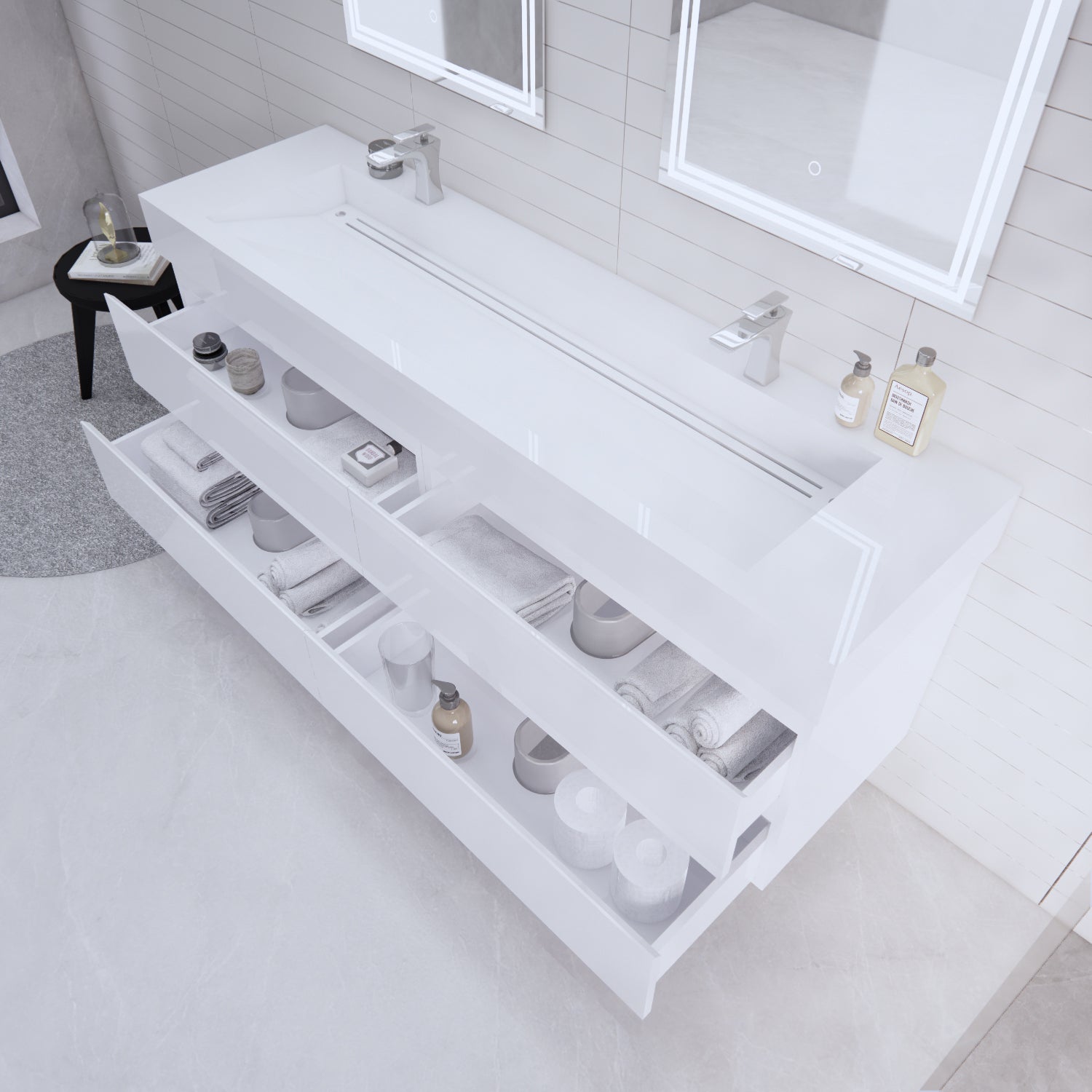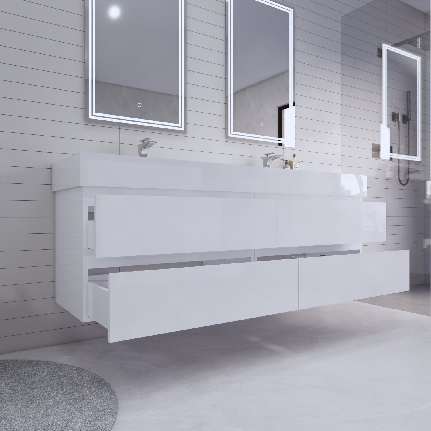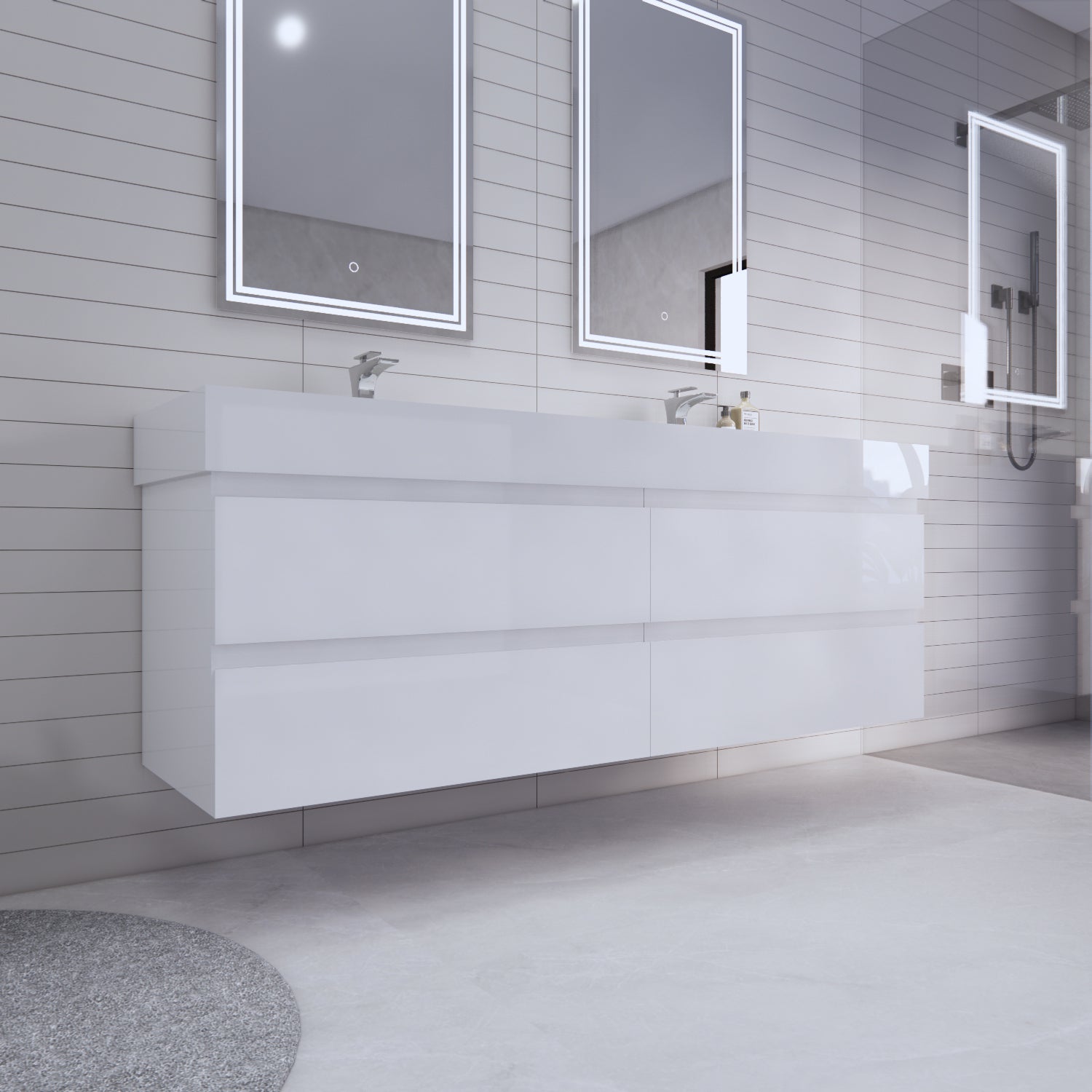 Monterey 72" Glossy White Wall Mounted Vanity with Reinforced Acrylic Sinks