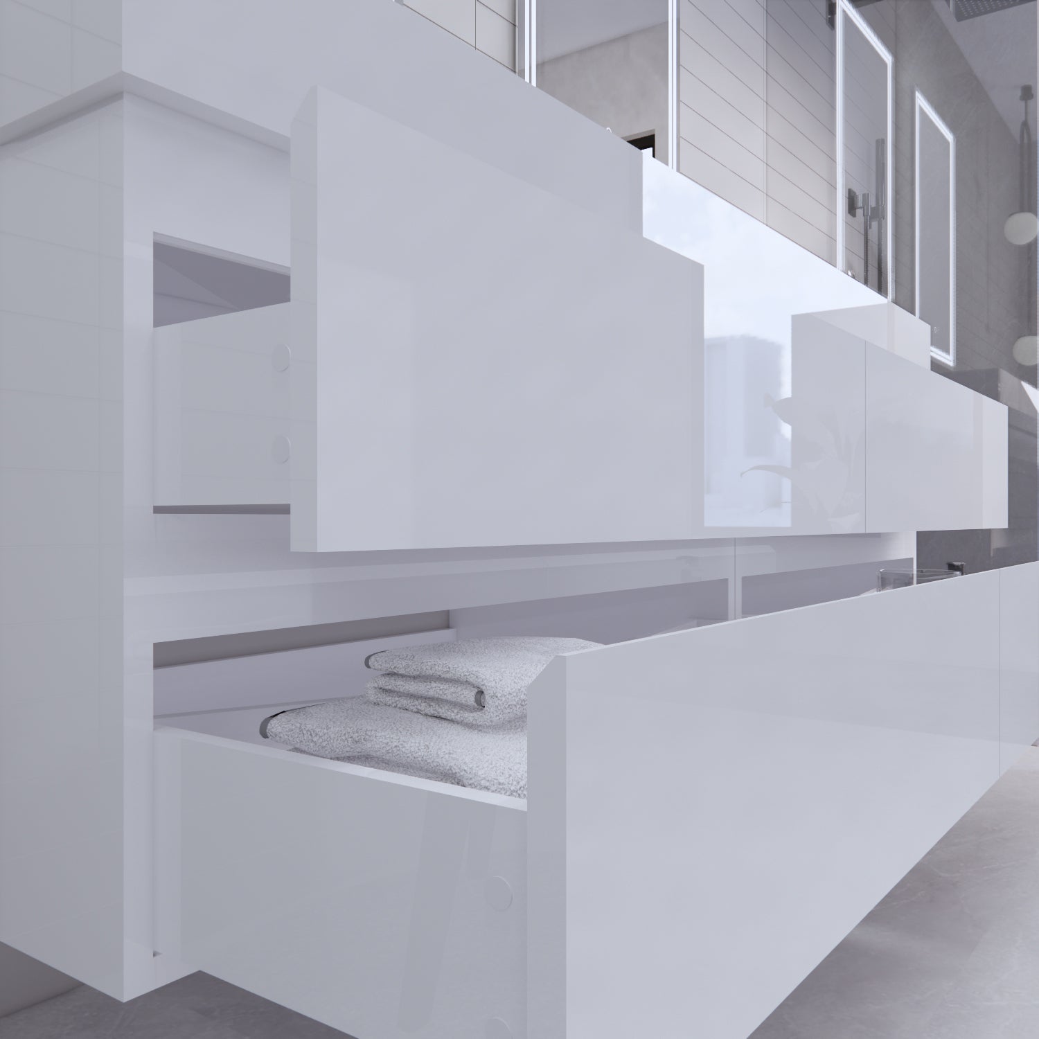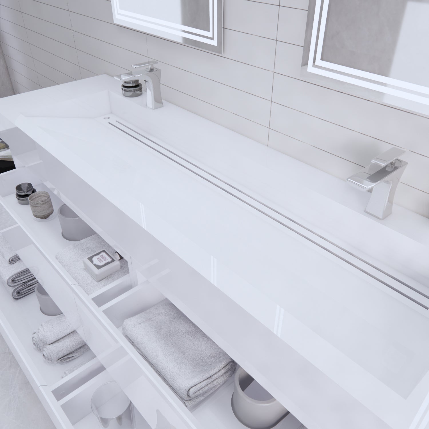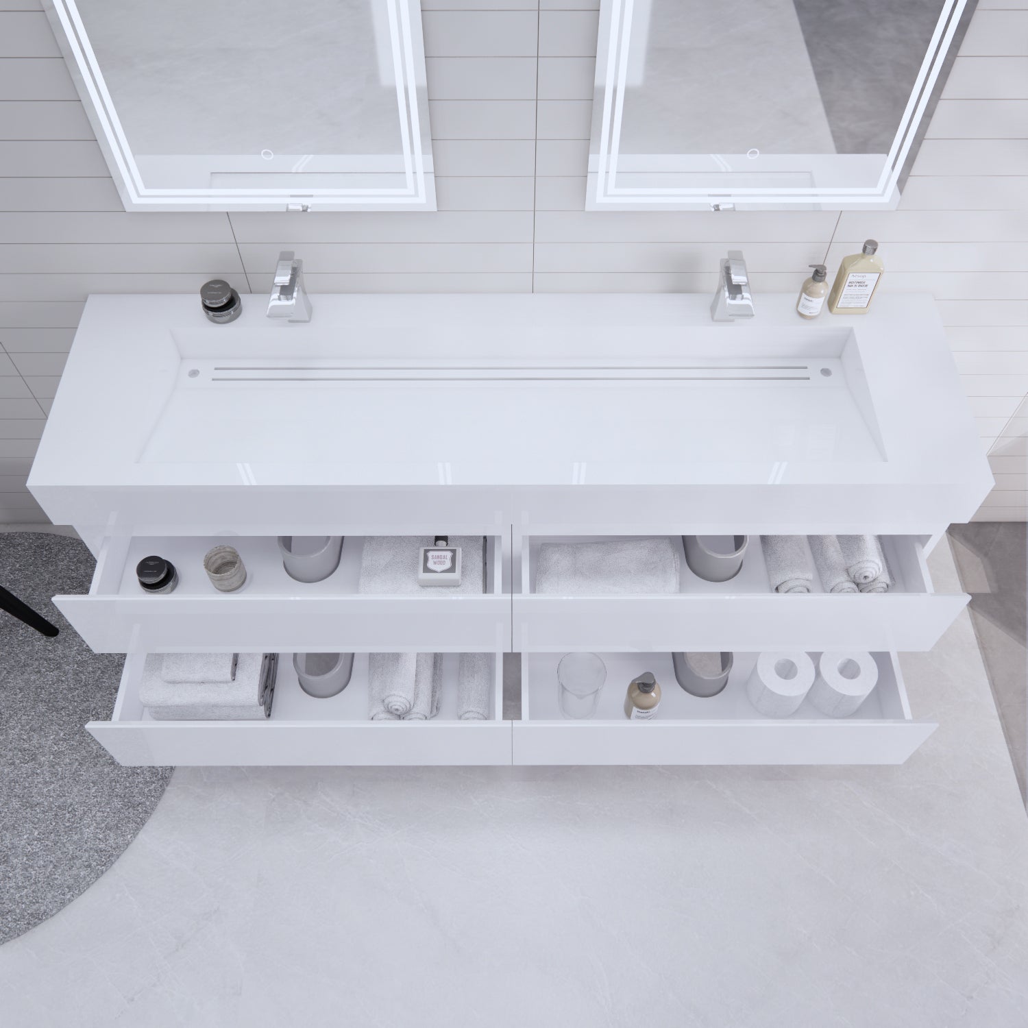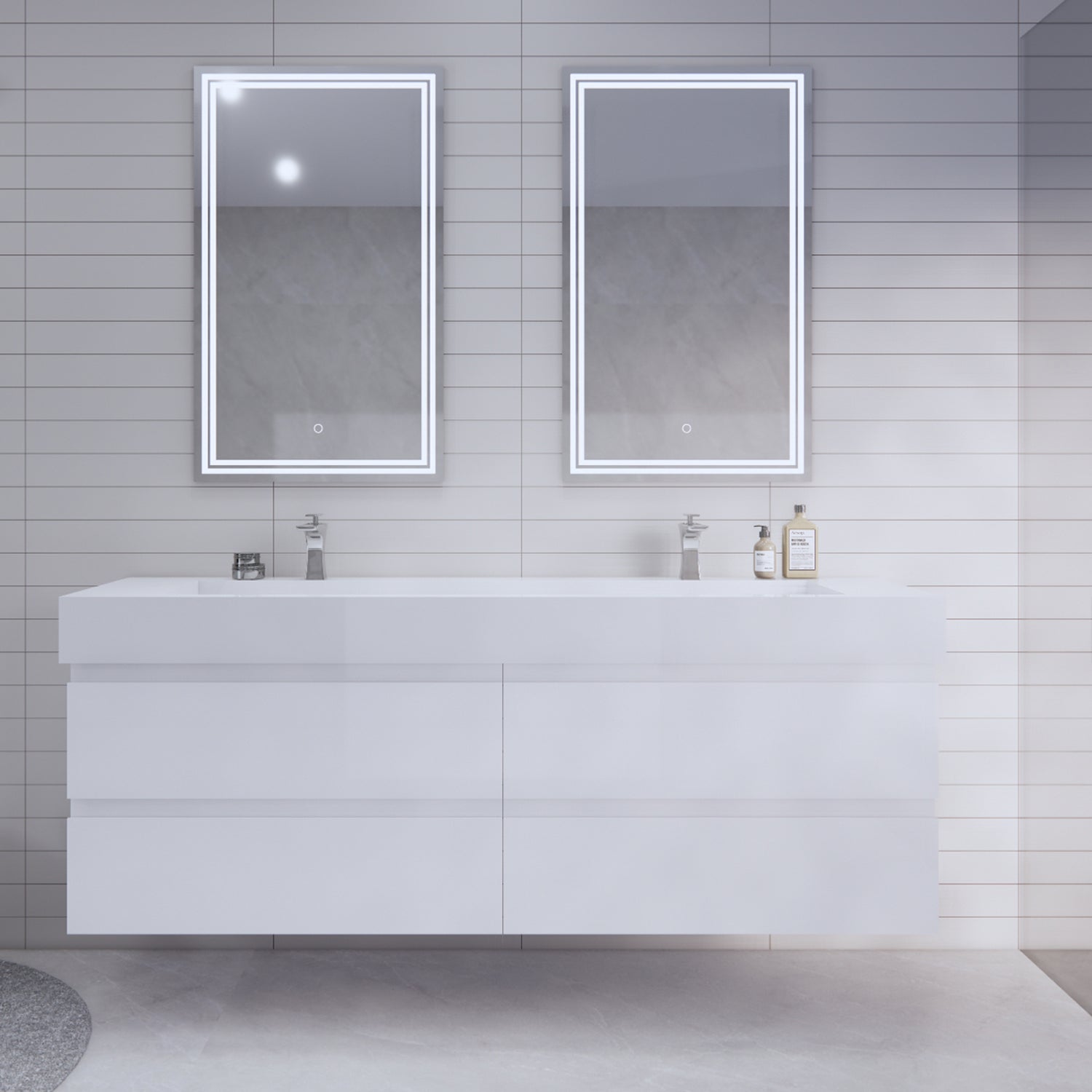 Monterey 72" Glossy White Wall Mounted Vanity with Reinforced Acrylic Sinks
