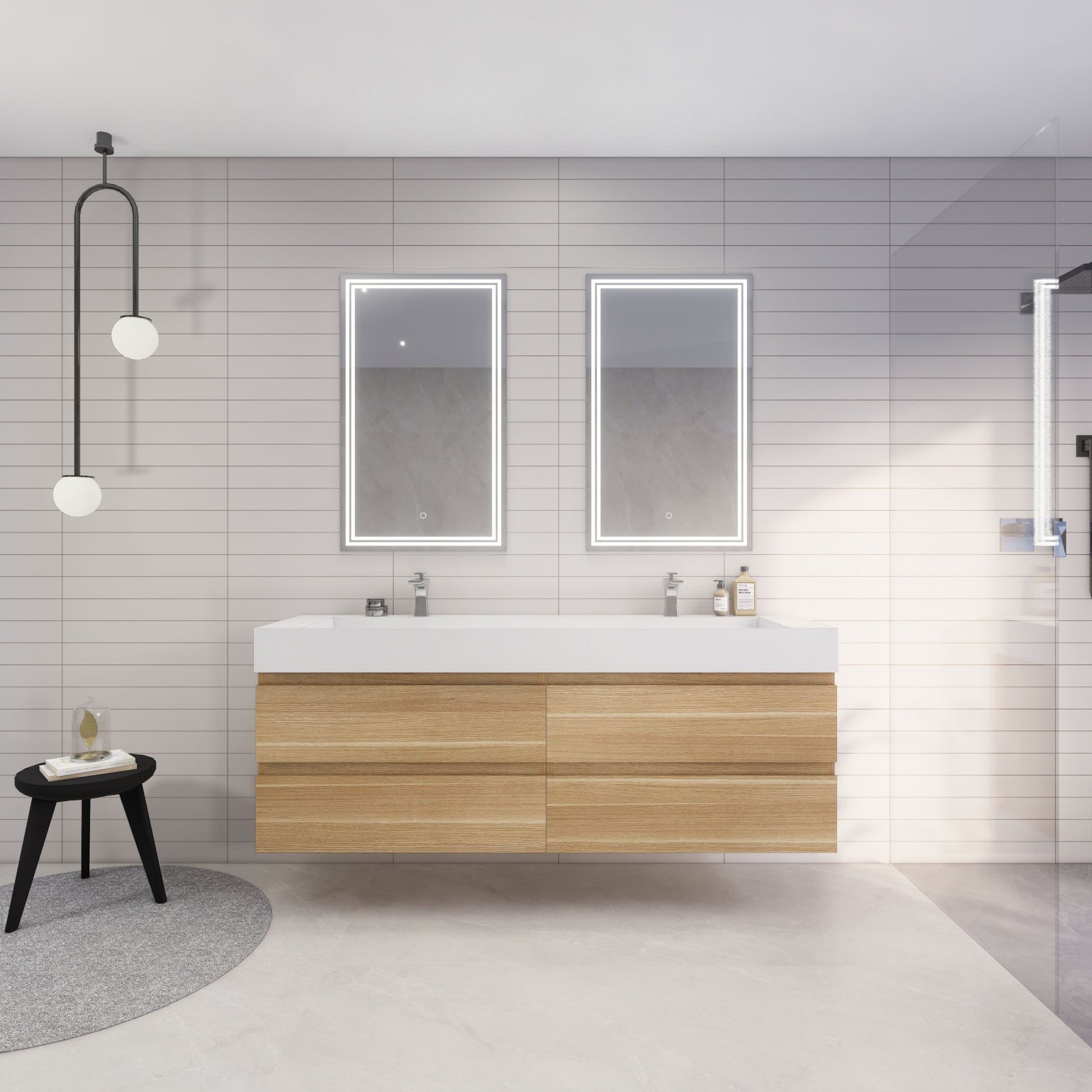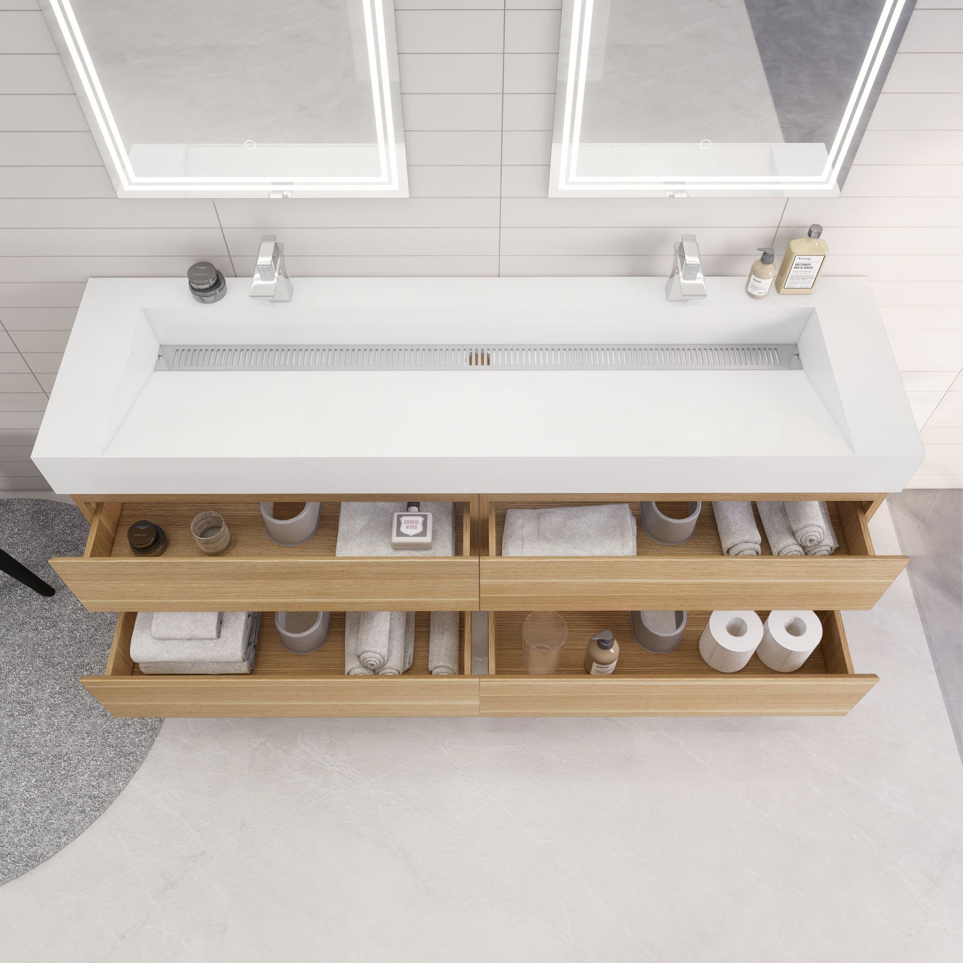 Monterey 72" White Oak Wall Mounted Vanity with Reinforced Acrylic Sink