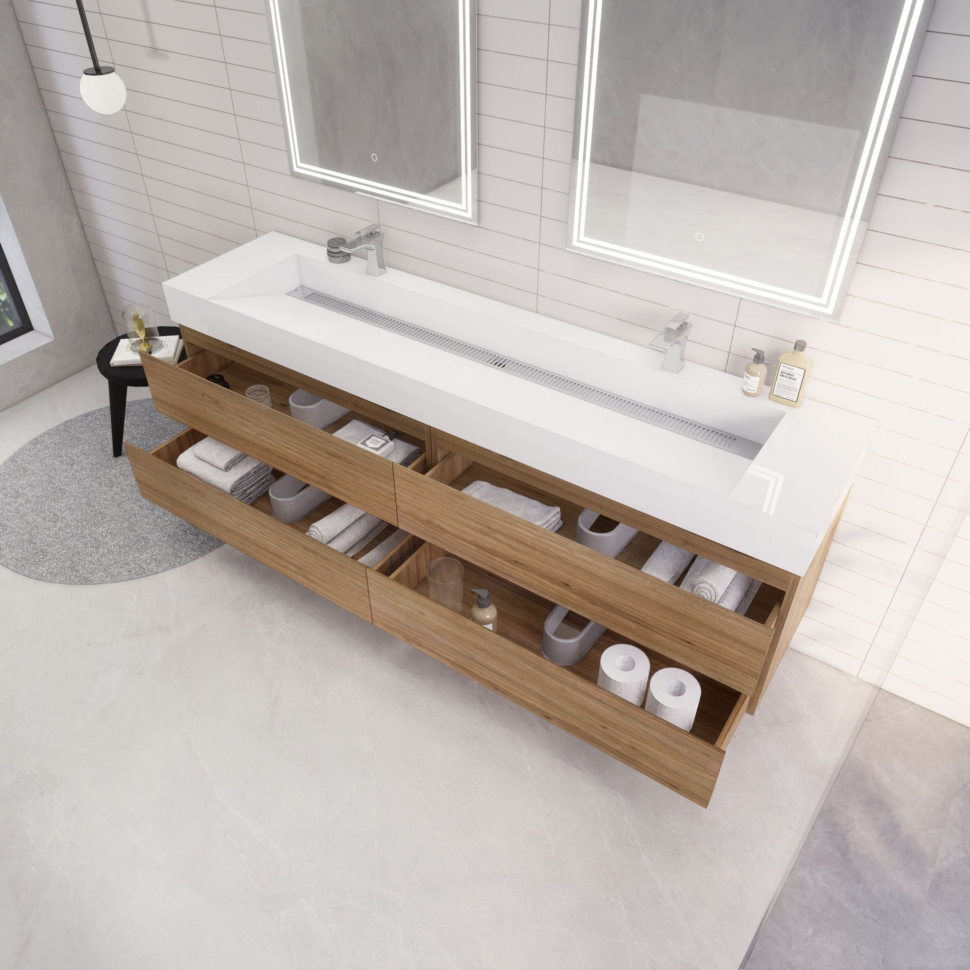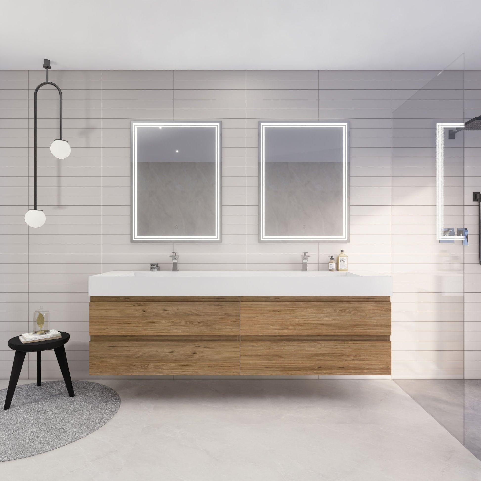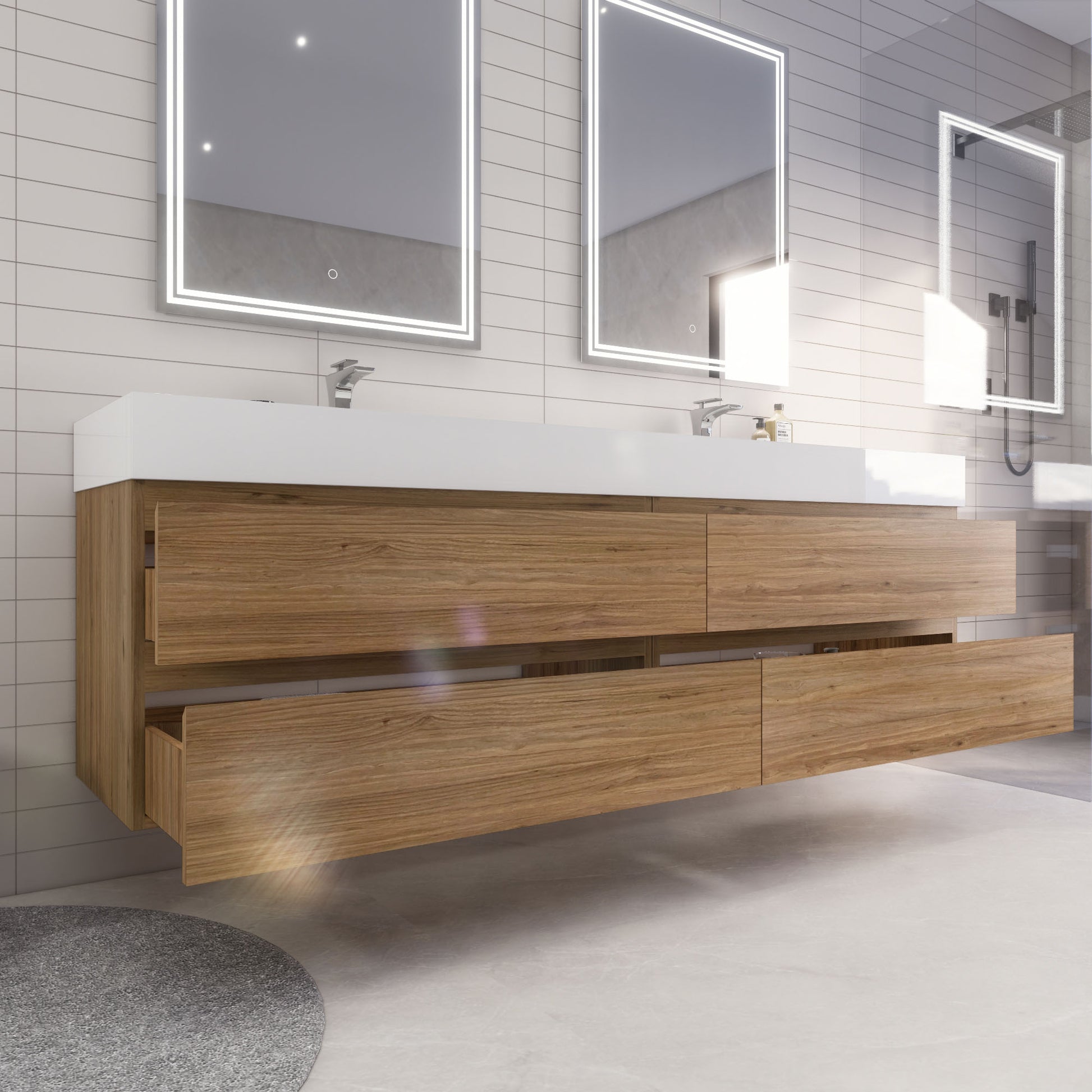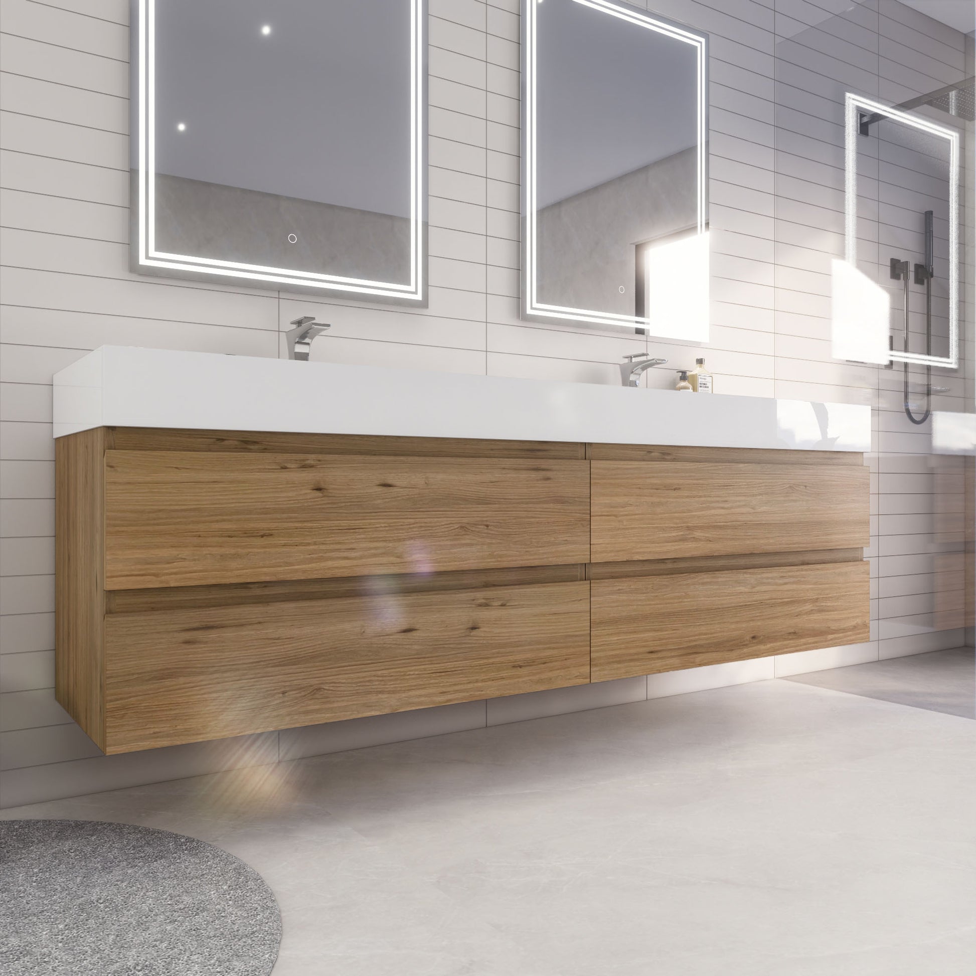 Monterey 84" Natural Oak Wall Mounted Vanity with Reinforced Acrylic Sinks