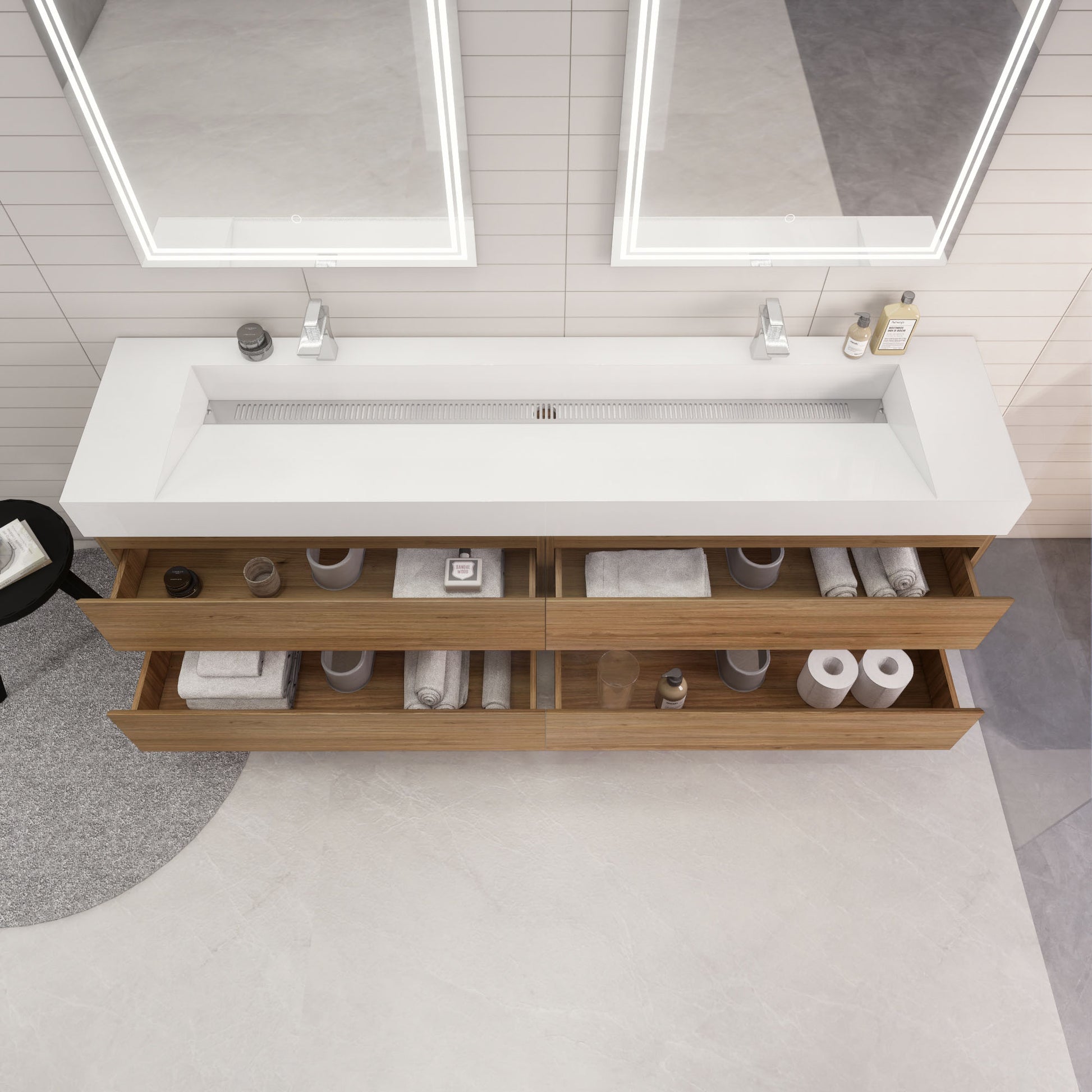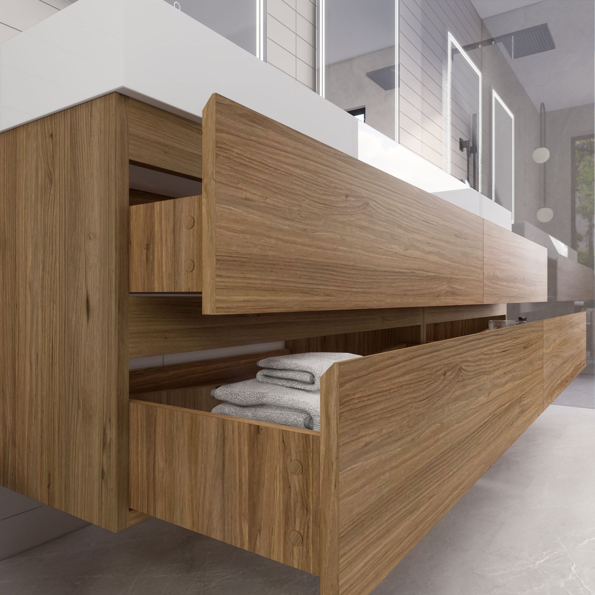 • Integrated European soft-closing hardware