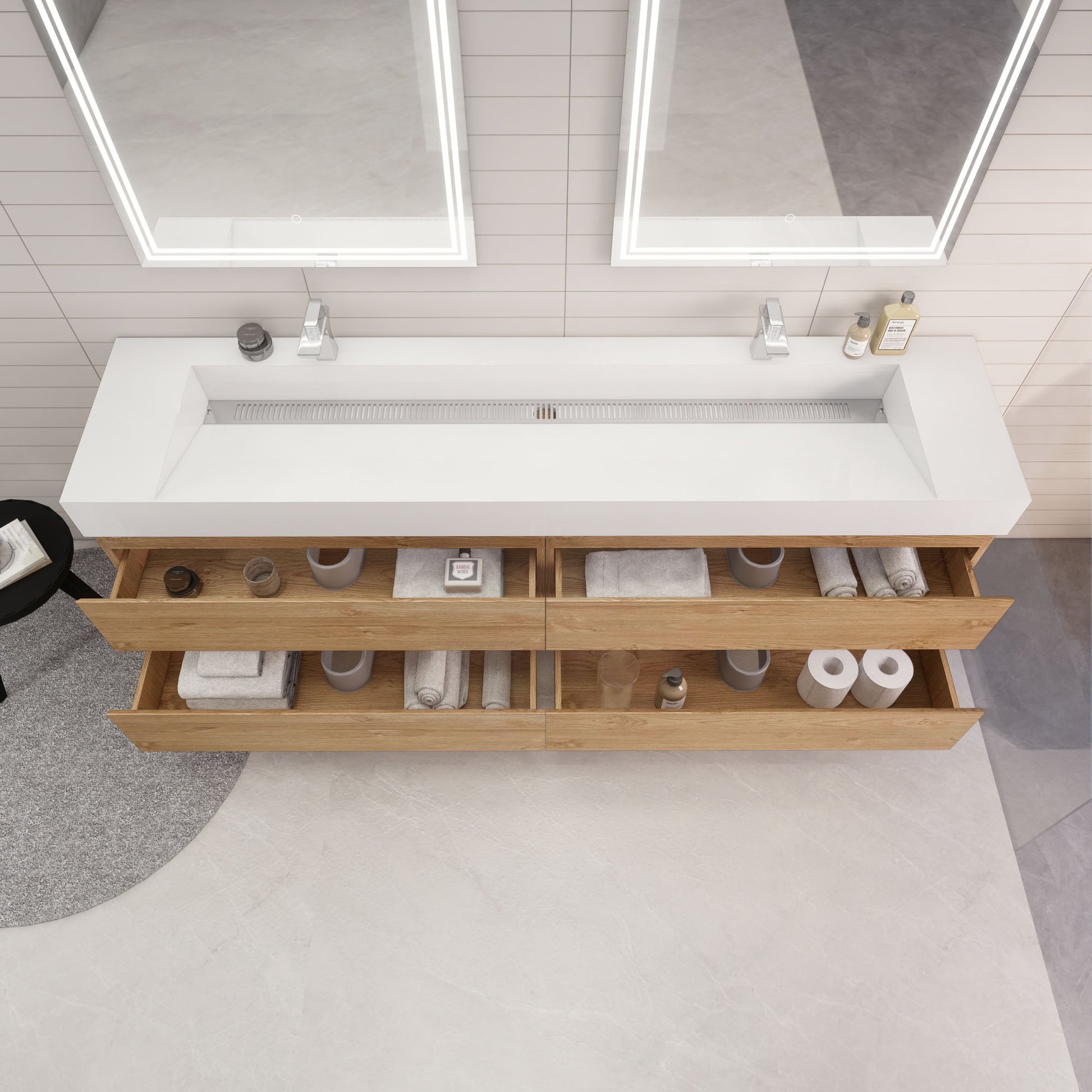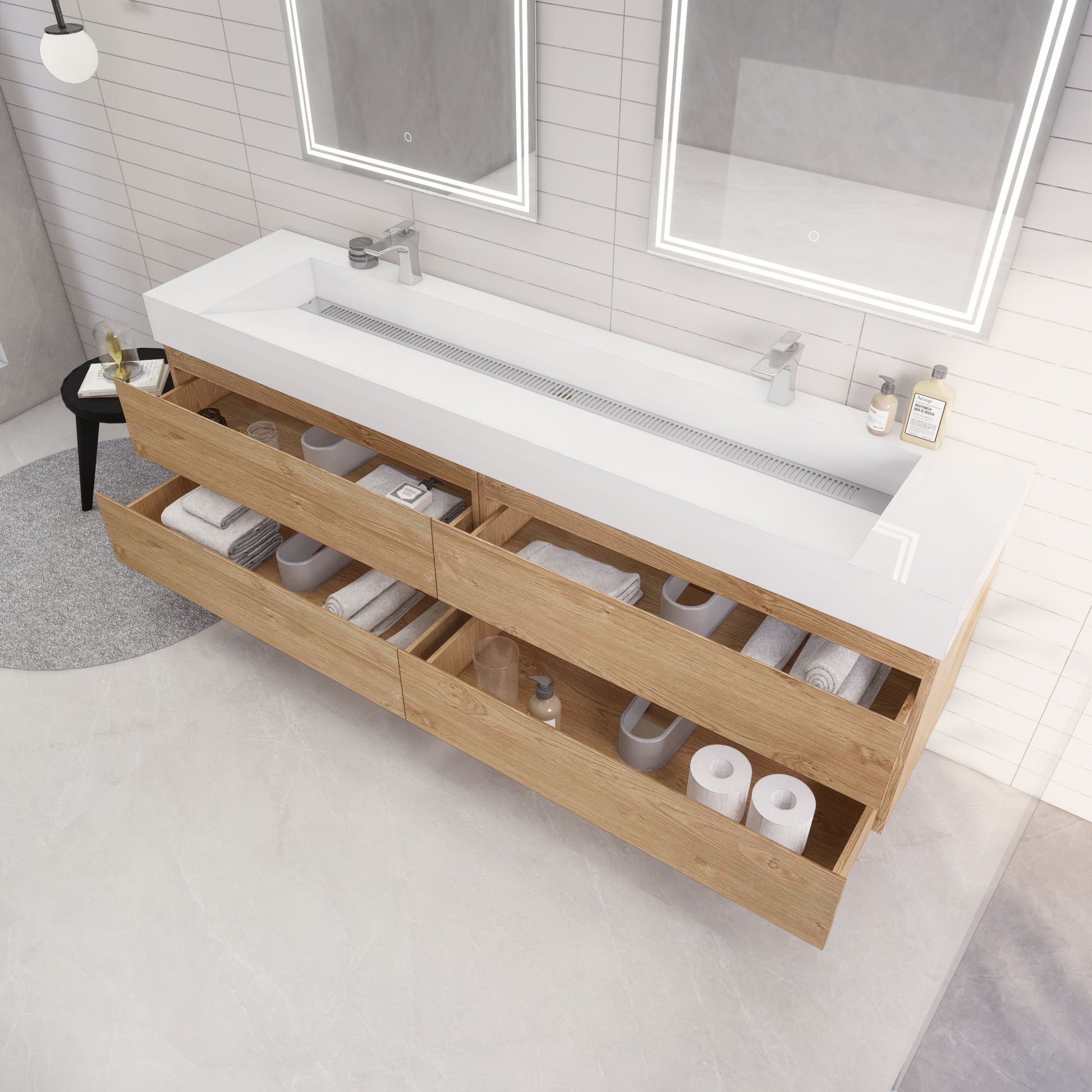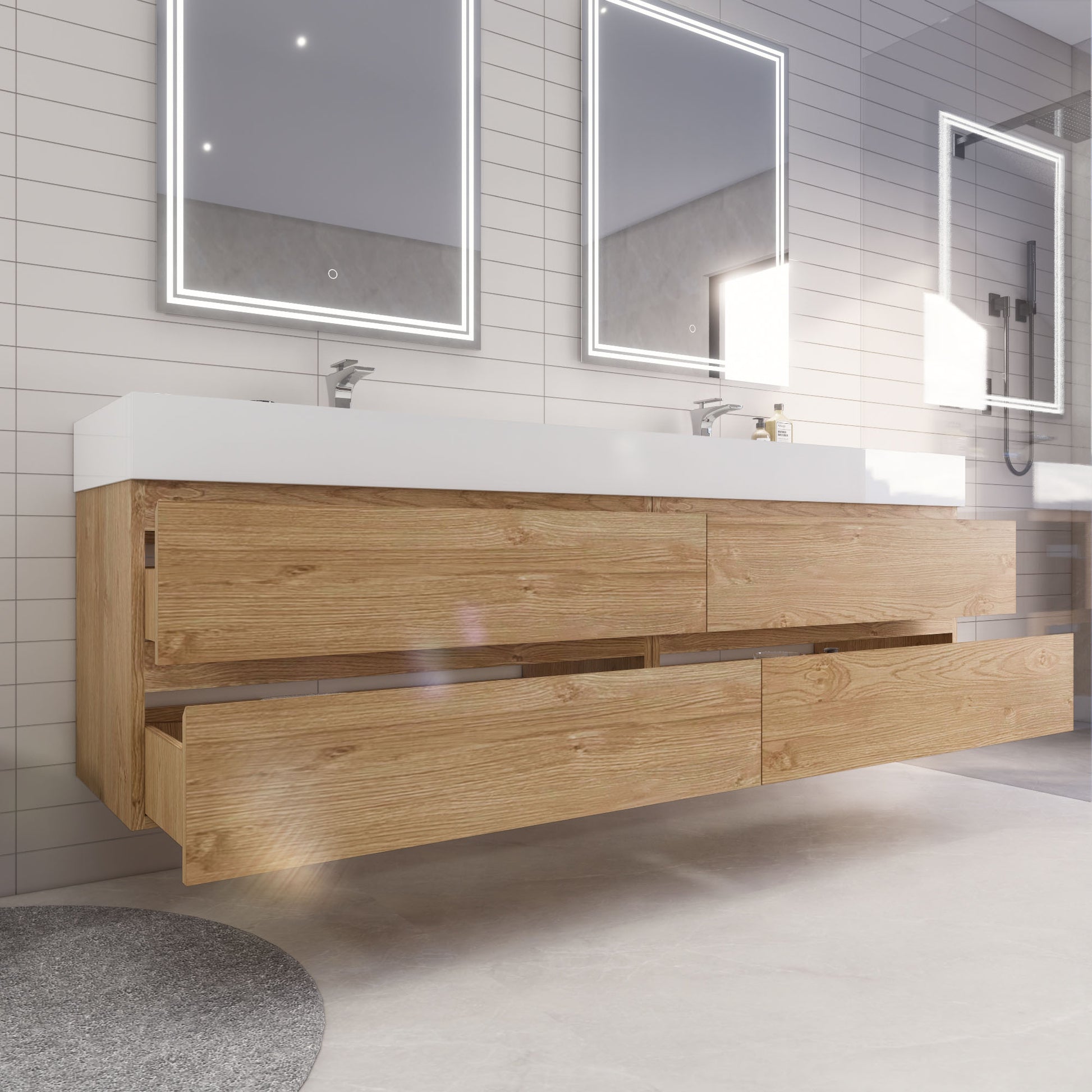 Monterey 84" New England Oak Wall Mounted Vanity with Reinforced Acrylic Sinks