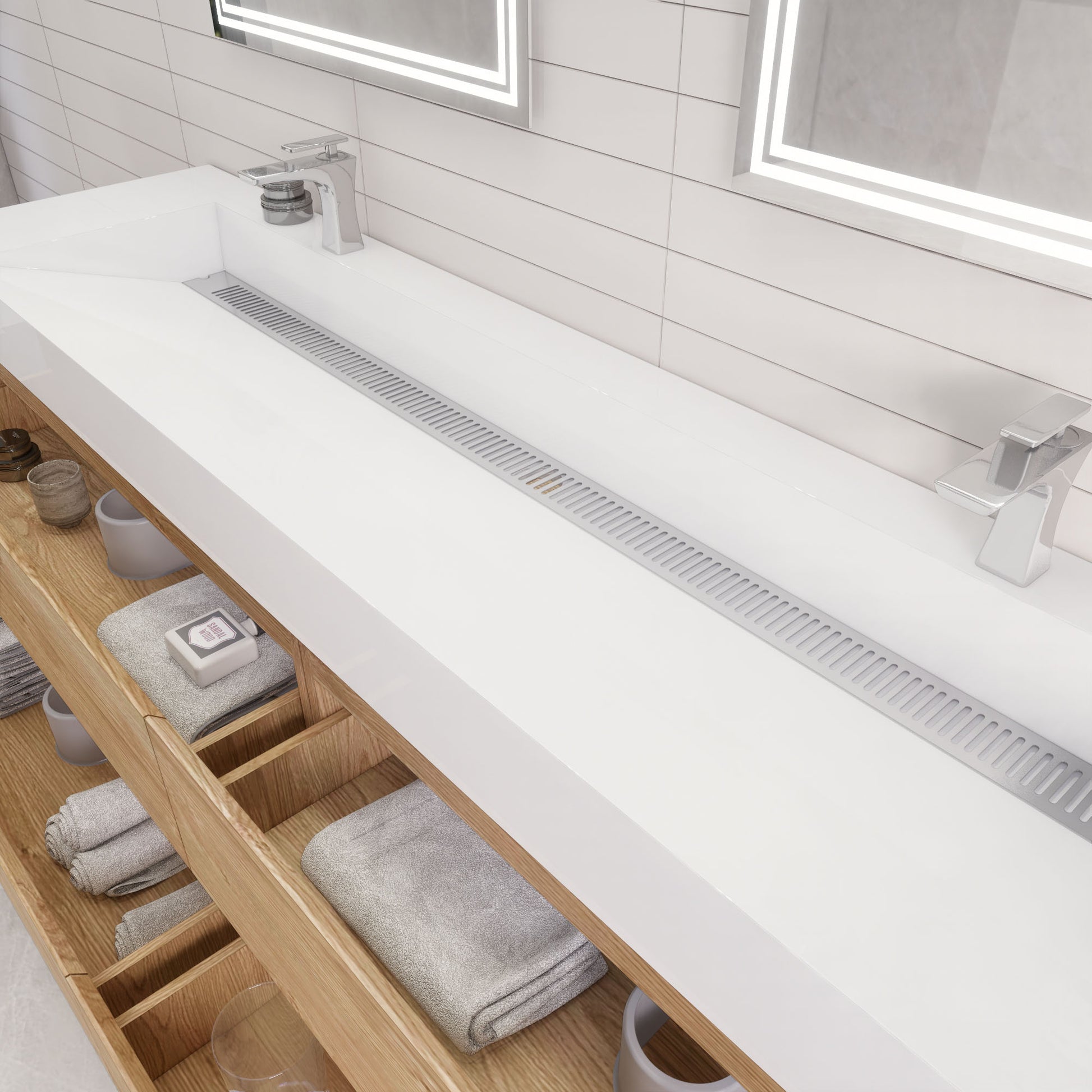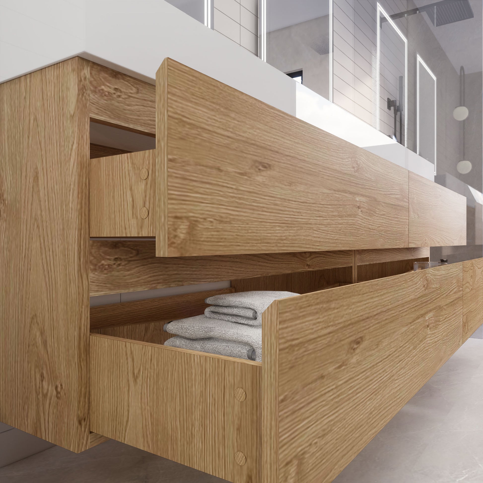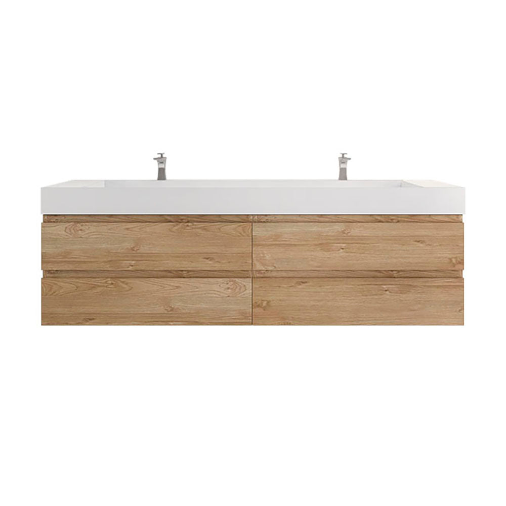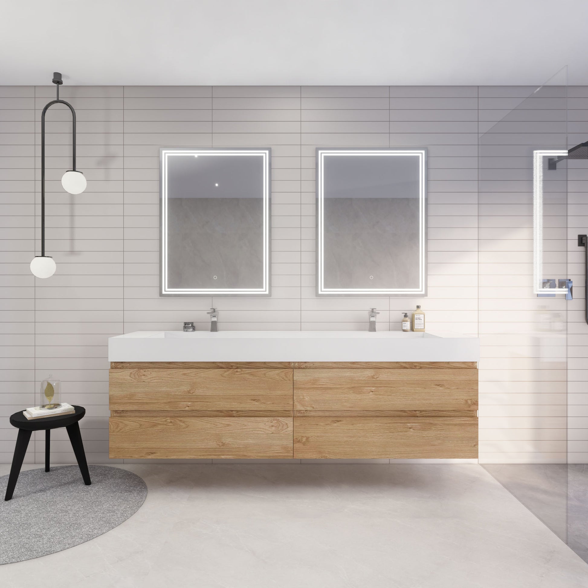 Monterey 84" New England Oak Wall Mounted Vanity with Reinforced Acrylic Sinks