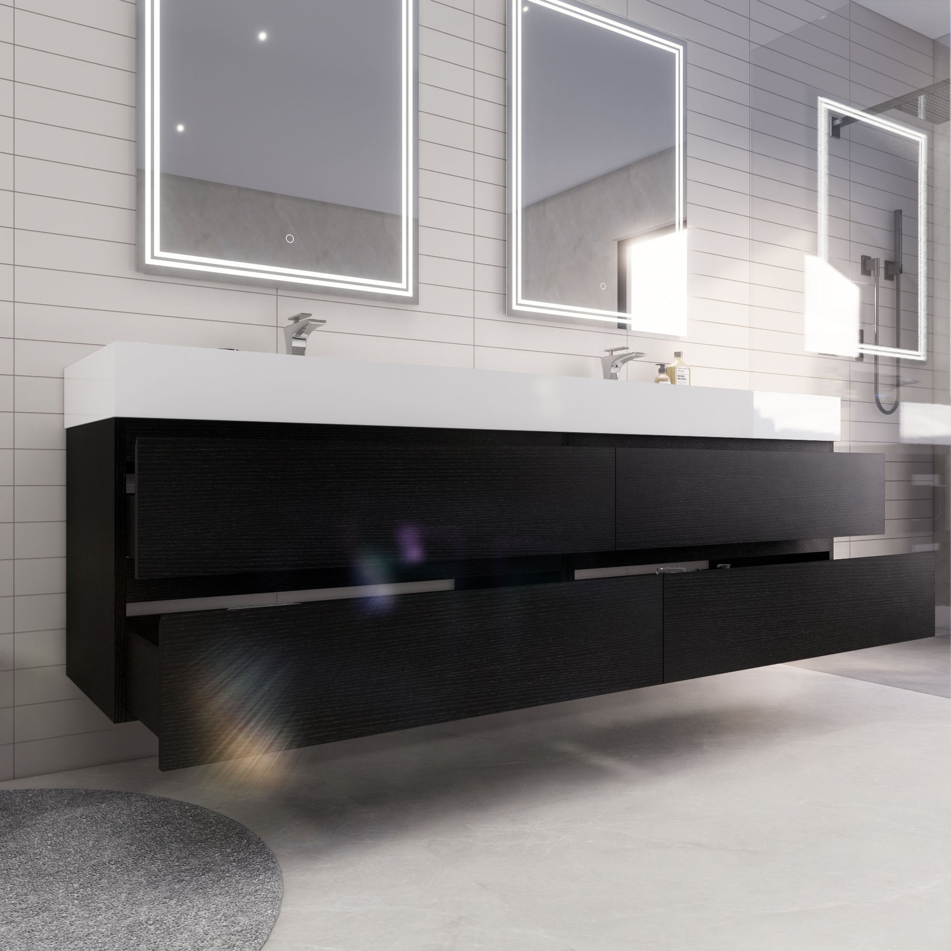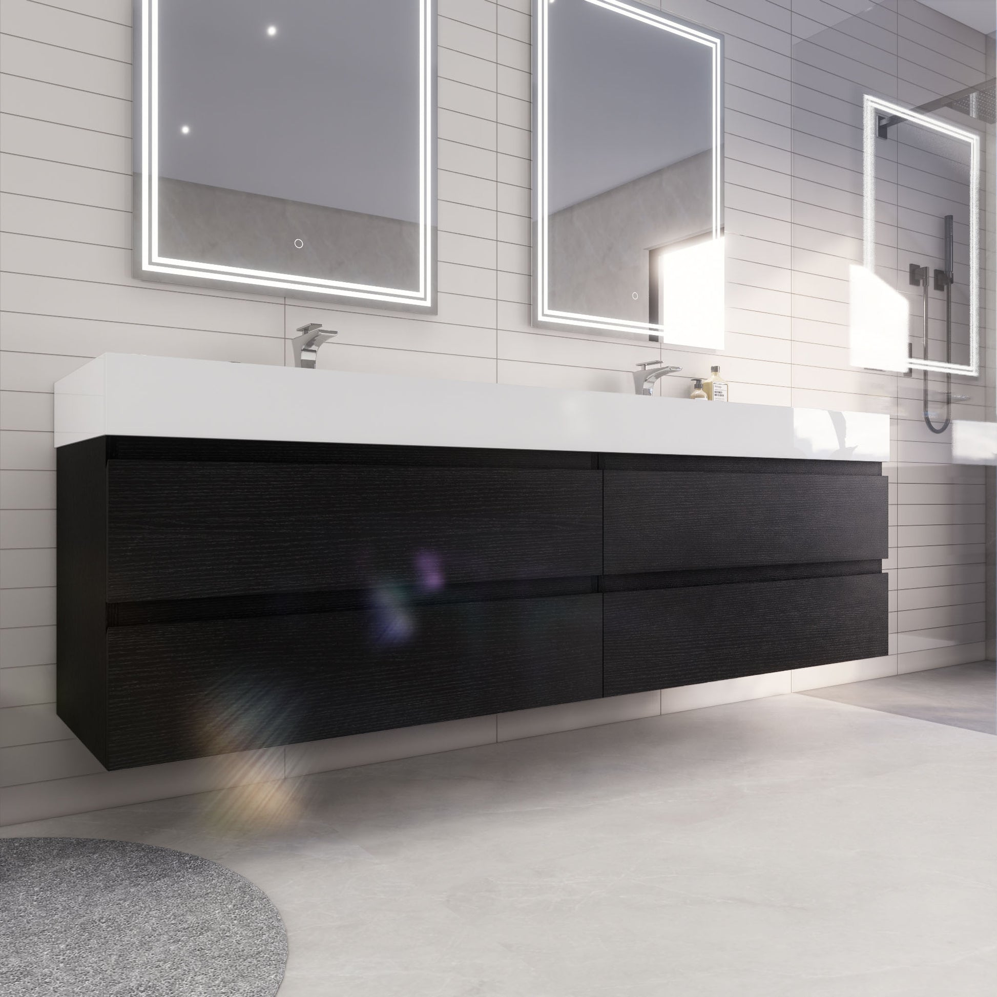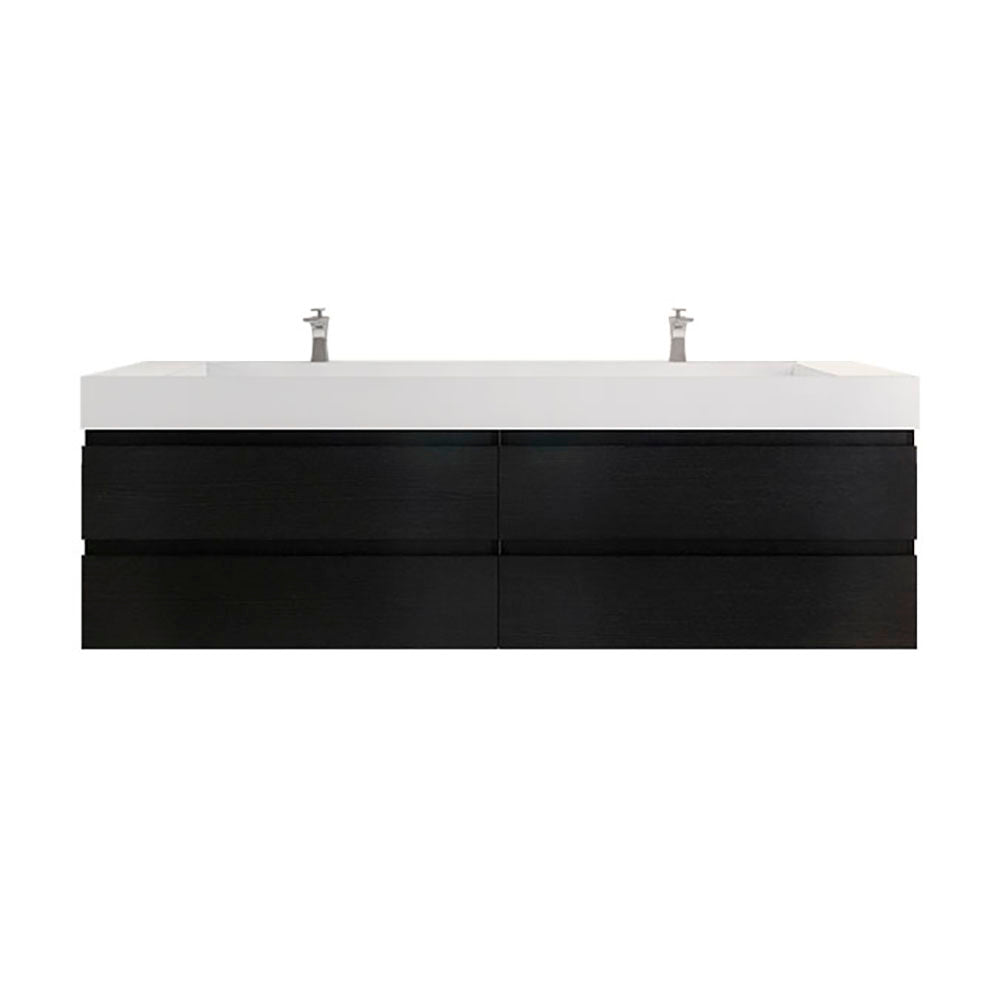 Monterey 84" Rich Black Wall Mounted Vanity with Reinforced Acrylic Sinks