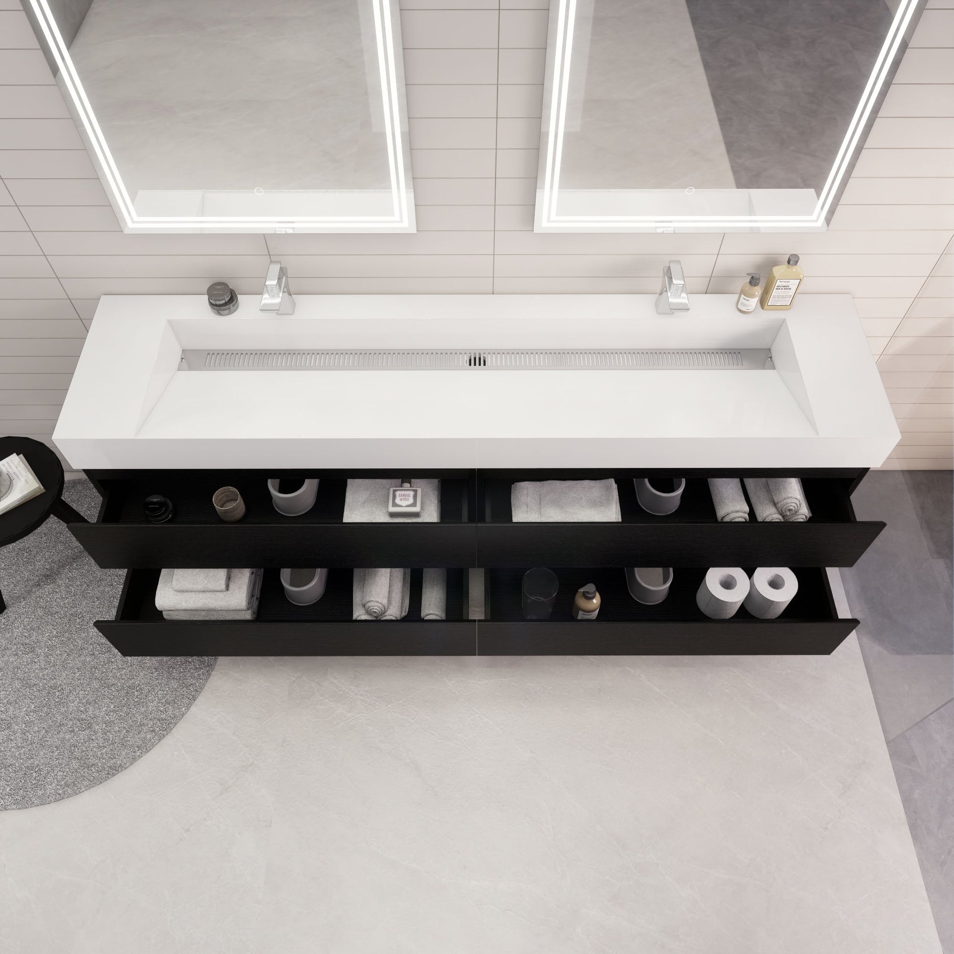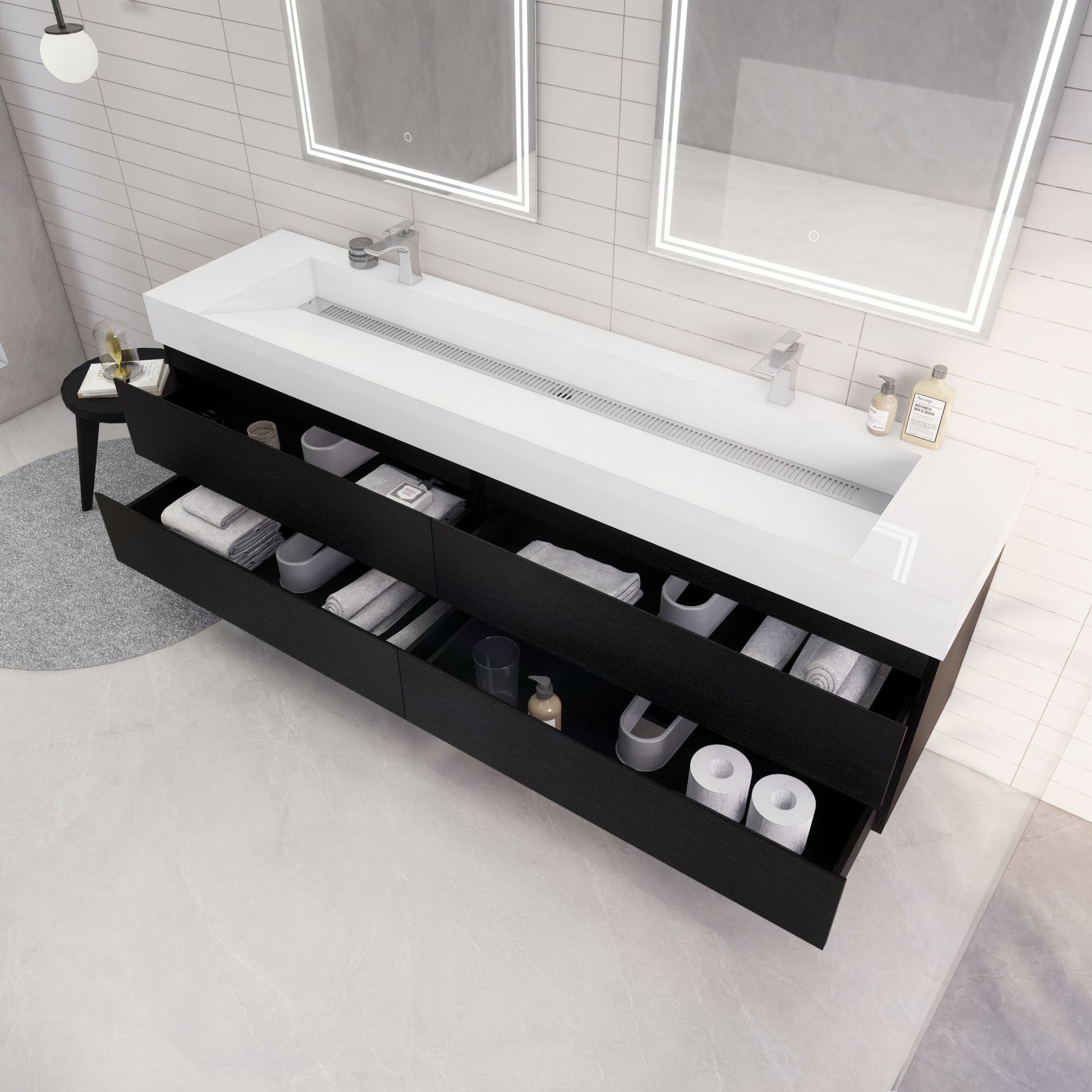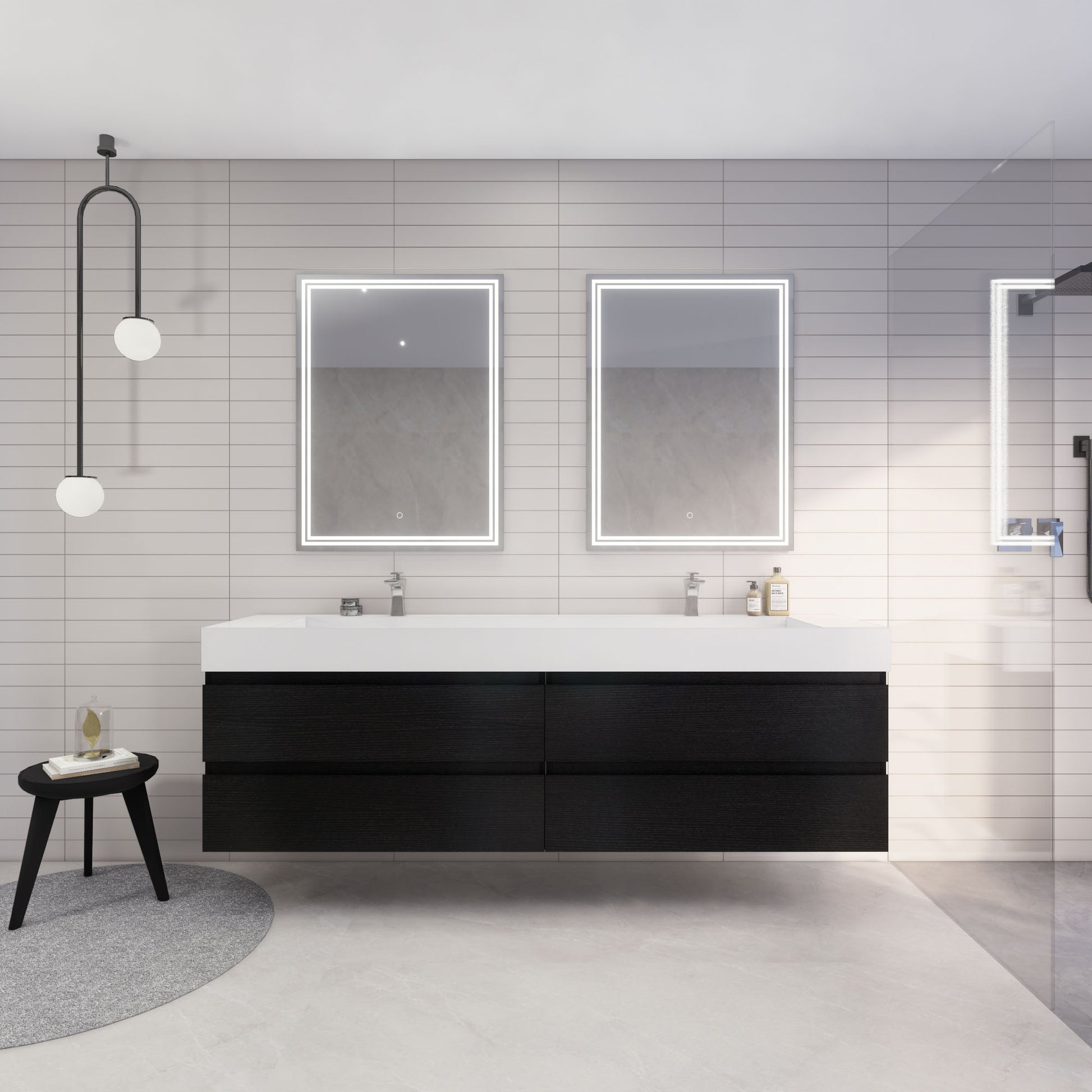 Monterey 84" Rich Black Wall Mounted Vanity with Reinforced Acrylic Sinks