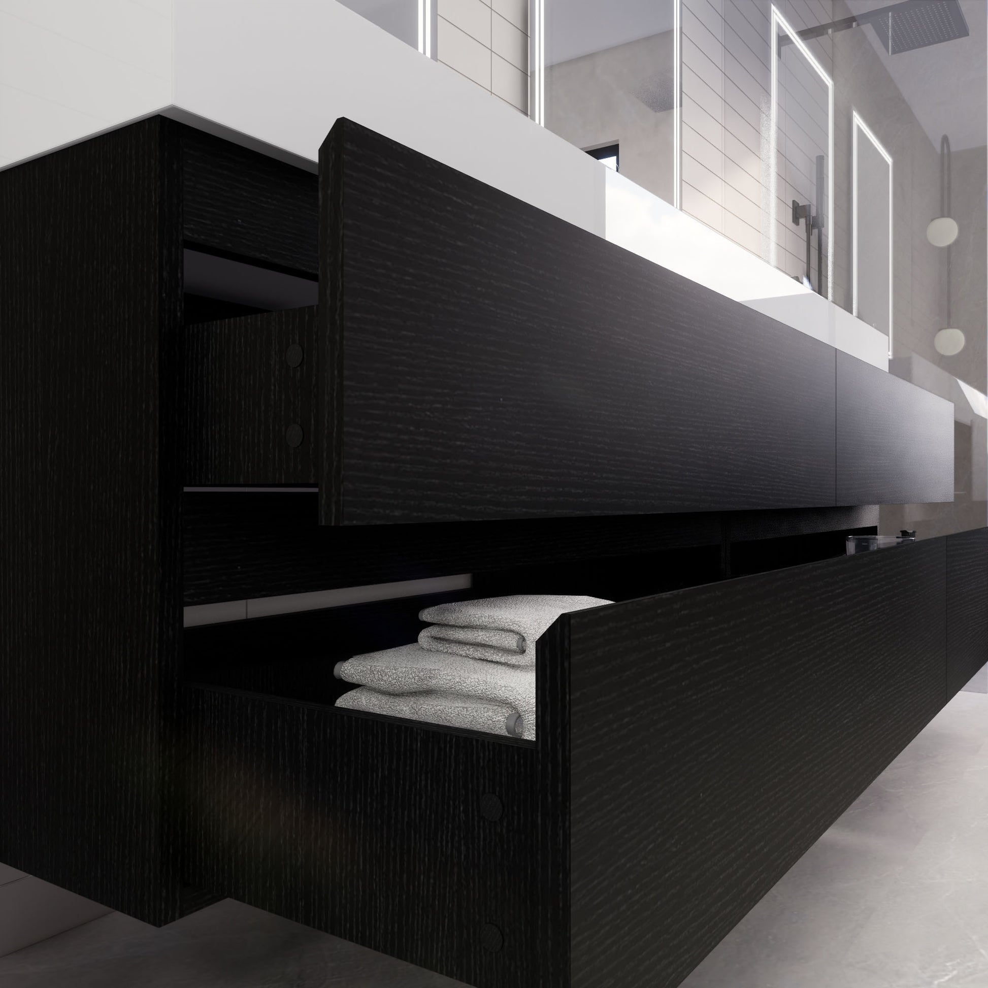 • Integrated European soft-closing hardware