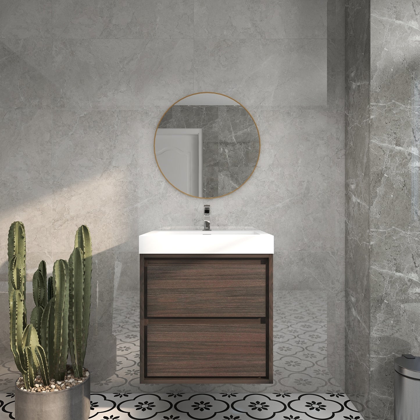Sleek and sophisticated, the Saggie Floating Bathroom Vanity blends innovative design and storage utility to deliver your personal sanctuary.