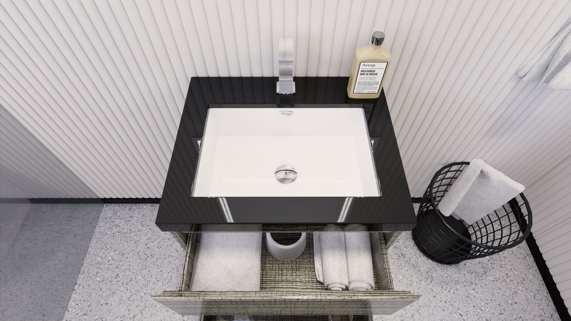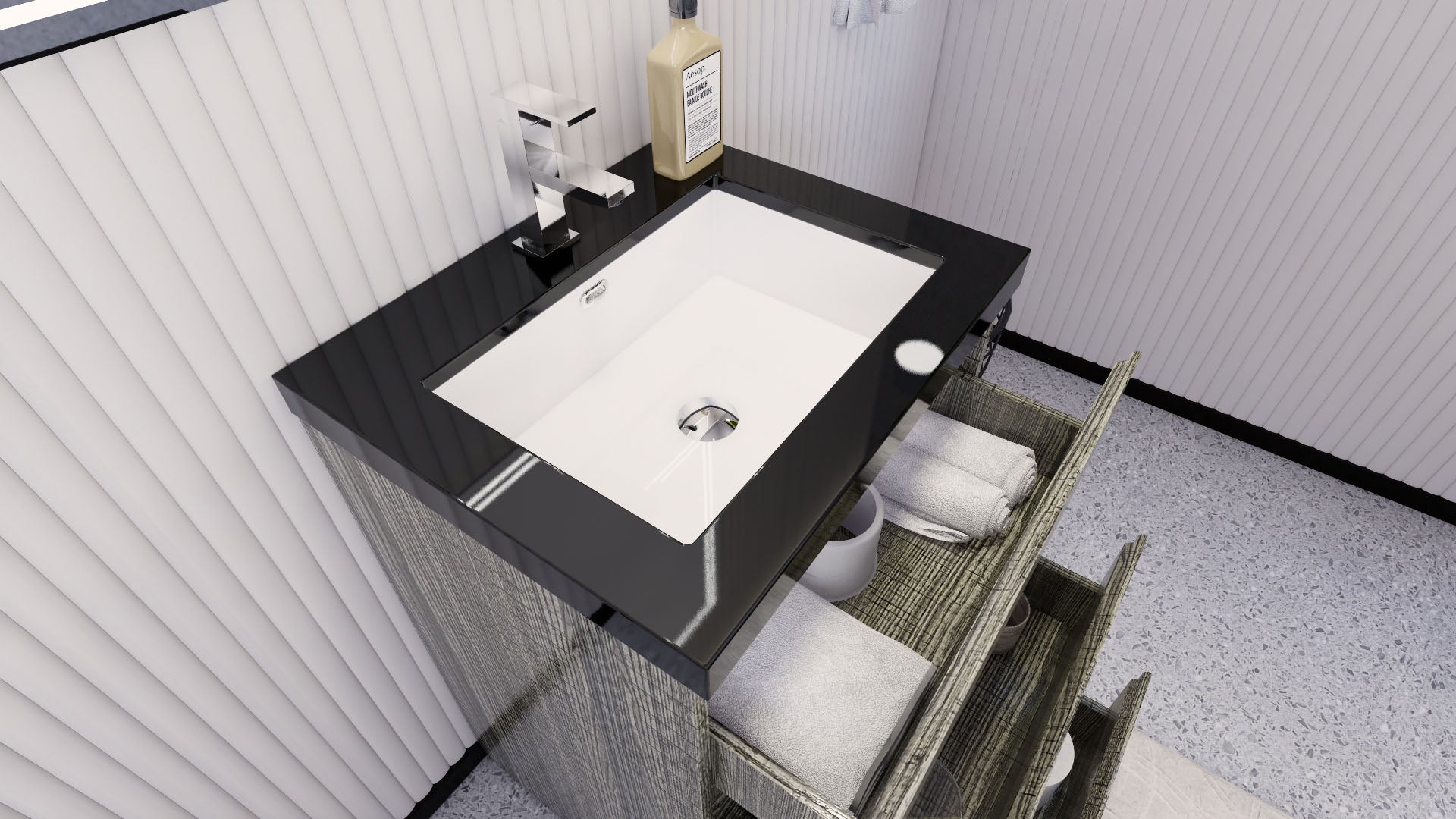 • Reinforced acrylic sink top