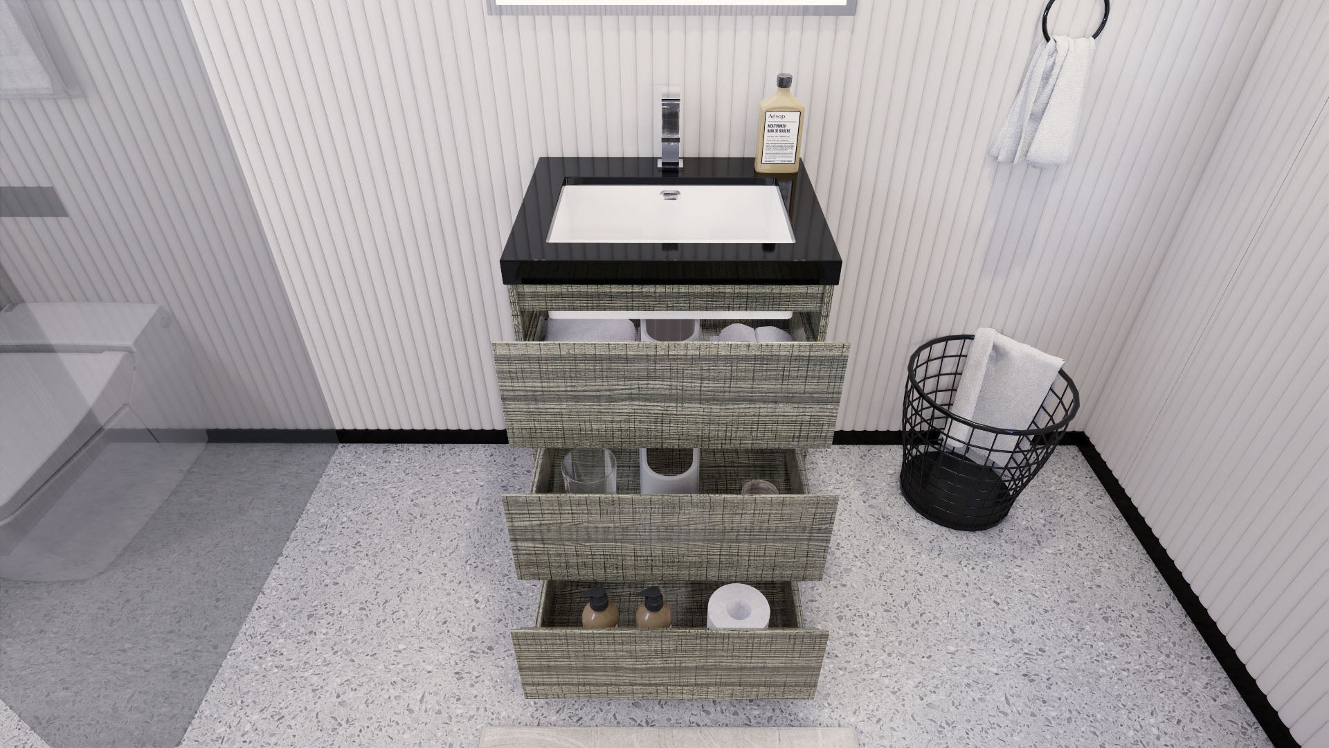 Stanley 24" High Gloss Ash Gray Freestanding Vanity with Reinforced Acrylic Sink