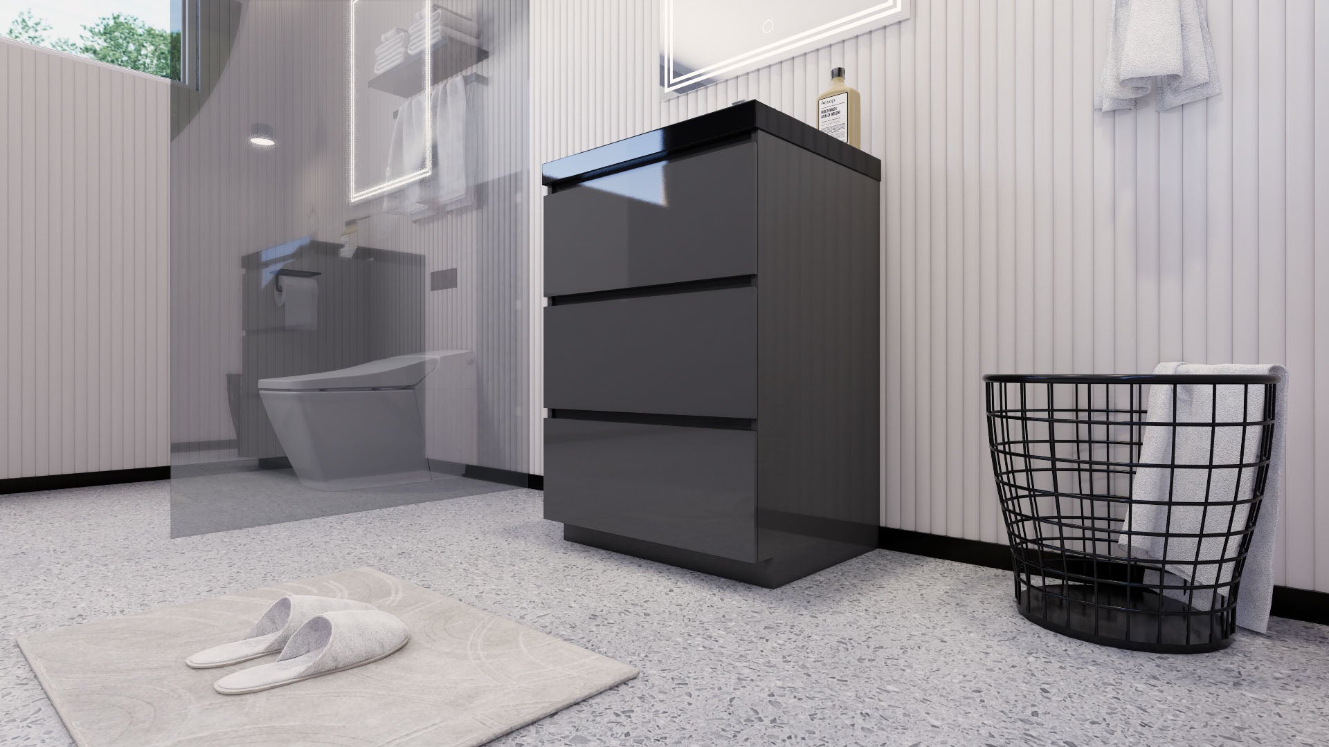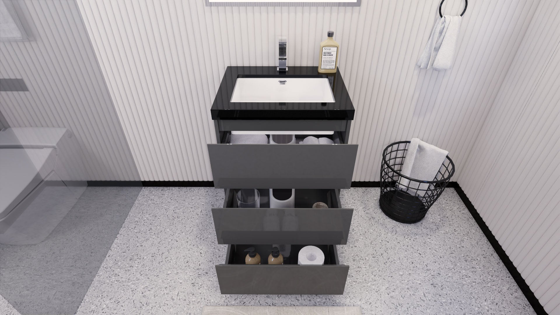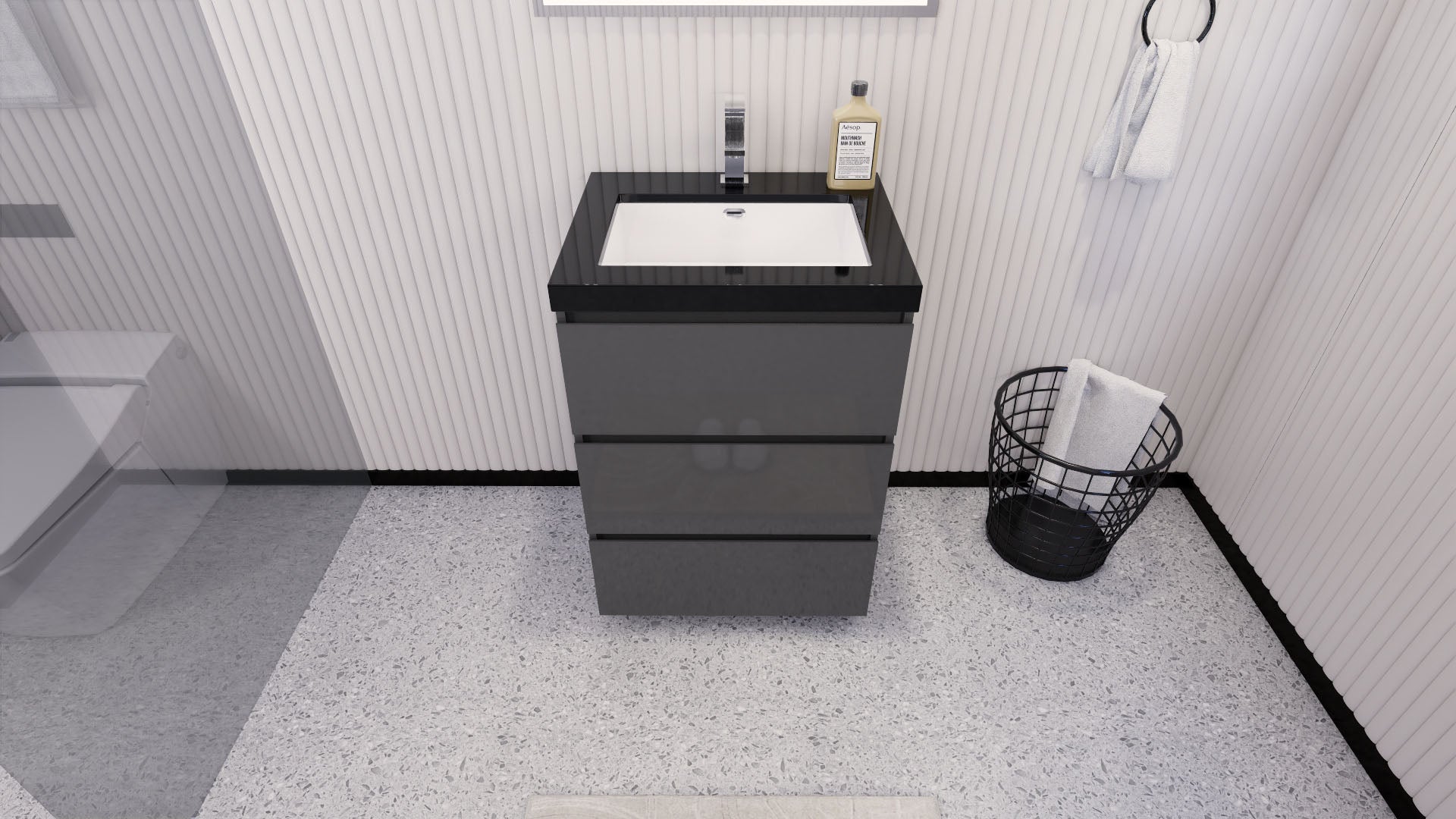 Stanley 24" High Gloss Gray Freestanding Vanity with Reinforced Acrylic Sink