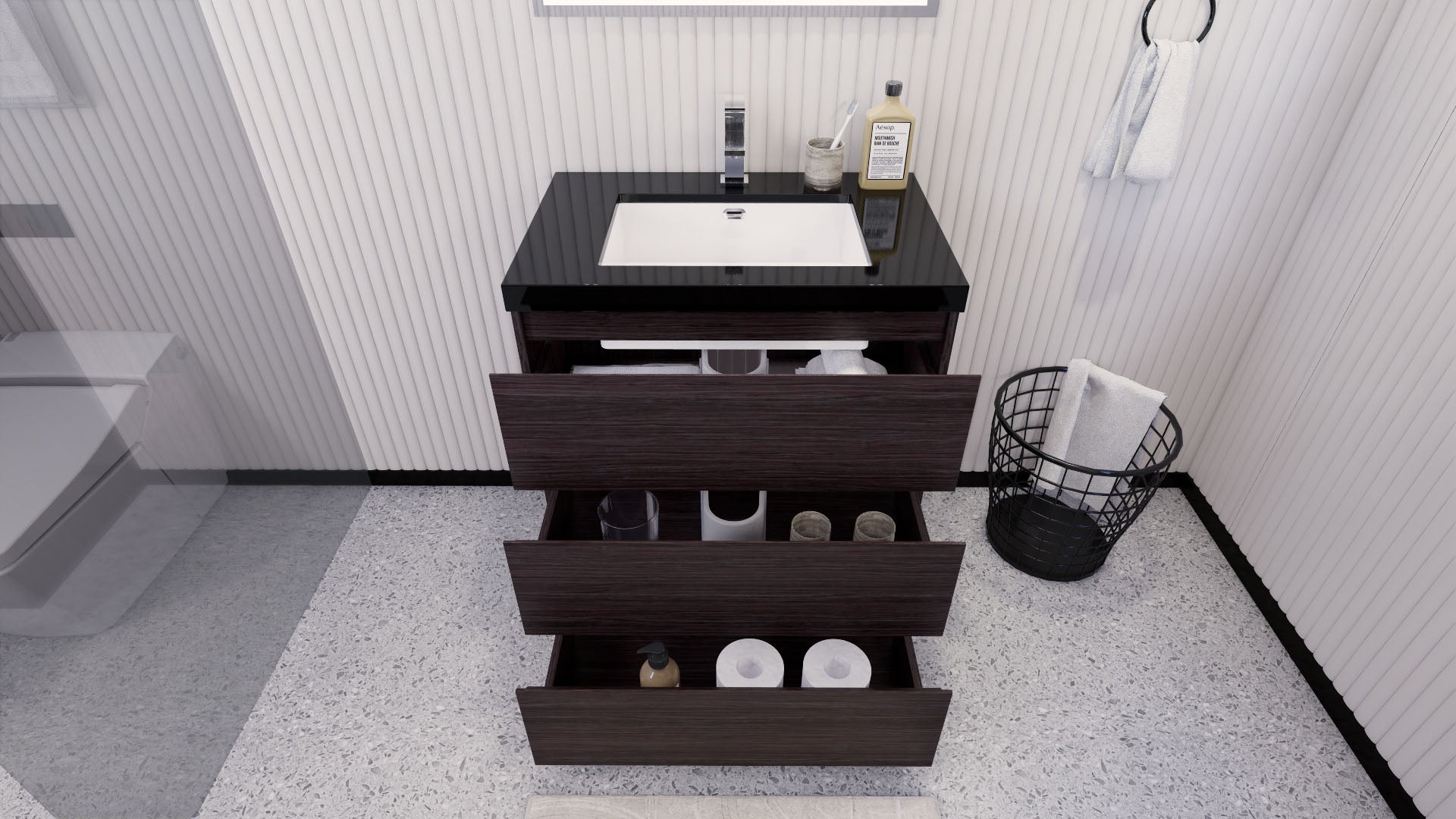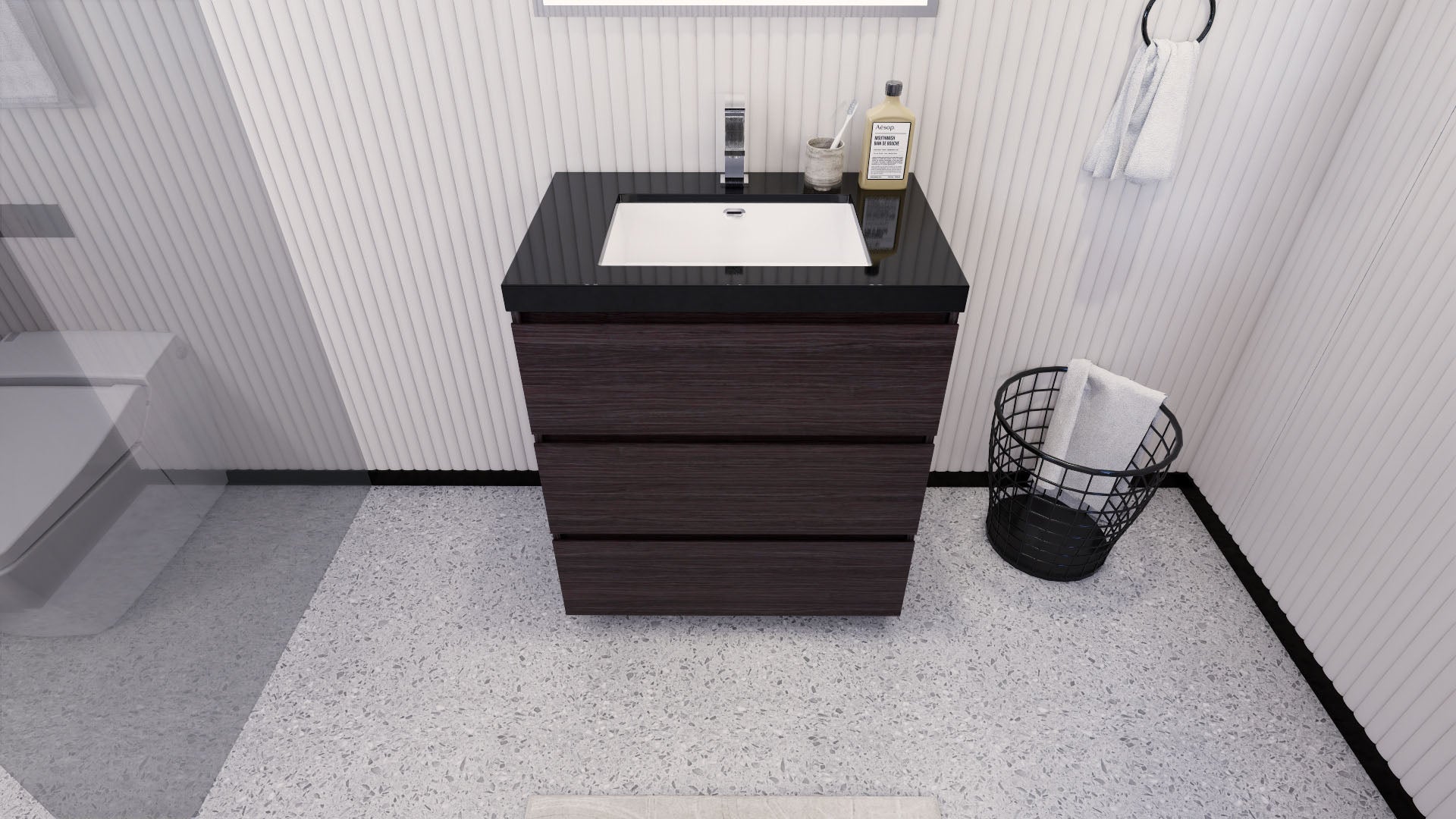 Stanley 30" Dark Gray Oak Freestanding Vanity with Reinforced Acrylic Sink