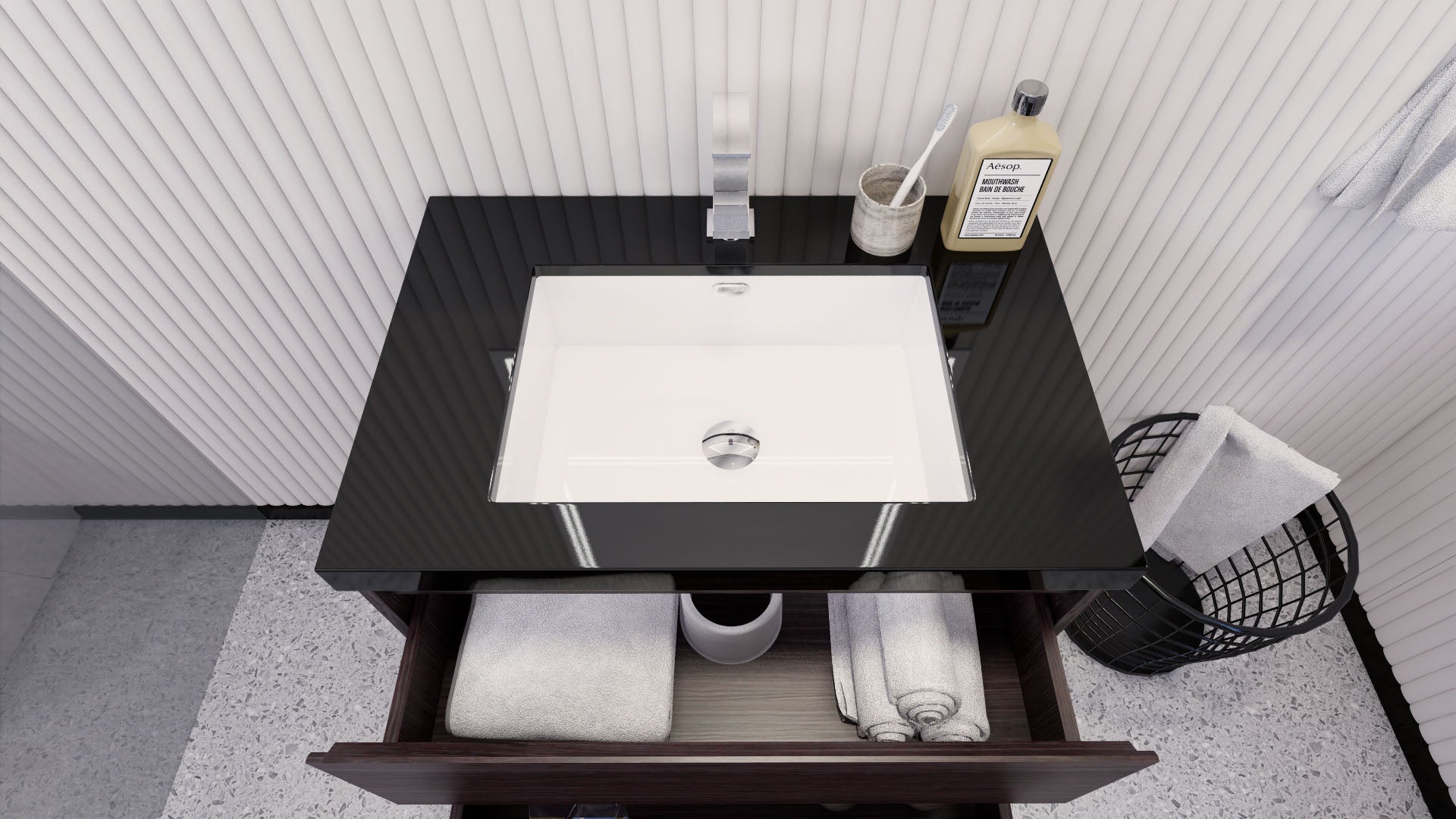 • Reinforced acrylic sink top