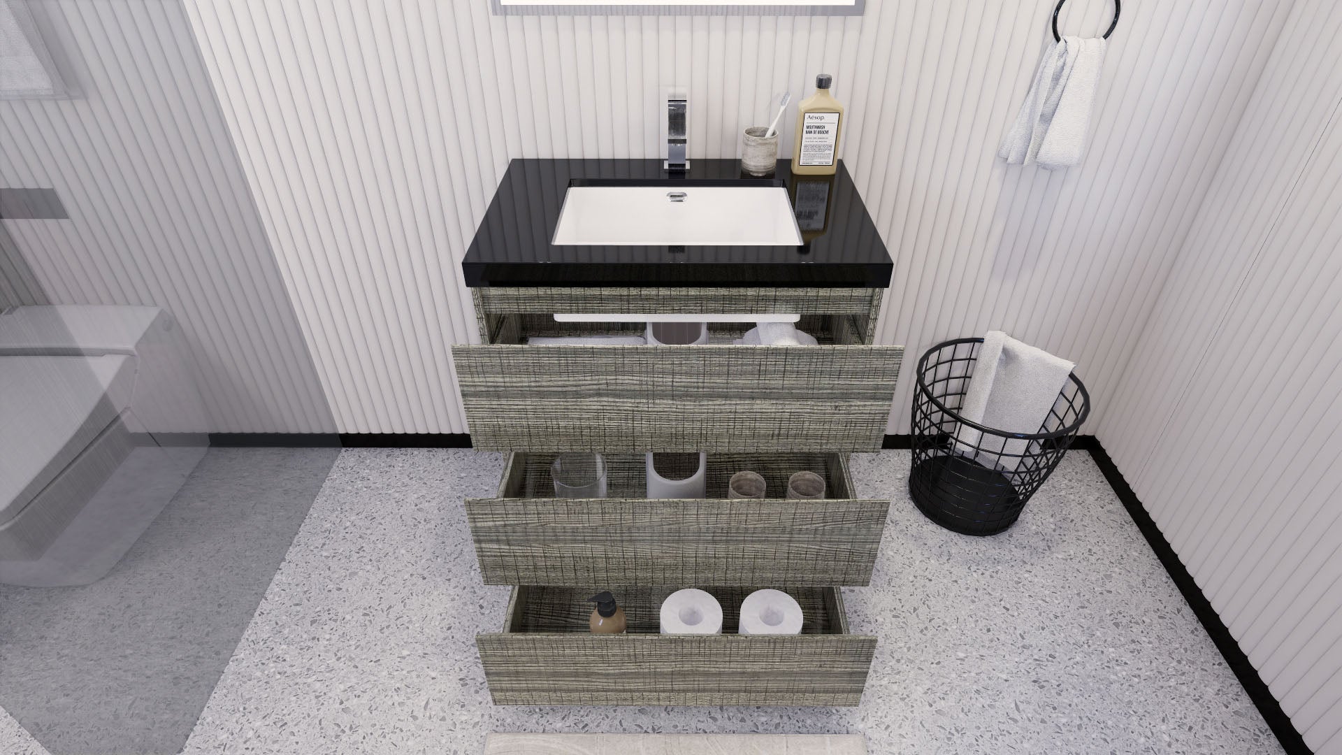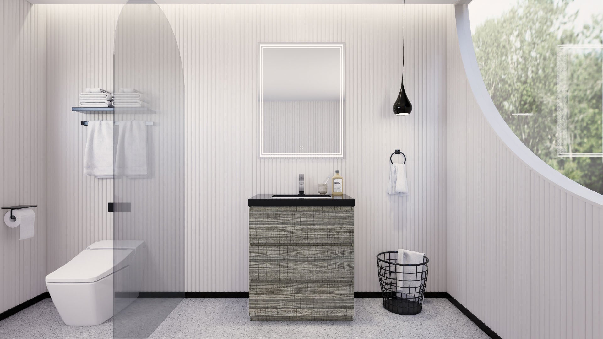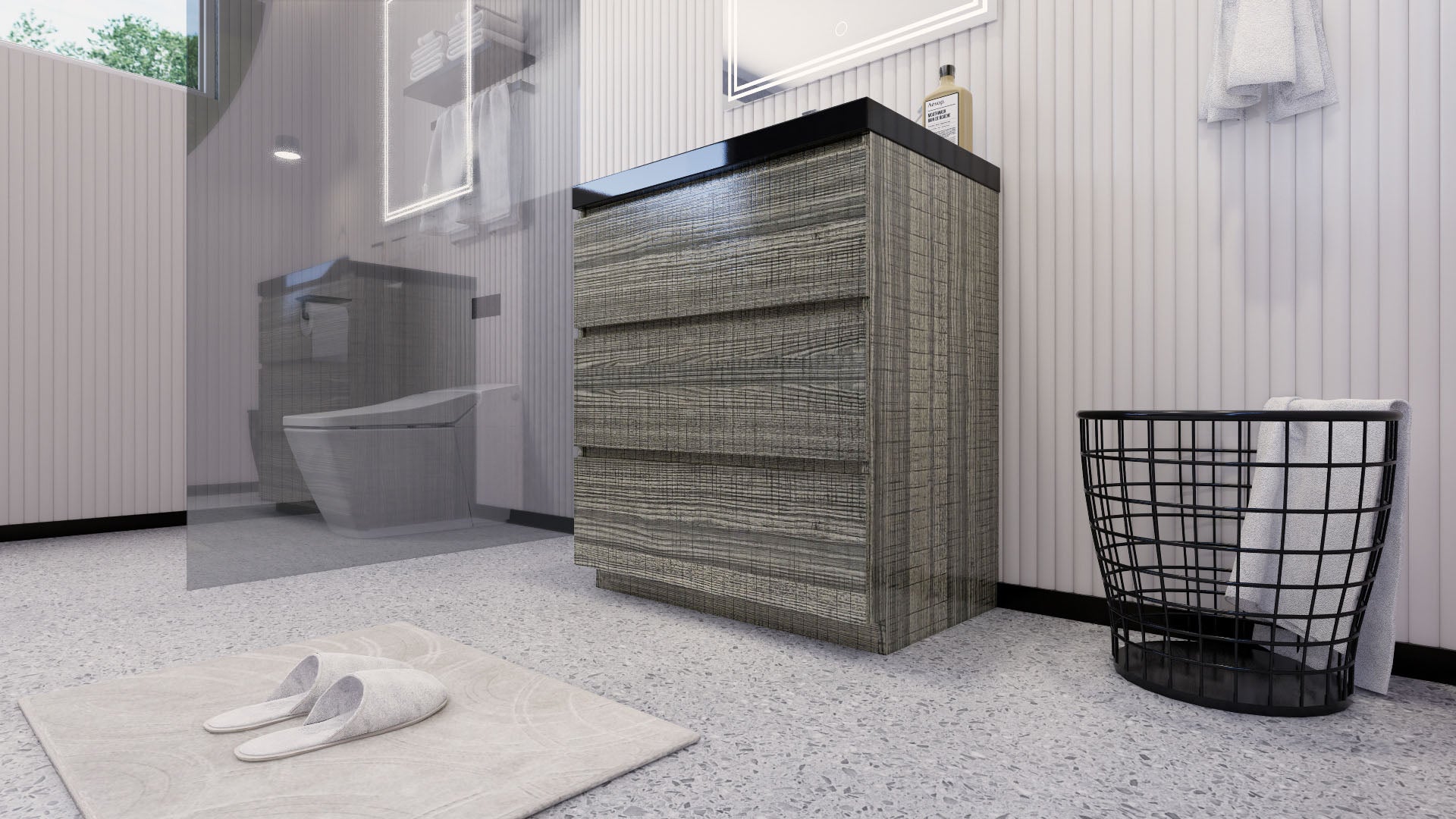 Stanley 30" High Gloss Ash Gray Freestanding Vanity with Reinforced Acrylic Sink