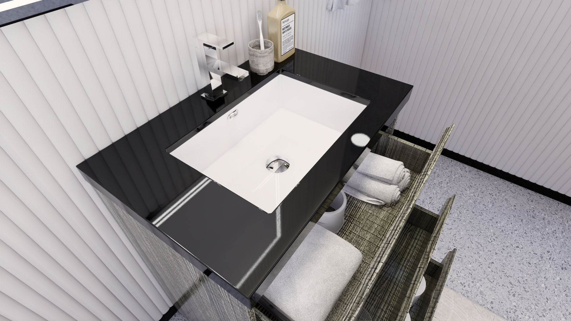 • Reinforced acrylic sink top