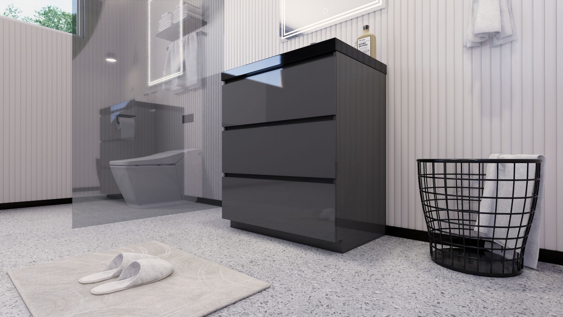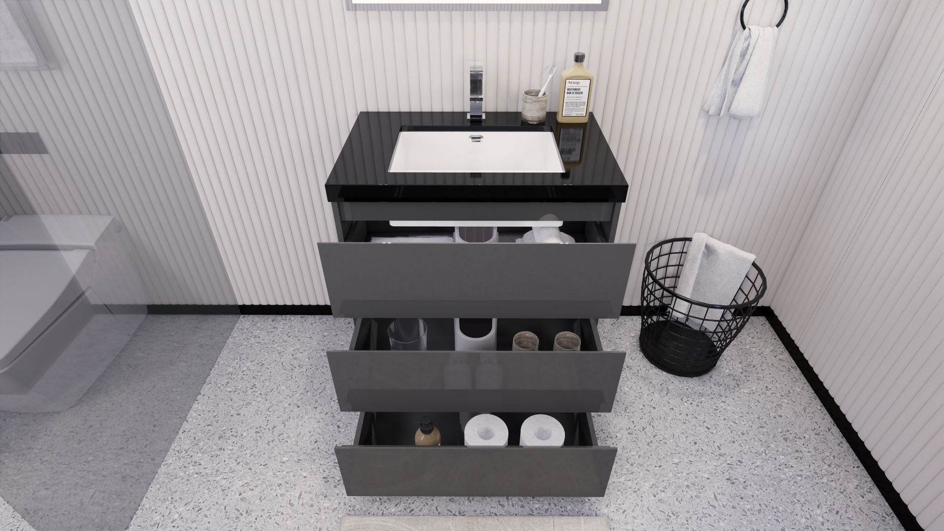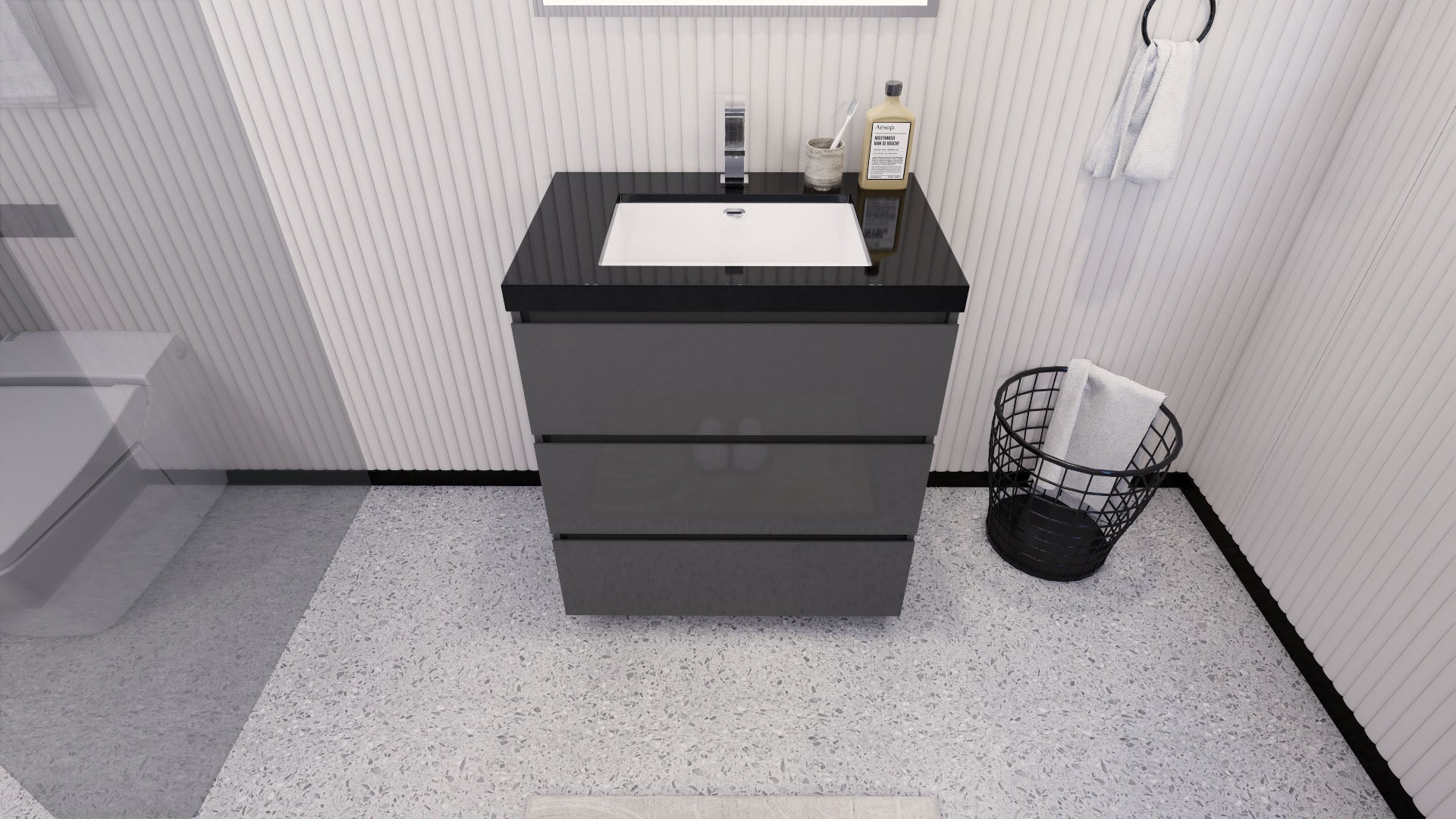 Stanley 30" High Gloss Gray Freestanding Vanity with Reinforced Acrylic Sink