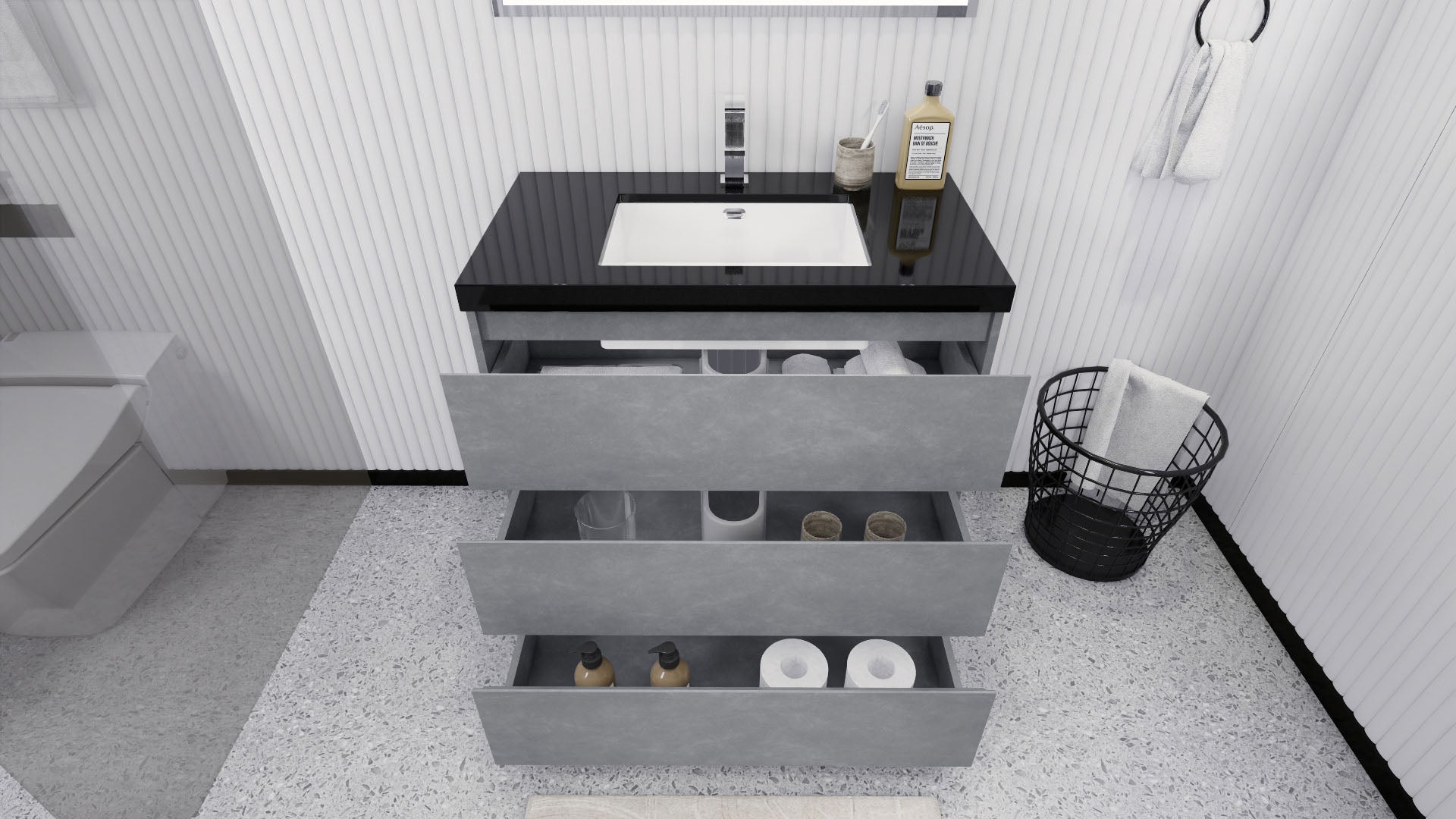 Stanley 36" Cement Gray Freestanding Vanity with Reinforced Acrylic Sink