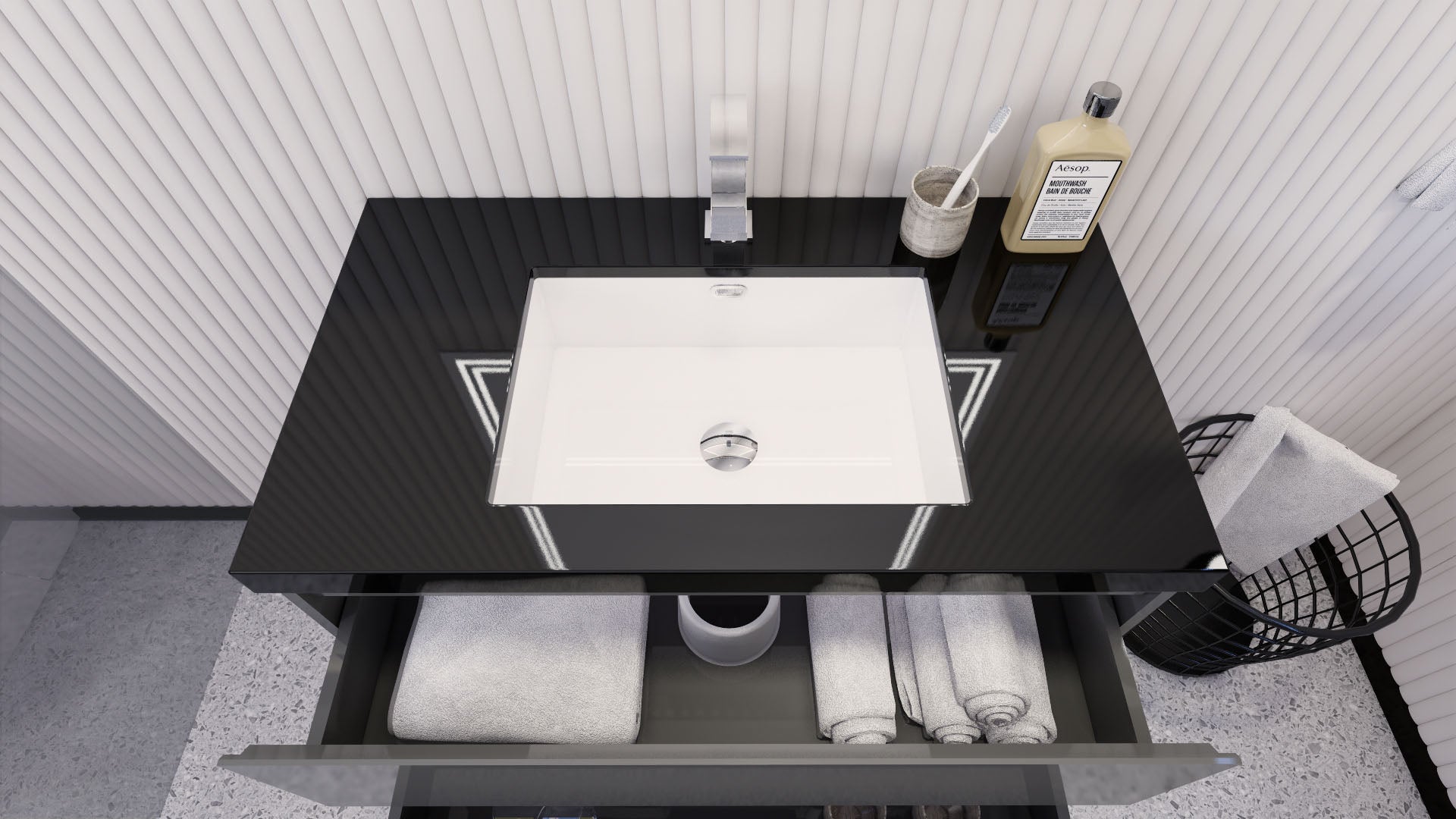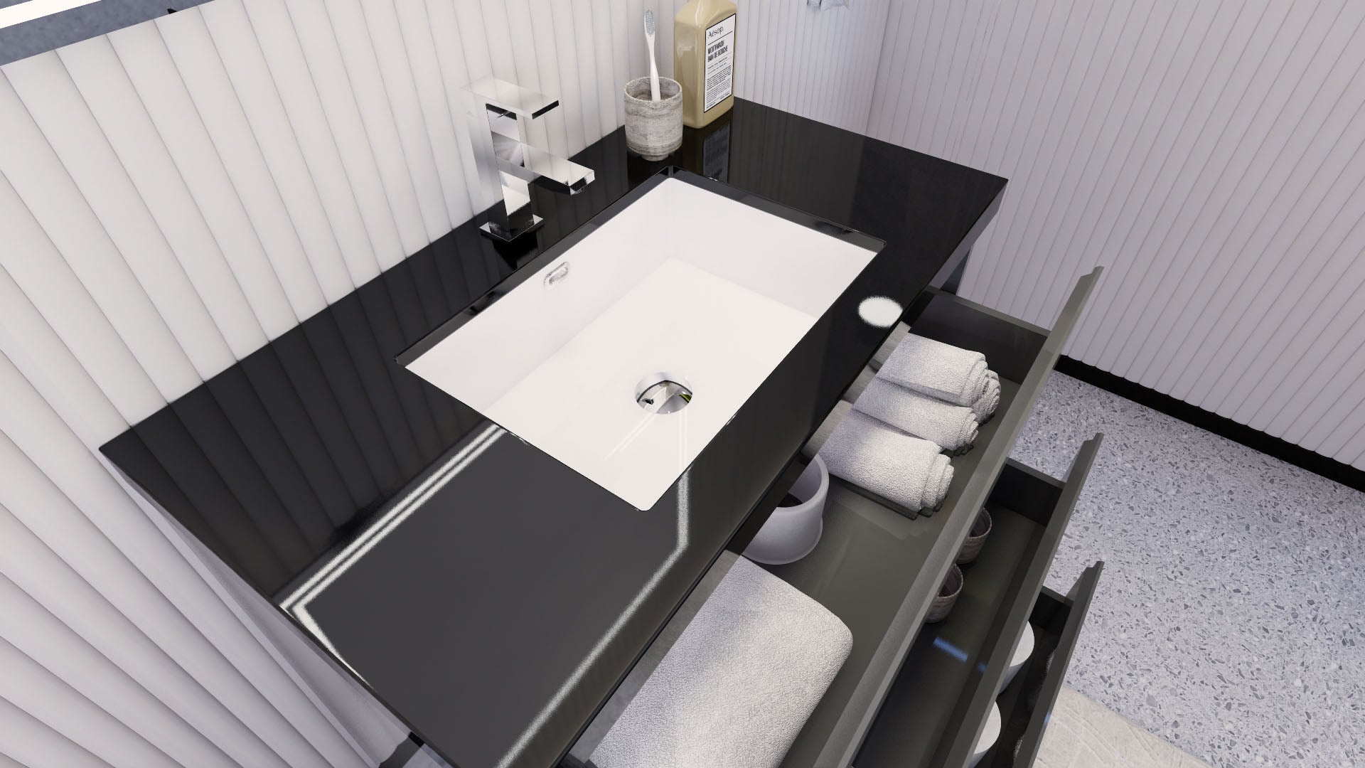 • Reinforced acrylic sink top