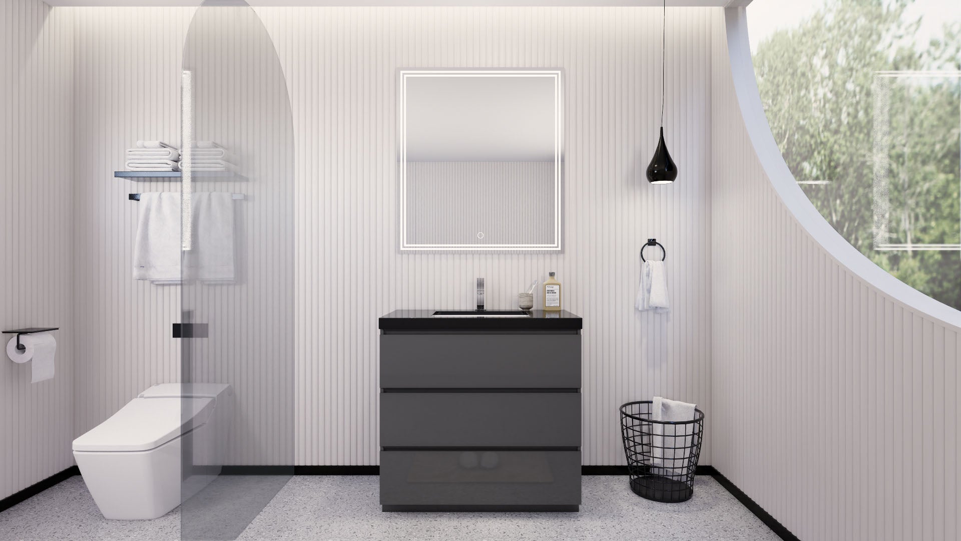 Stanley 36" High Gloss Gray Freestanding Vanity with Reinforced Acrylic Sink