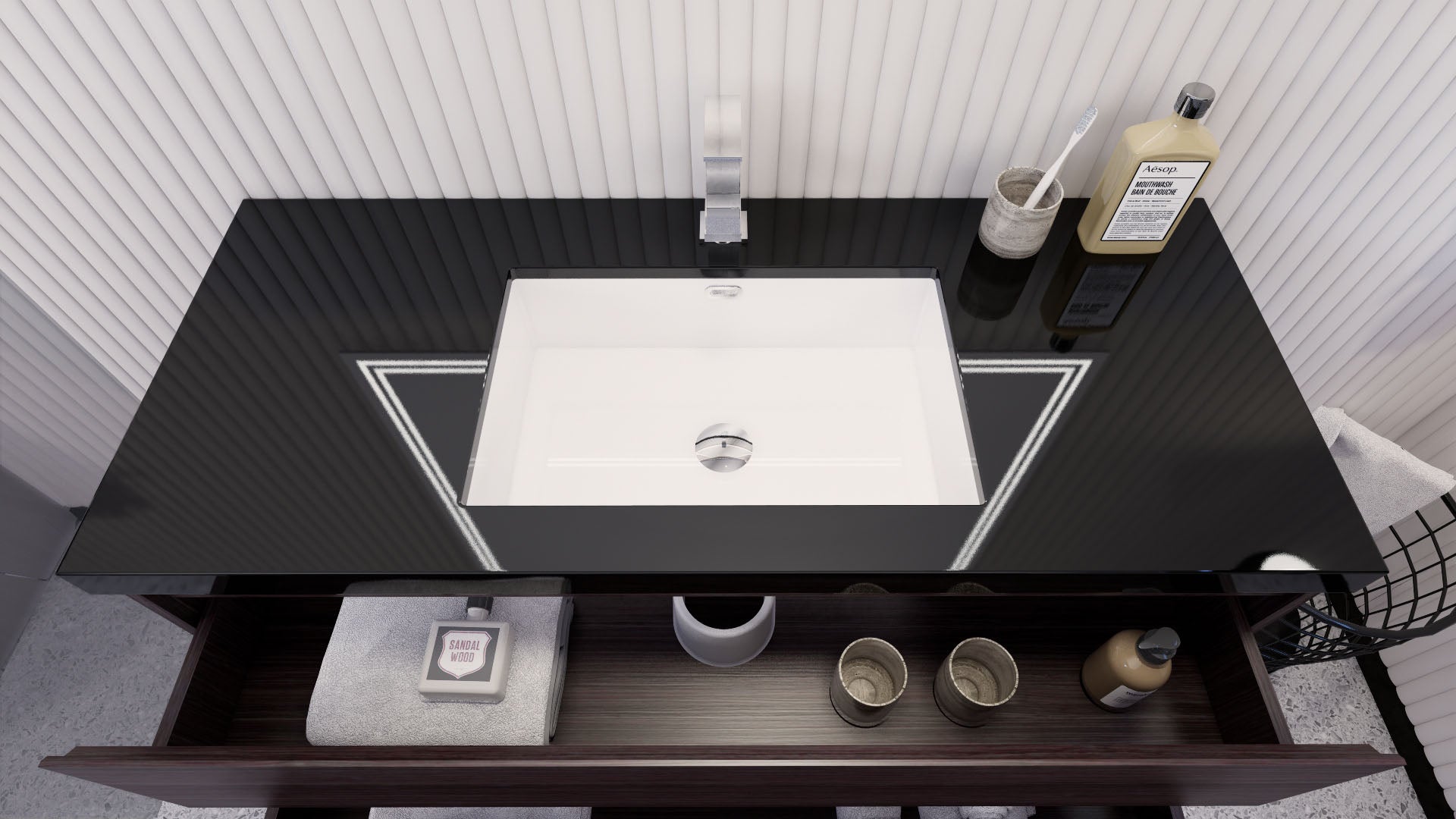 • Reinforced acrylic sink top
