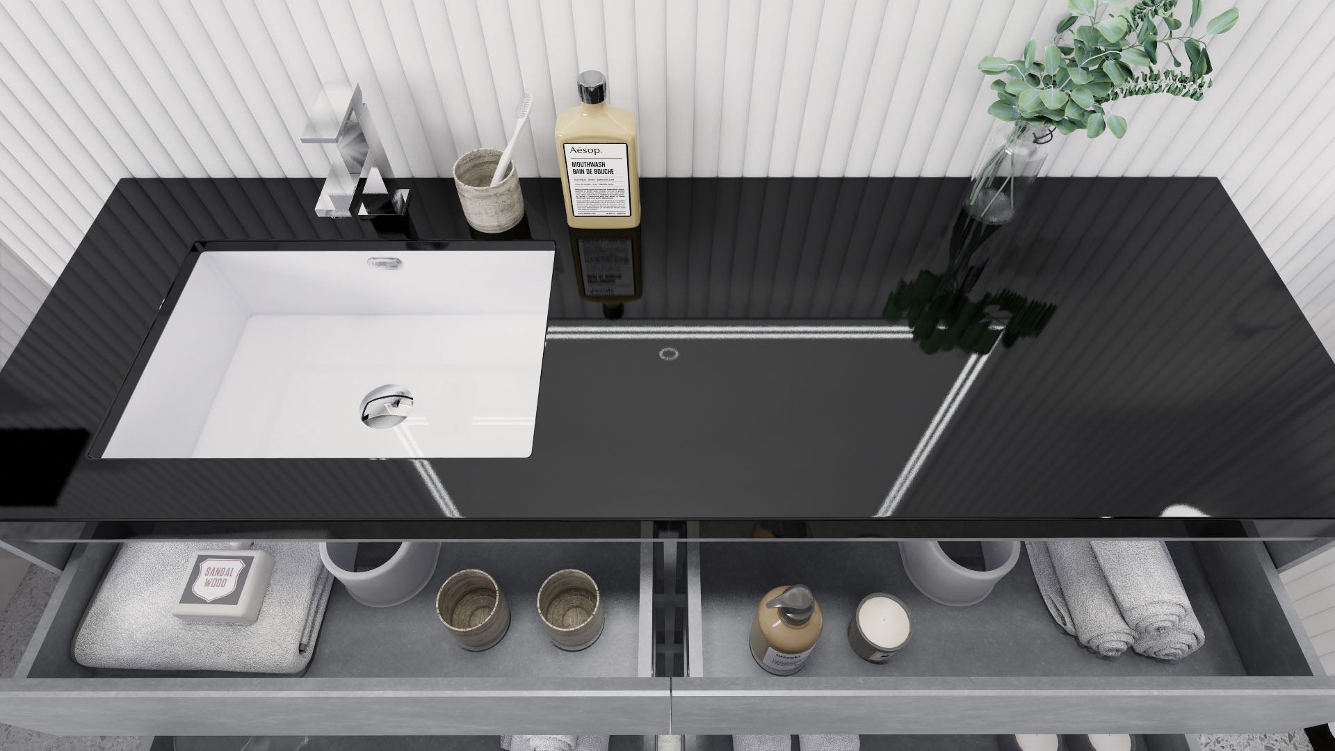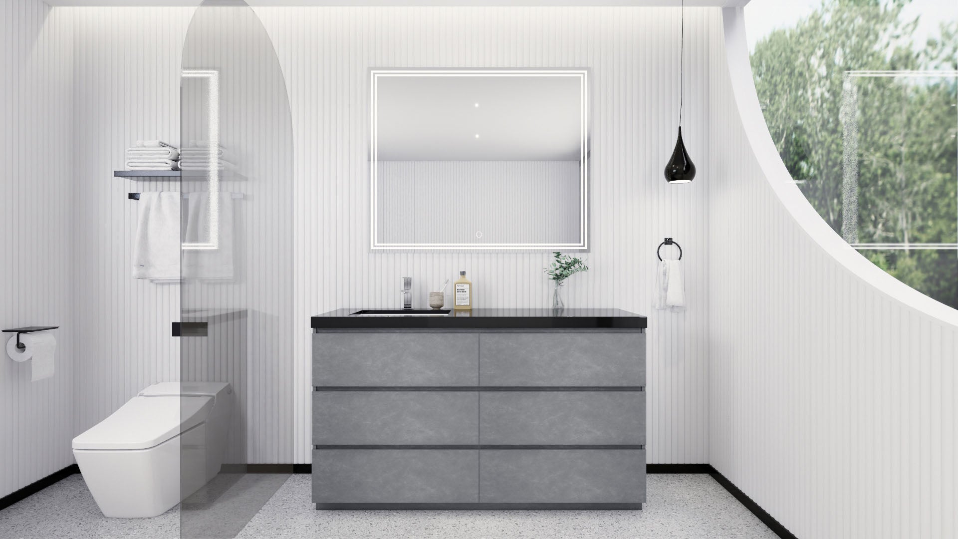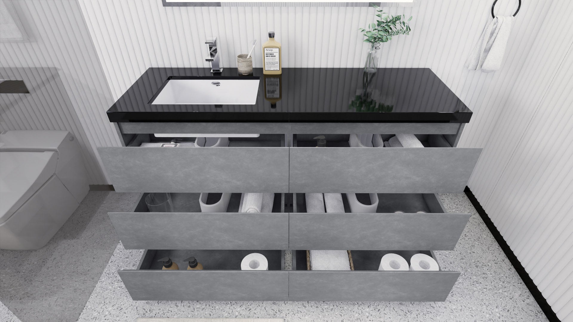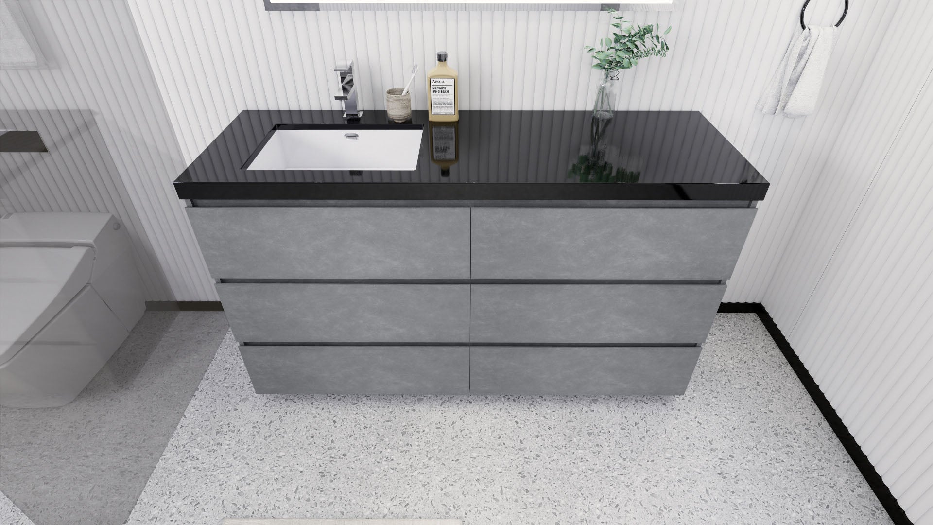 Stanley 60" Cement Gray Freestanding Vanity with Reinforced Acrylic Left Side Sink