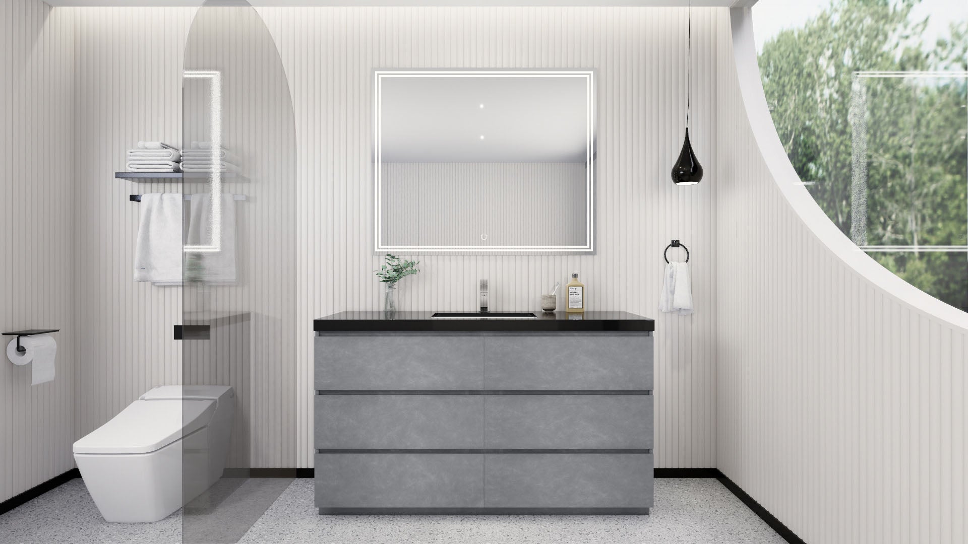 Stanley 60" Cement Gray Freestanding Vanity with Reinforced Acrylic Sink
