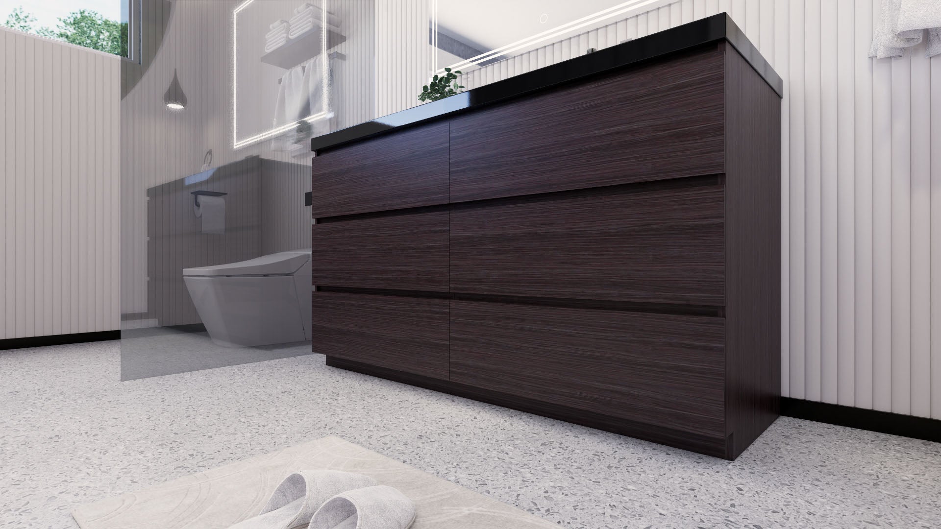 Stanley 60" Dark Gray Oak Freestanding Vanity with Reinforced Acrylic Right Side Sink