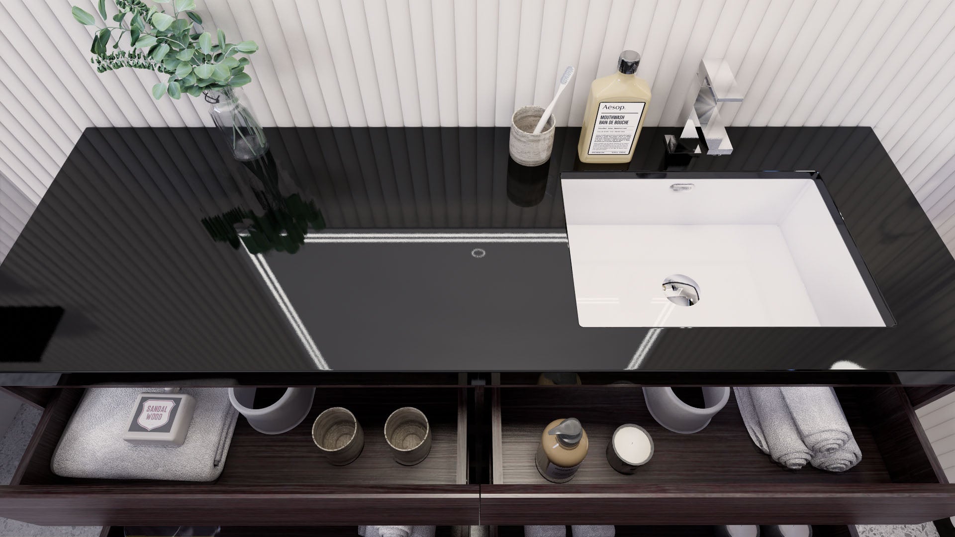 • Reinforced acrylic sink top