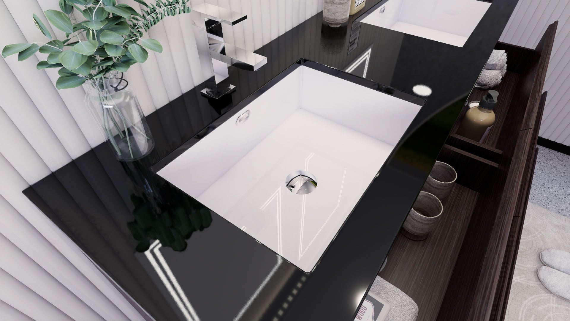 • Reinforced acrylic sink top