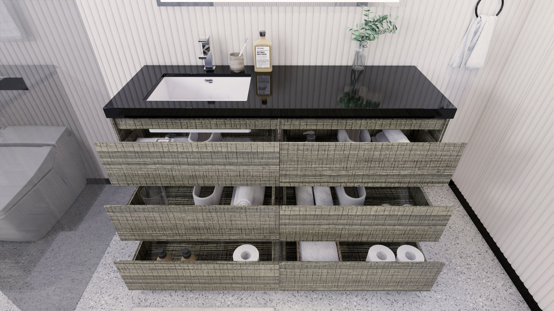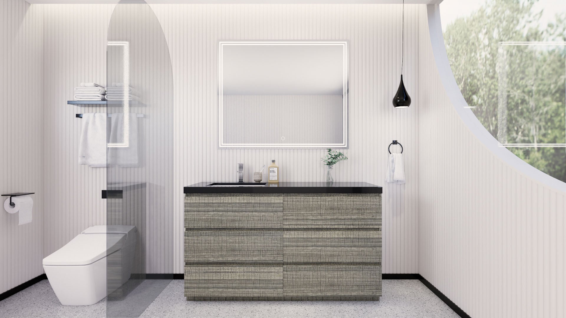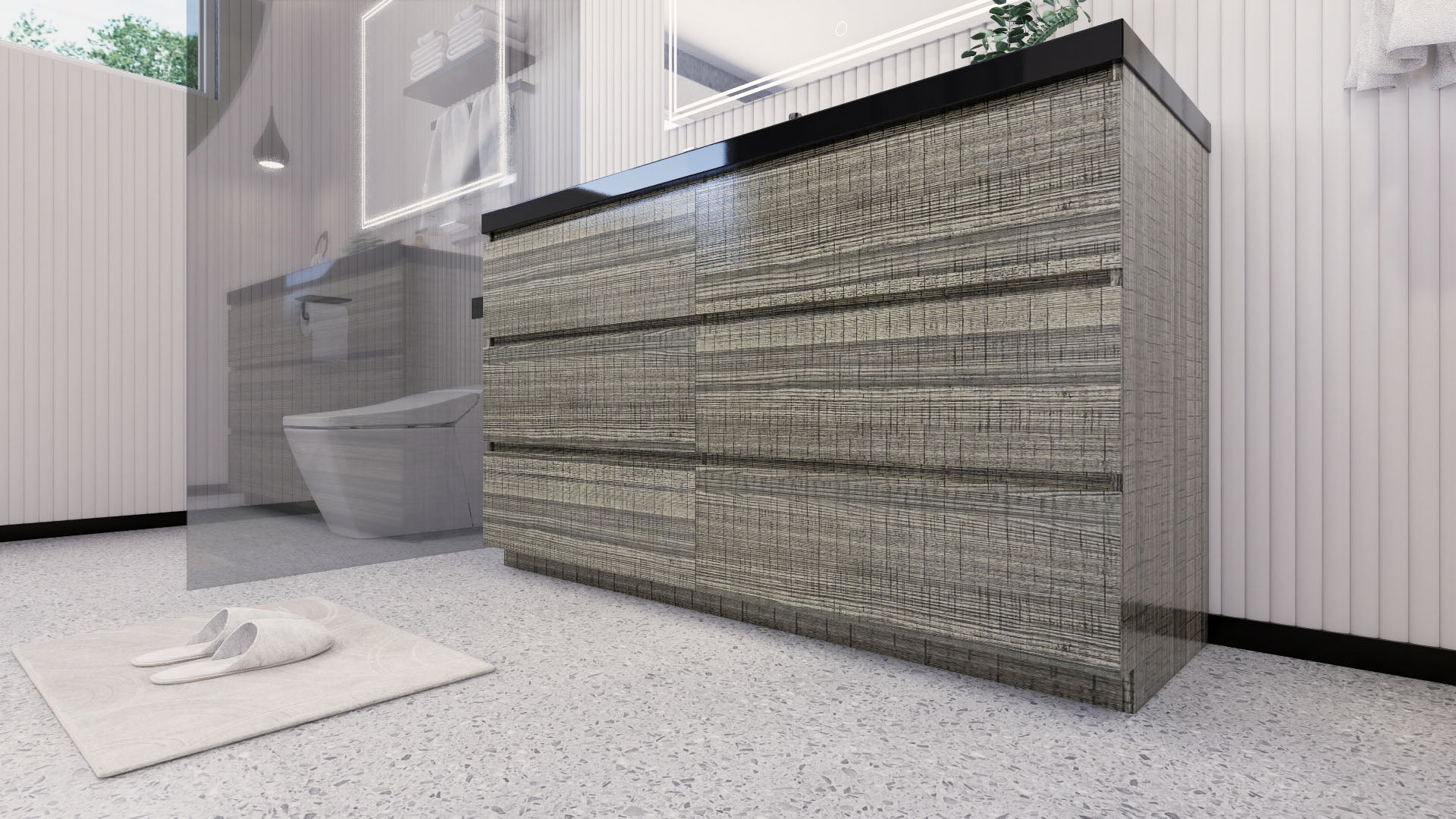 Stanley 60" High Gloss Ash Gray Freestanding Vanity with Reinforced Acrylic Left Side Sink