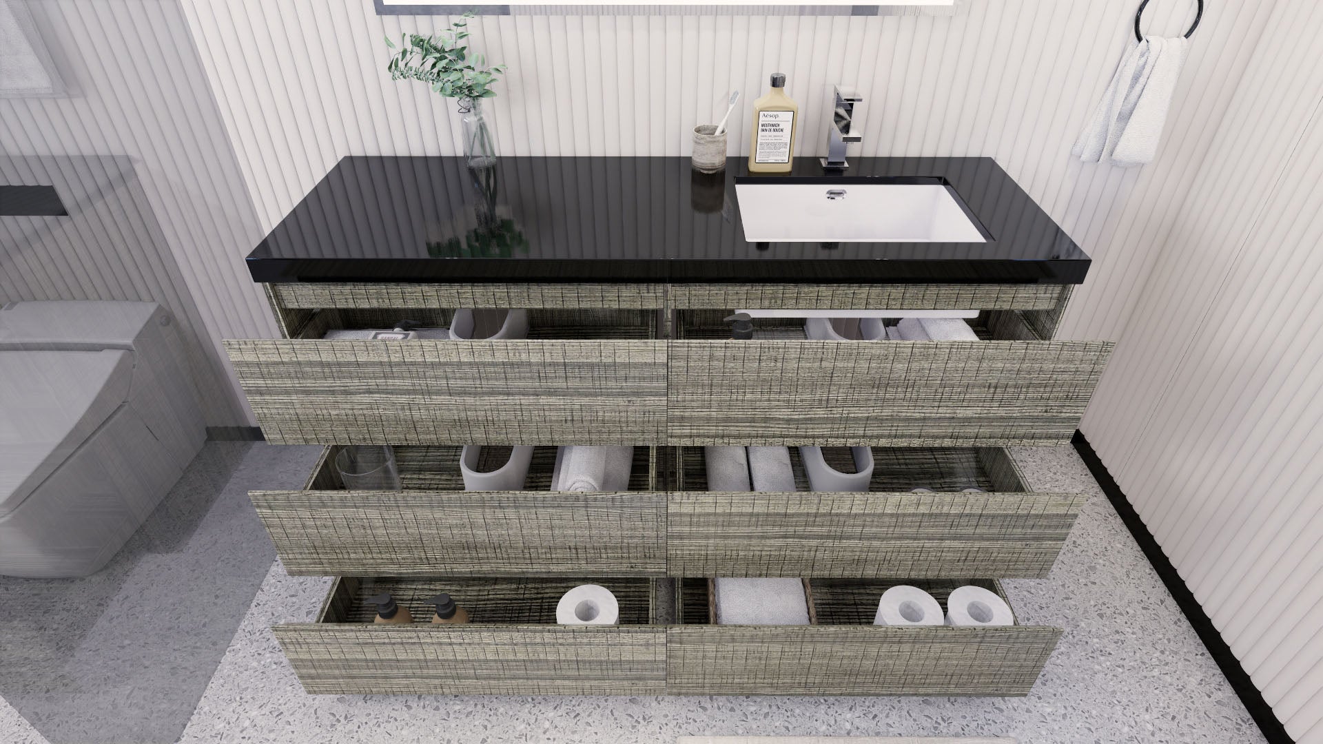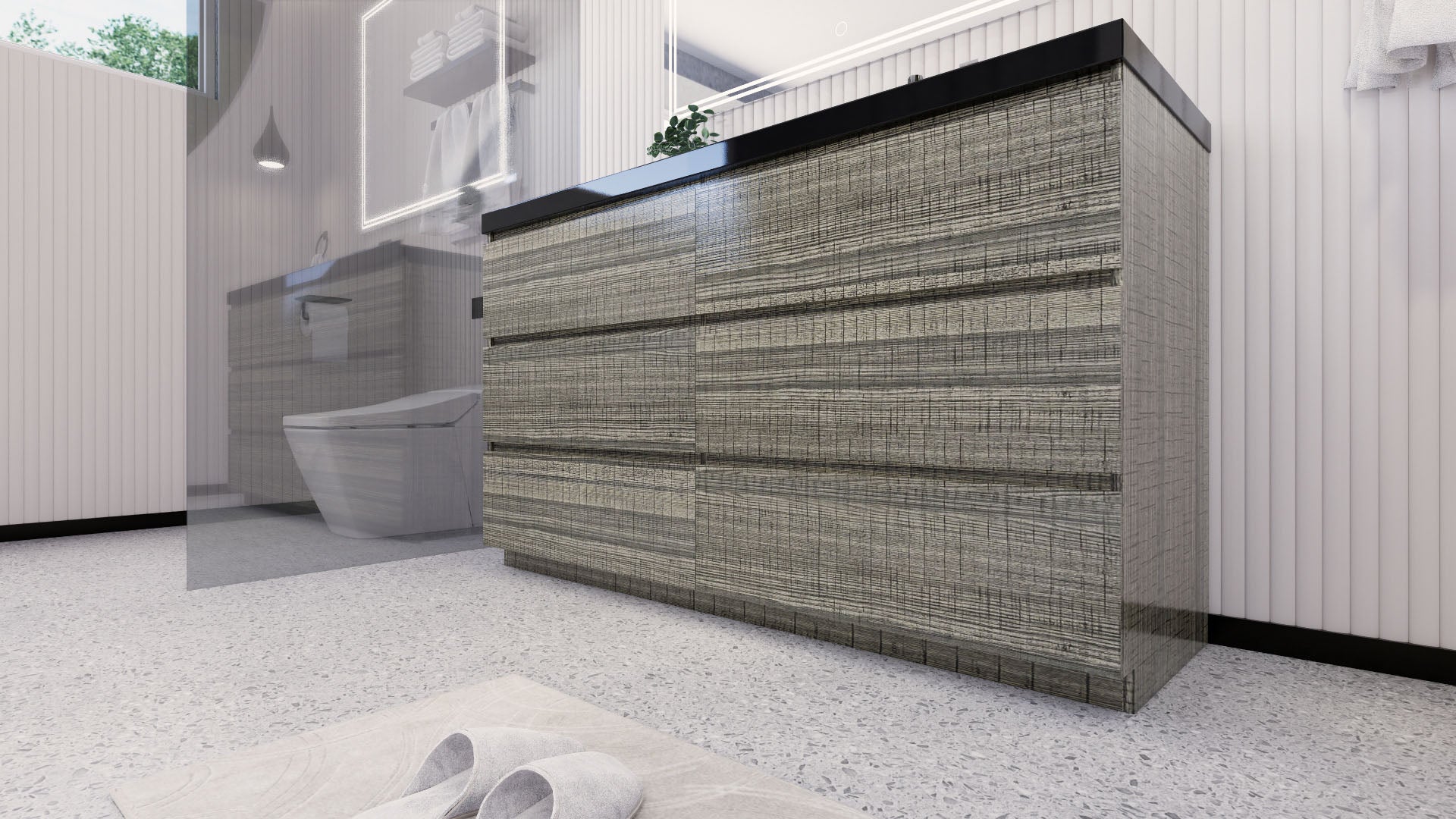 Stanley 60" High Gloss Ash Gray Freestanding Vanity with Reinforced Acrylic Right Side Sink