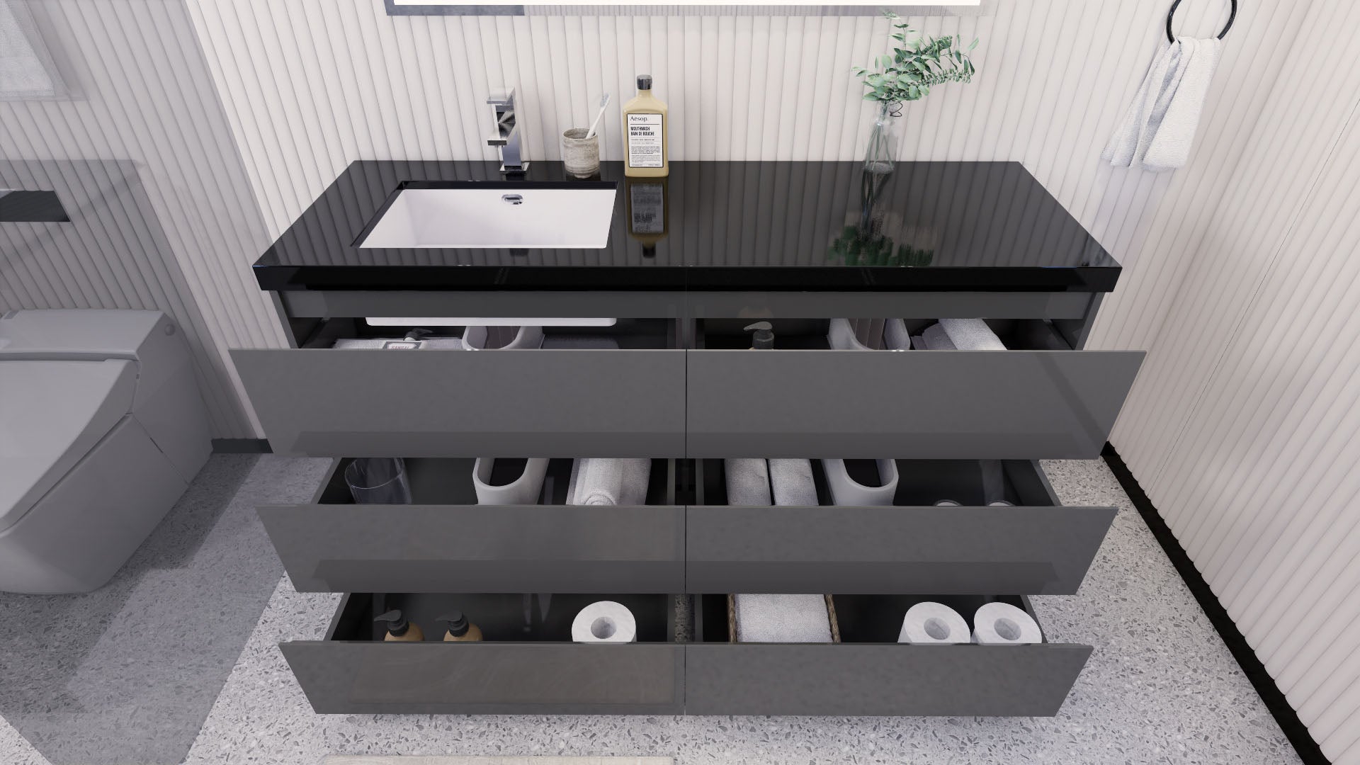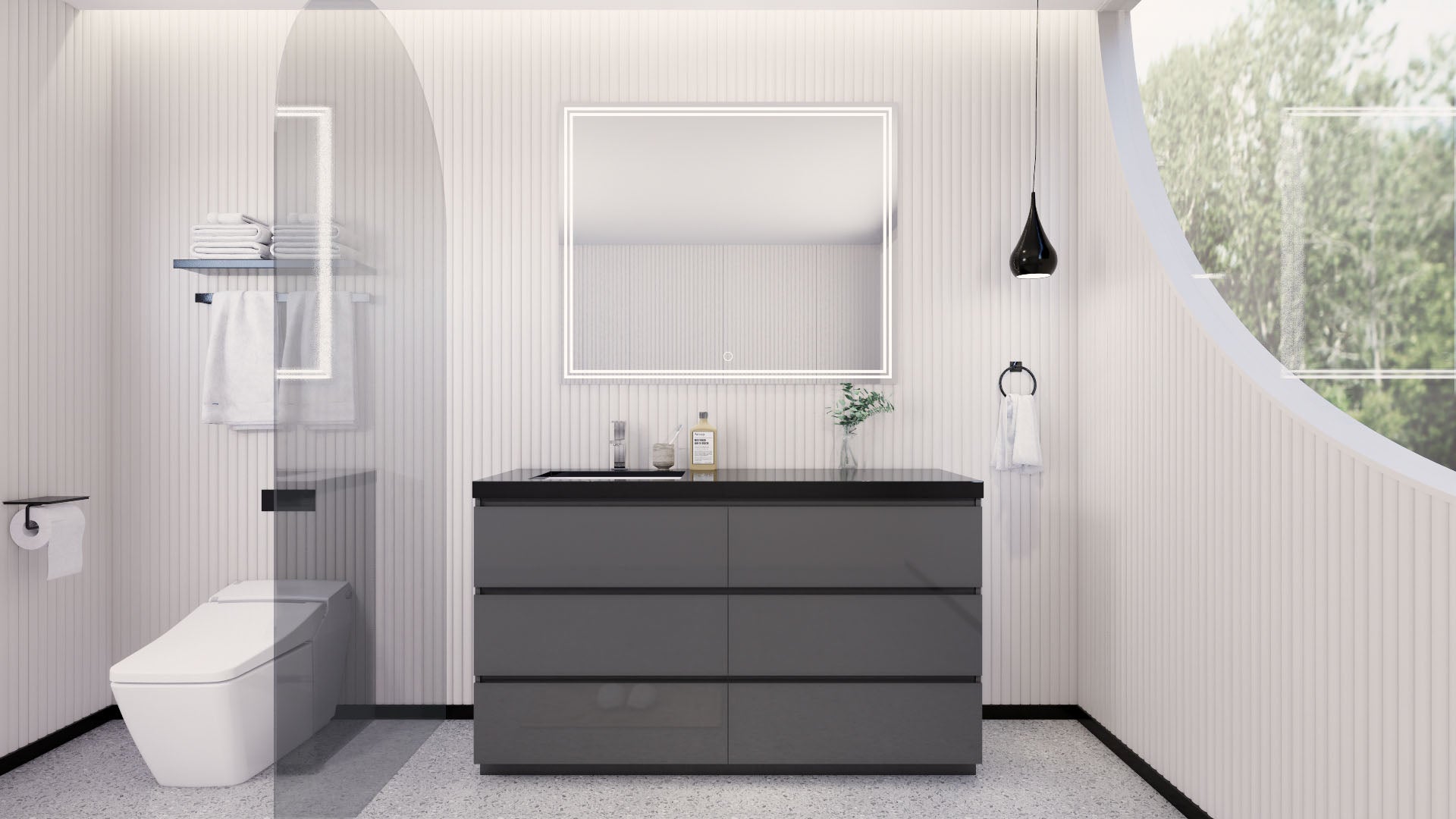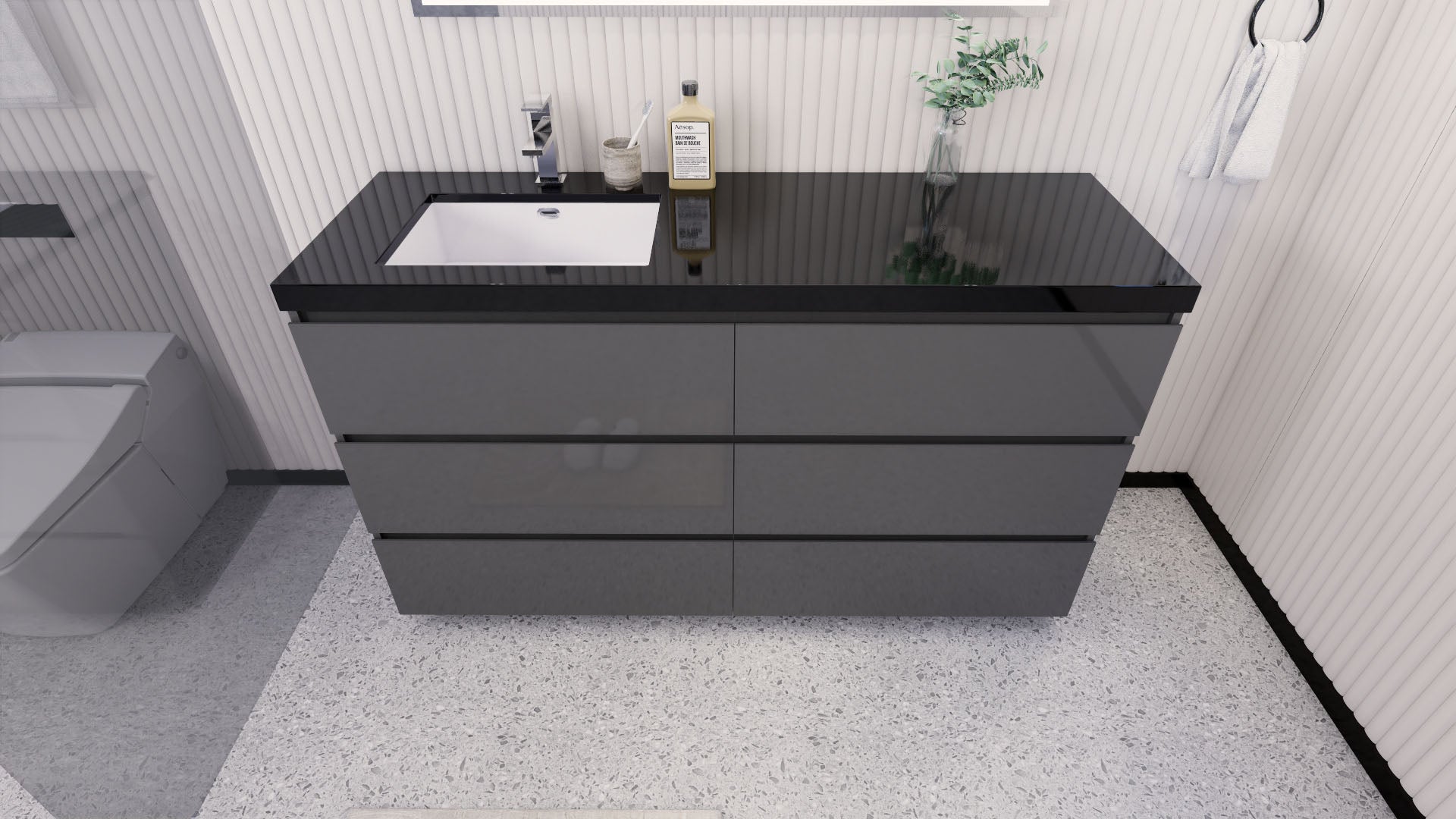 Stanley 60" High Gloss Gray Freestanding Vanity with Reinforced Acrylic Left Side Sink