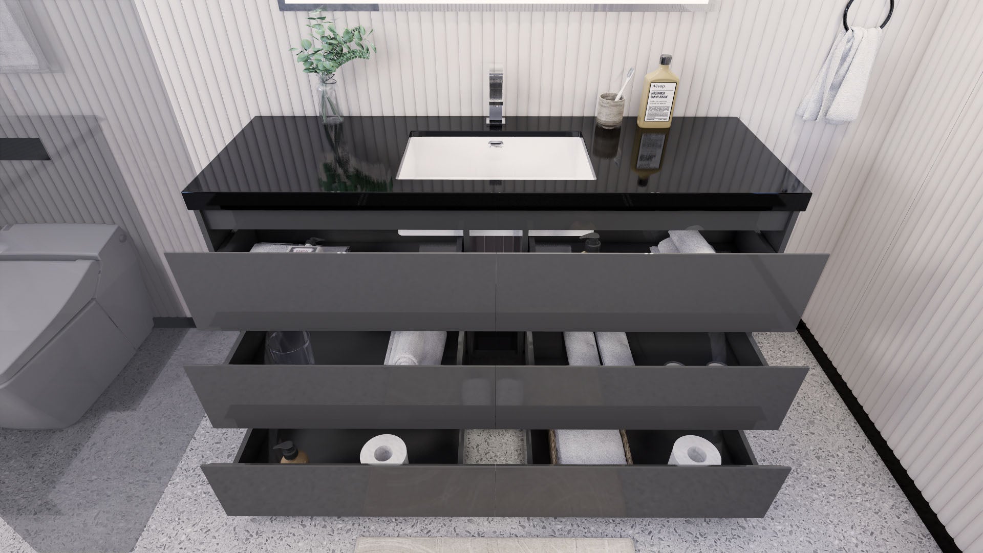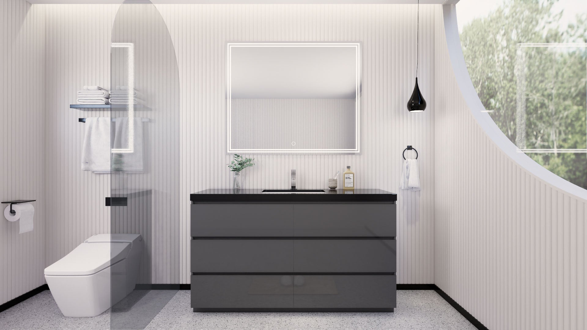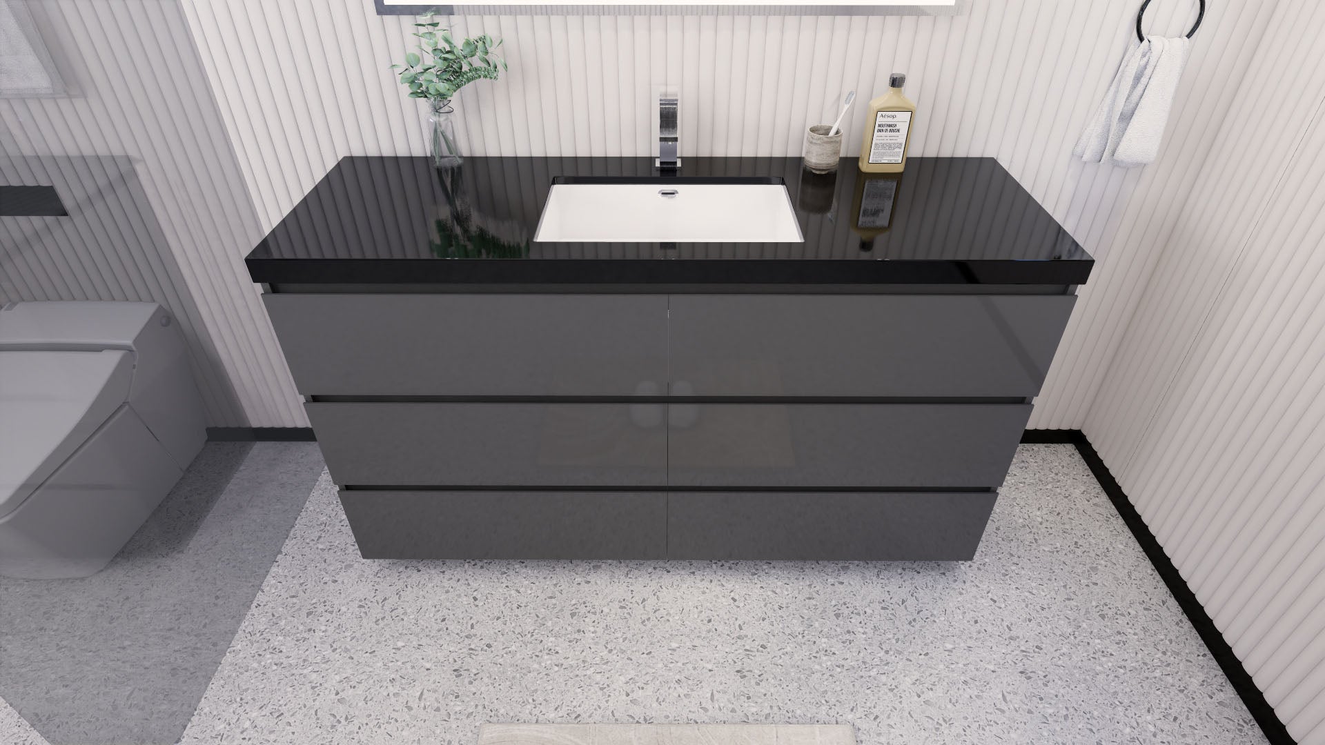 Stanley 60" High Gloss Gray Freestanding Vanity with Reinforced Acrylic Sink