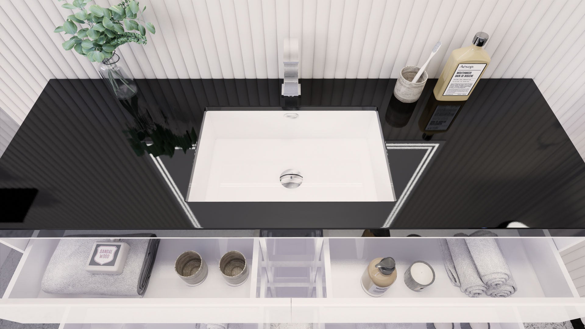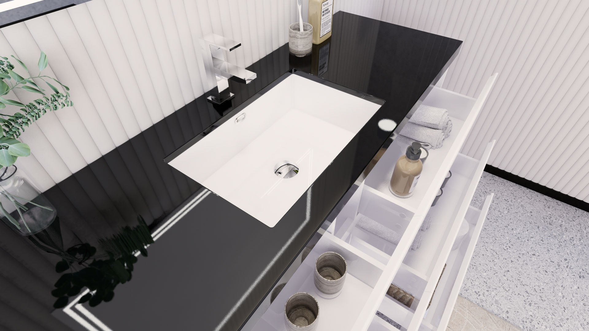 • Reinforced acrylic sink top