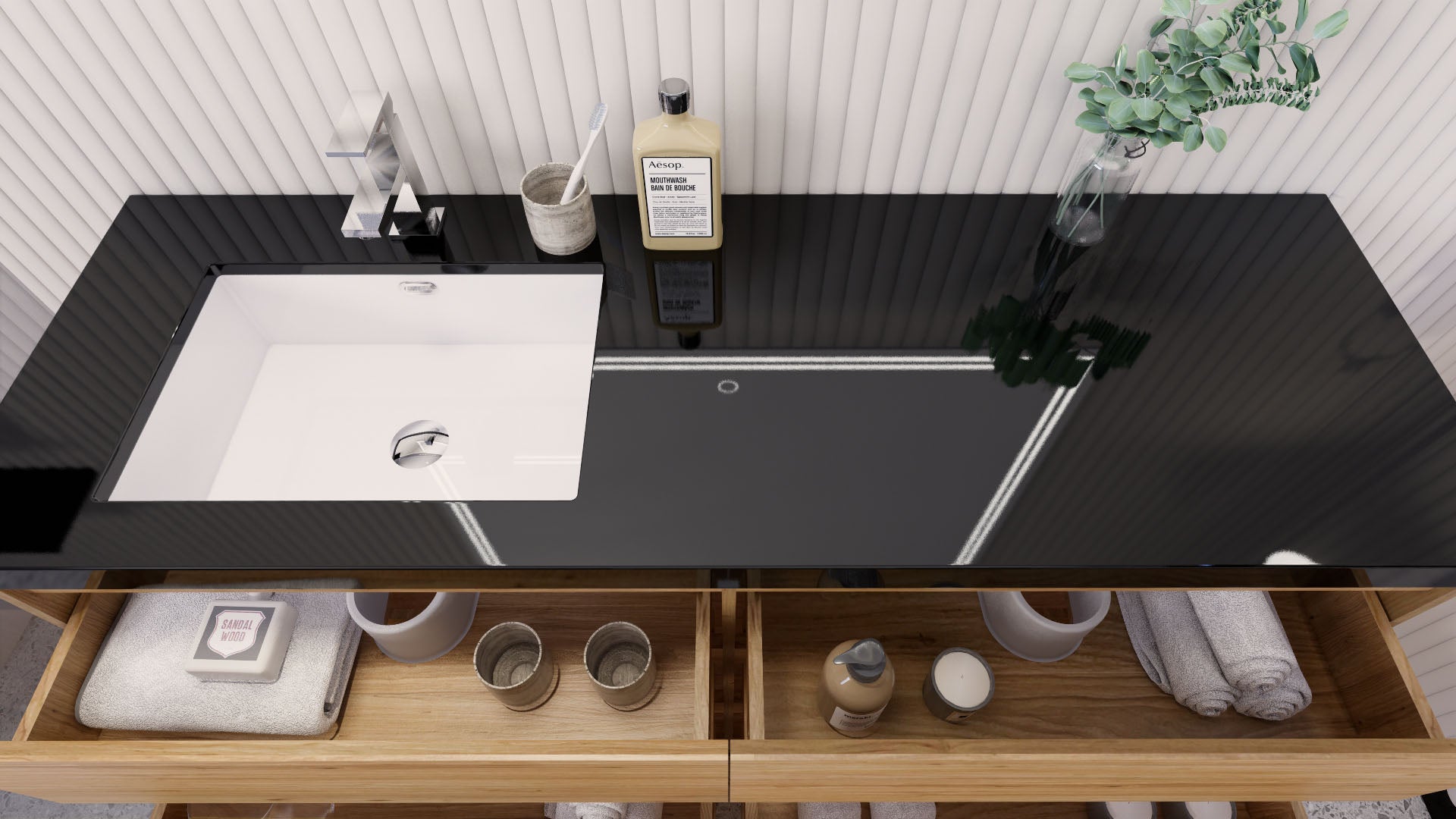 • Reinforced acrylic sink top