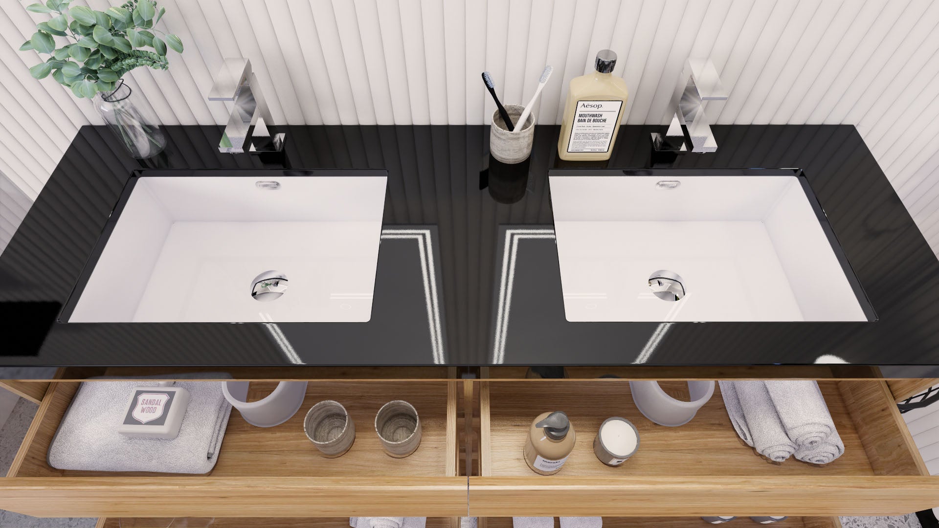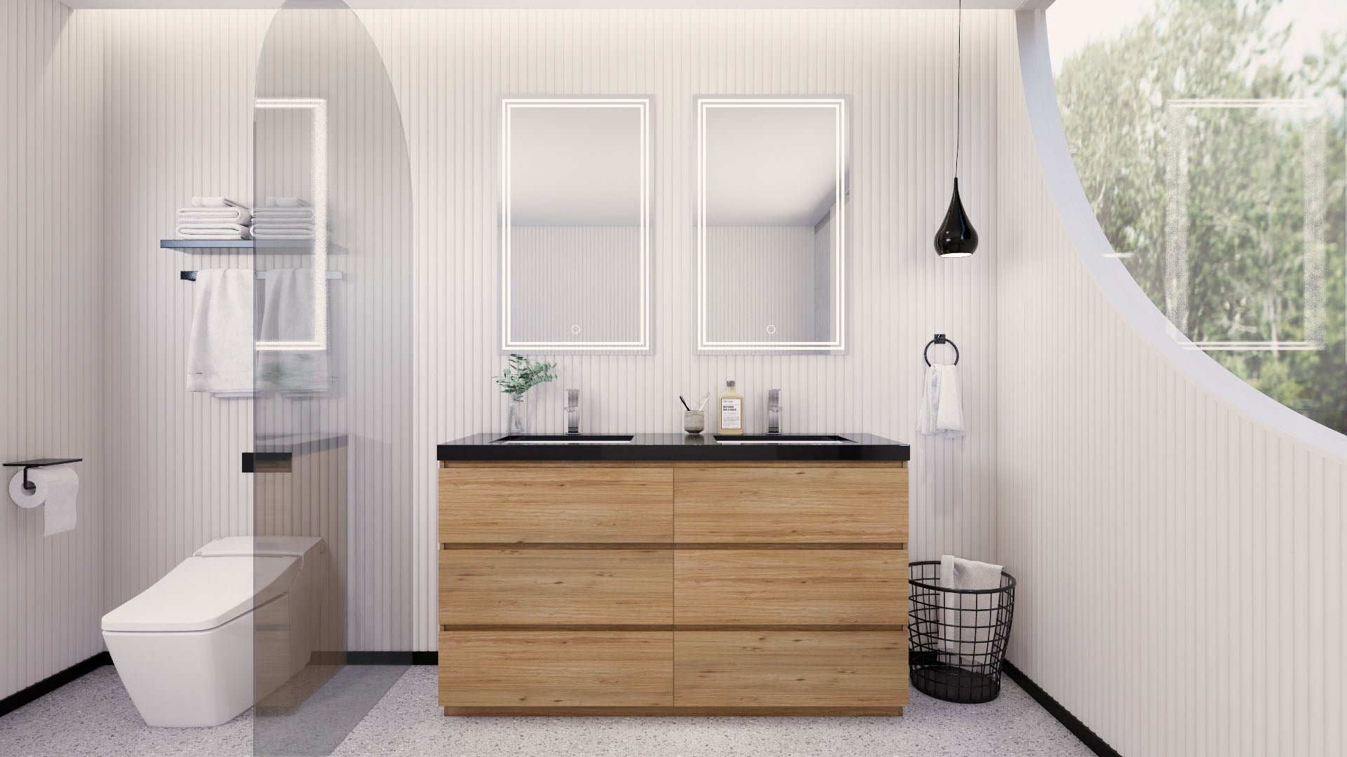 Stanley 60" Natural Oak Freestanding Vanity with Reinforced Acrylic Sinks
