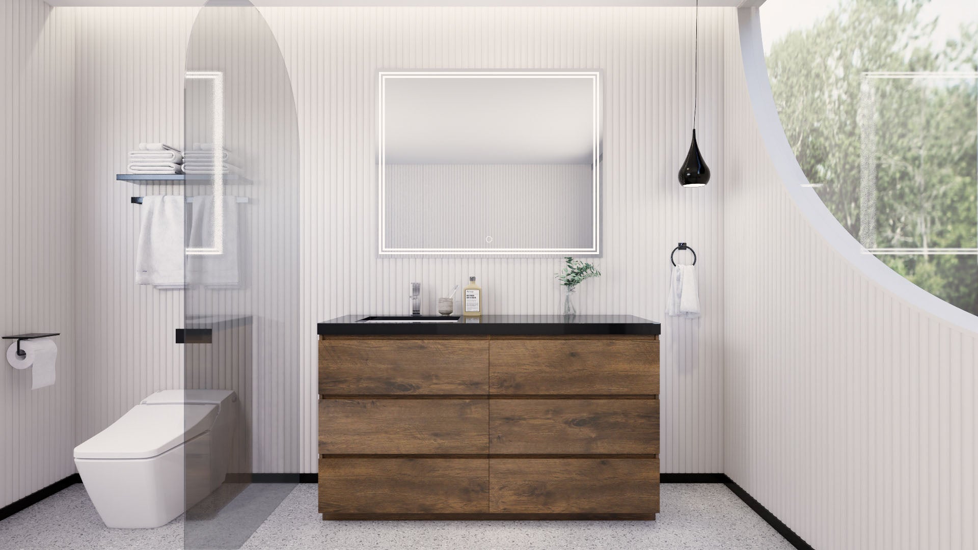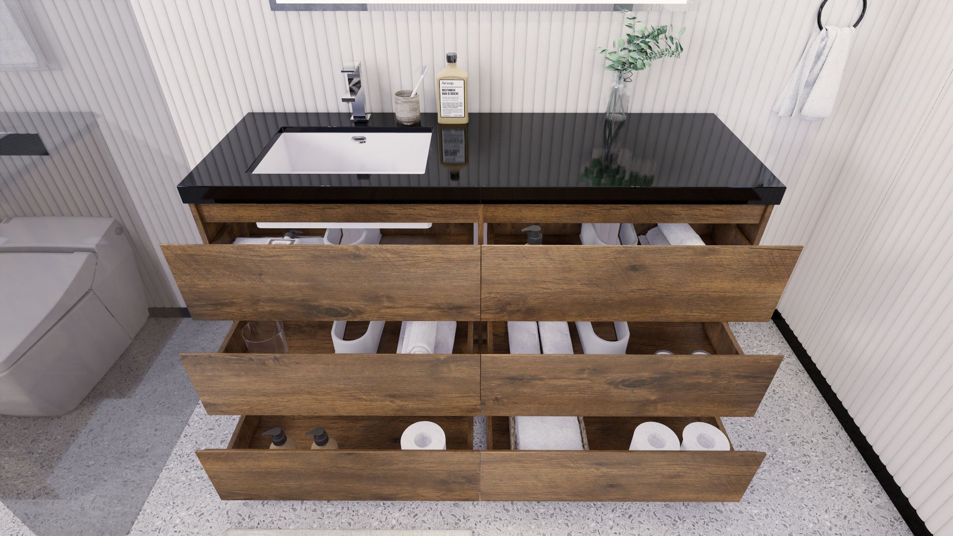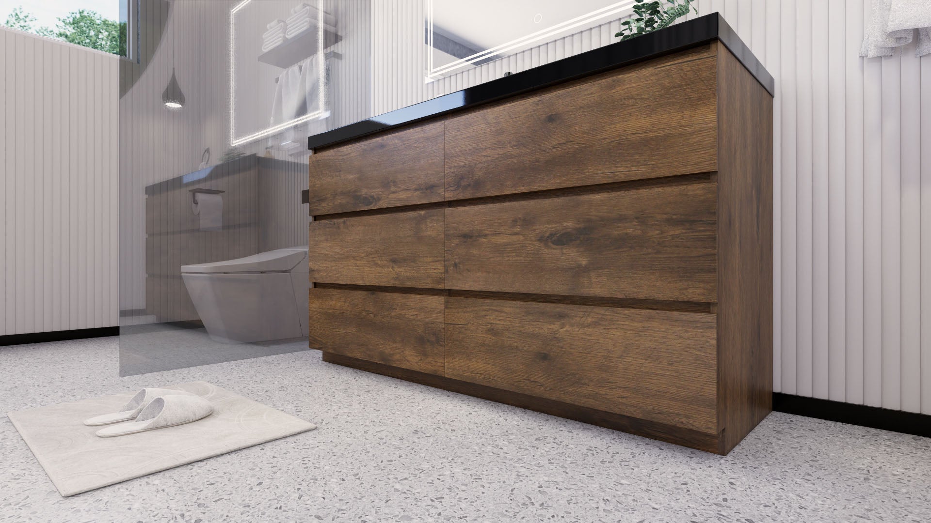 Stanley 60" Rosewood Freestanding Vanity with Reinforced Acrylic Left Side Sink
