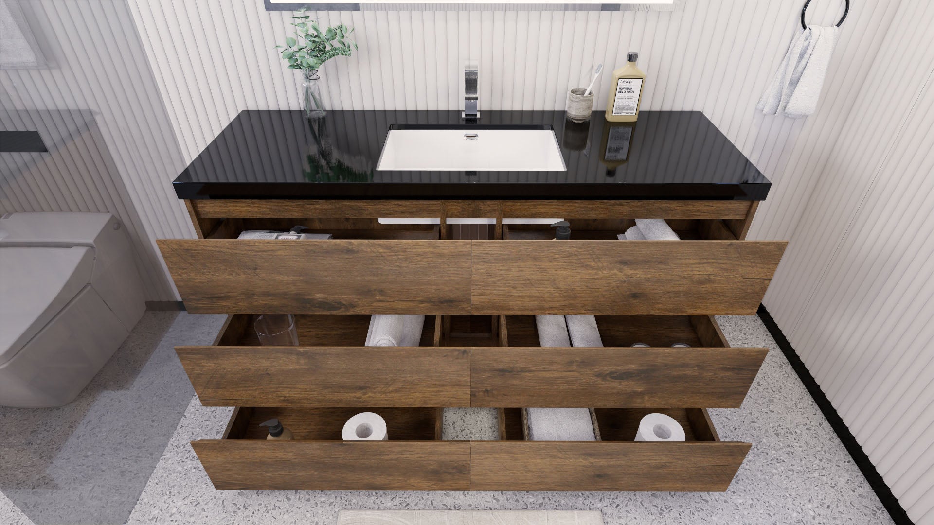 Stanley 60" Rosewood Freestanding Vanity with Reinforced Acrylic Sink