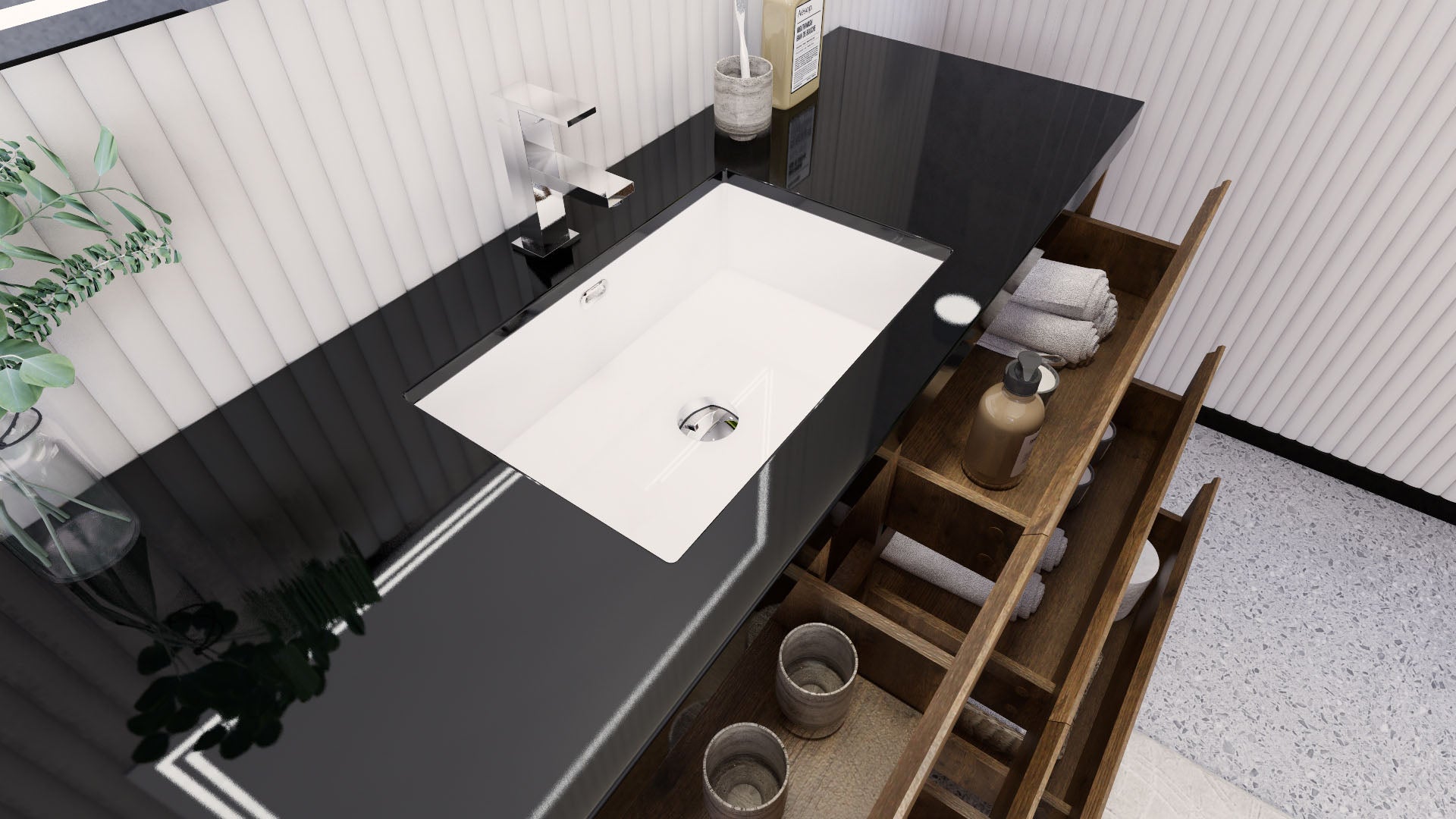 • Reinforced acrylic sink top