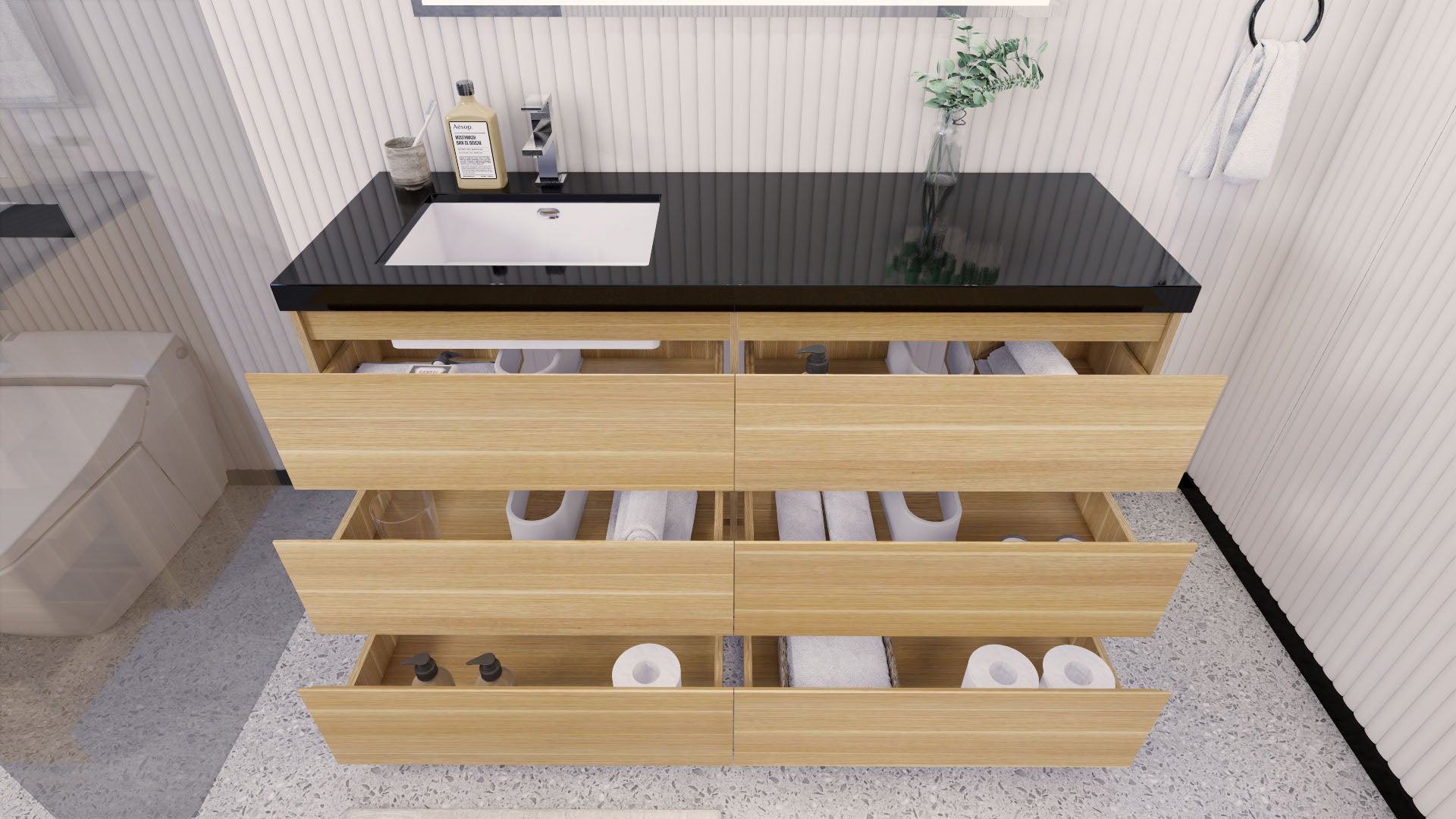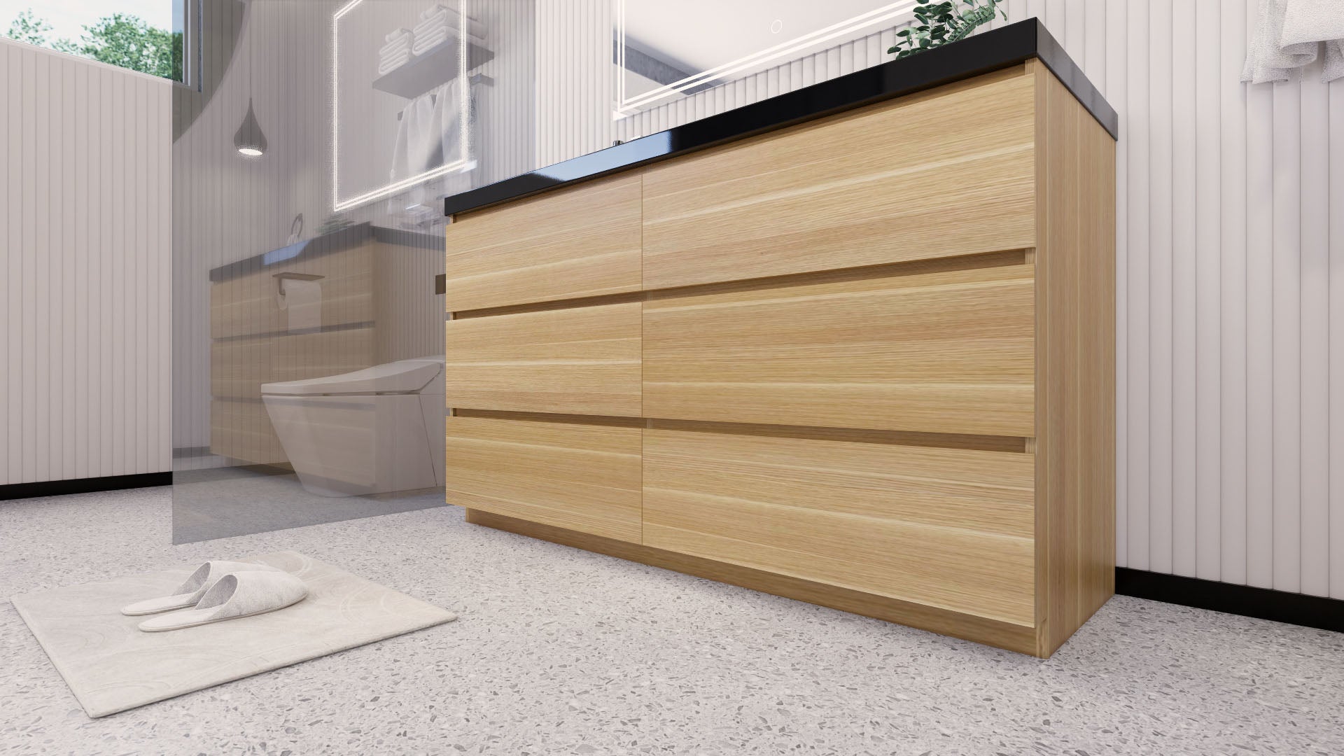 Stanley 60" White Oak Freestanding Vanity with Reinforced Acrylic Left Side Sink