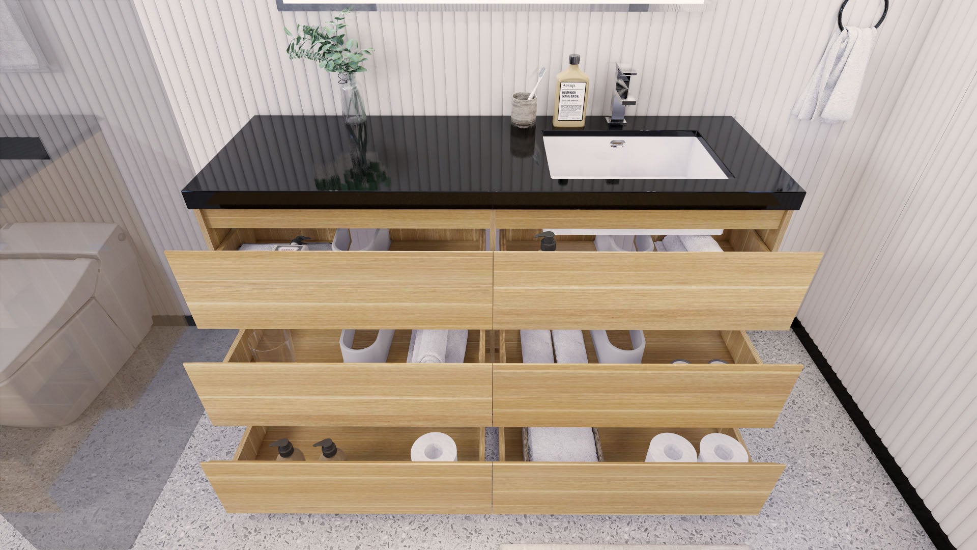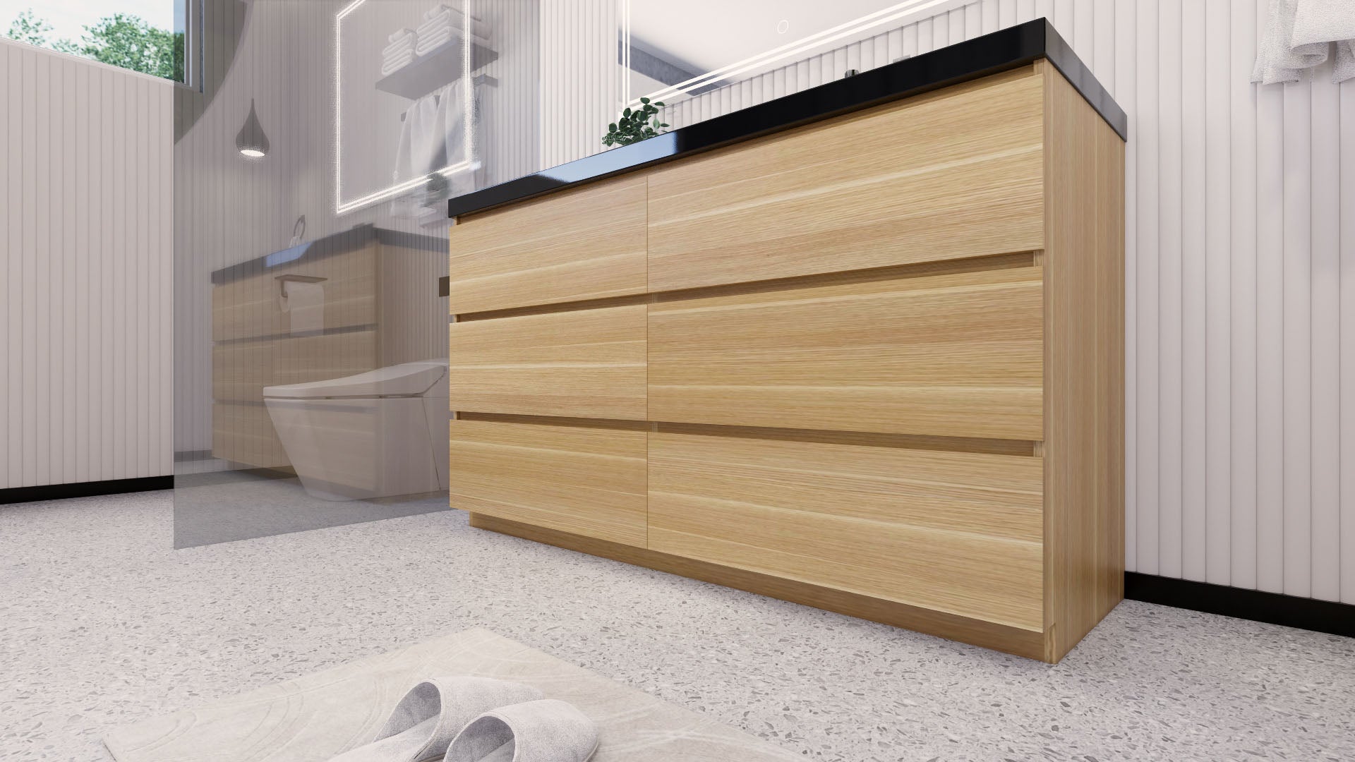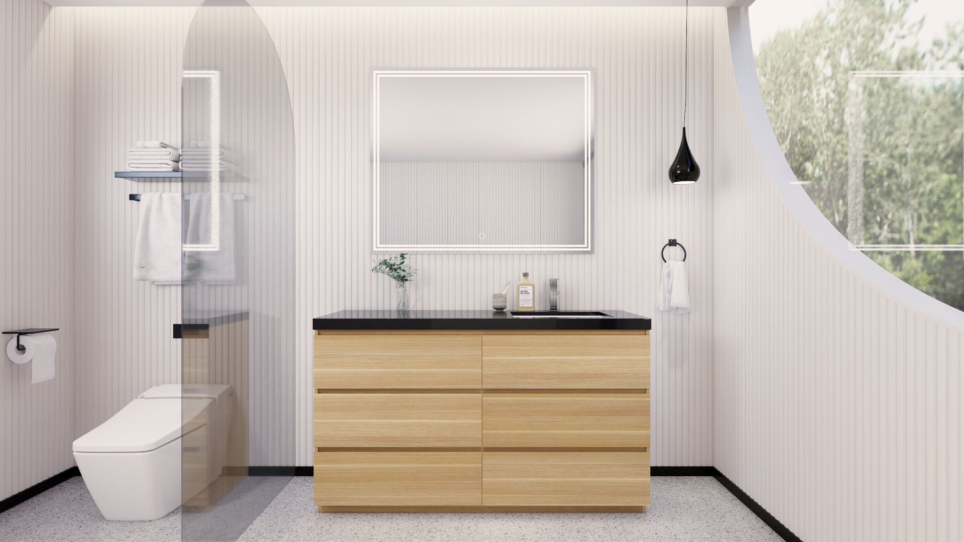 Stanley 60" White Oak Freestanding Vanity with Reinforced Acrylic Right Side Sink