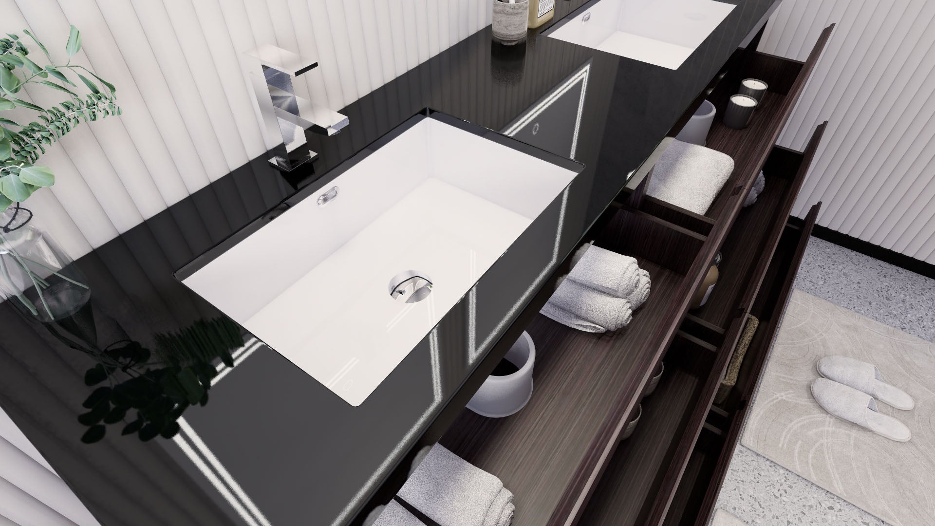 • Reinforced acrylic sink top
