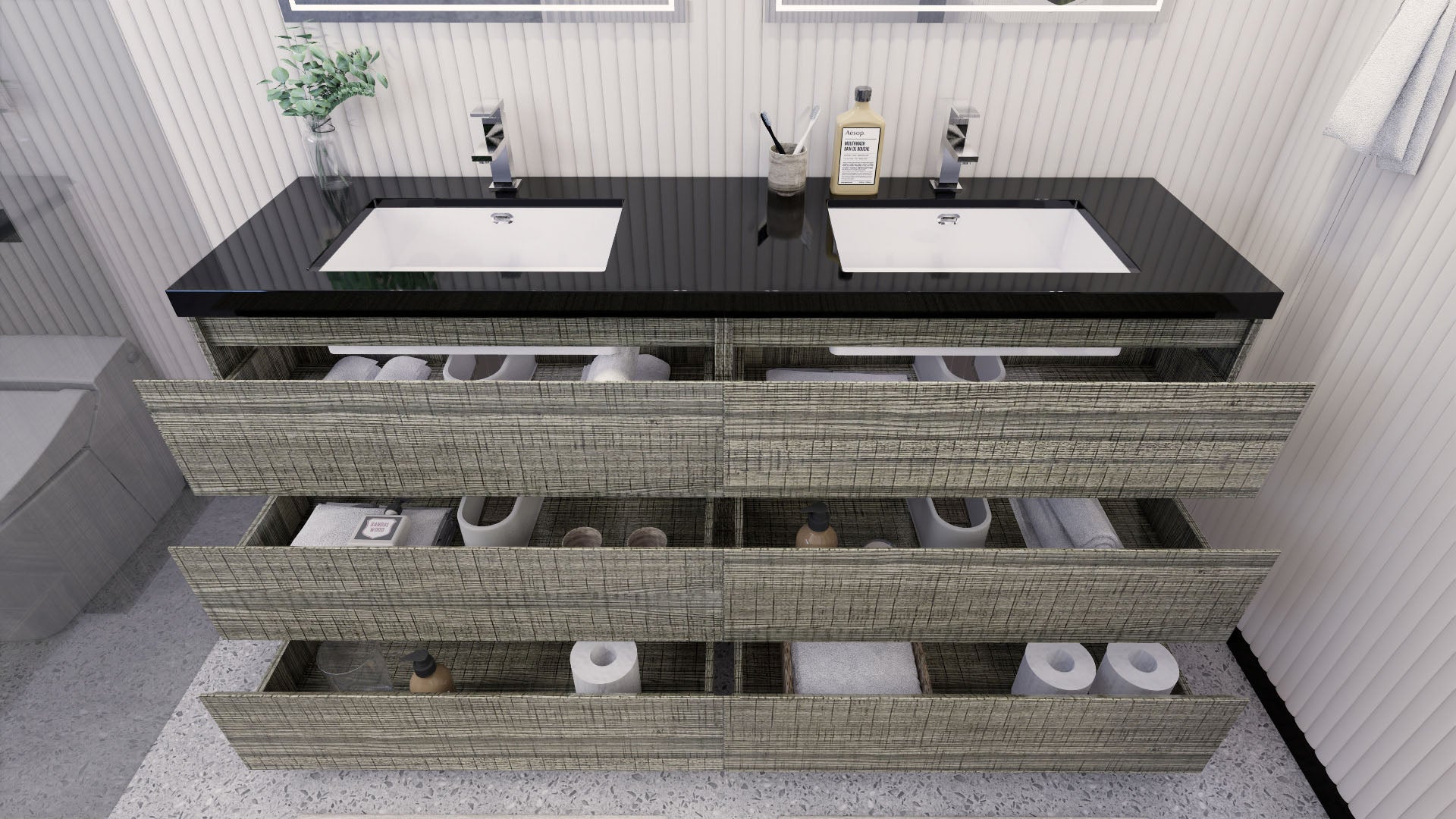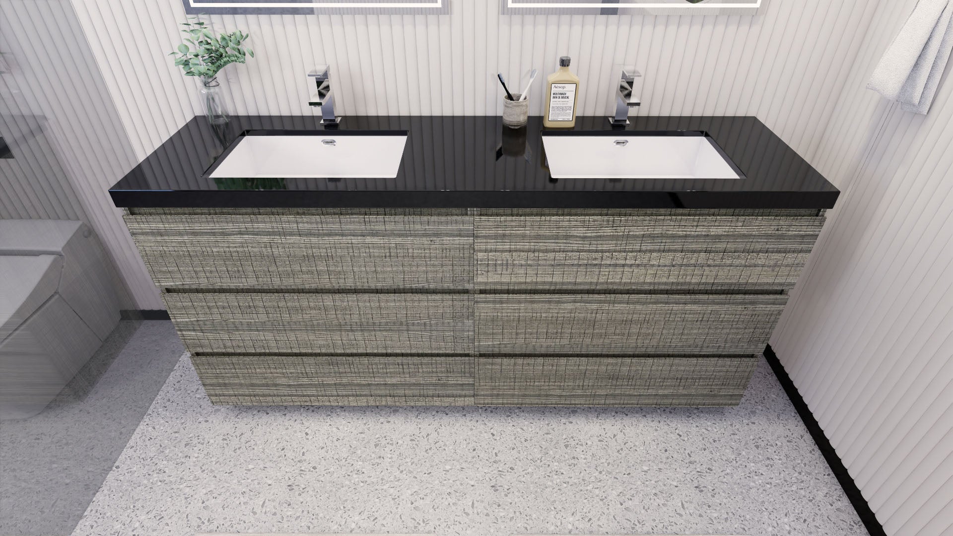 Stanley 72" High Gloss Ash Gray Freestanding Vanity with Reinforced Acrylic Sinks