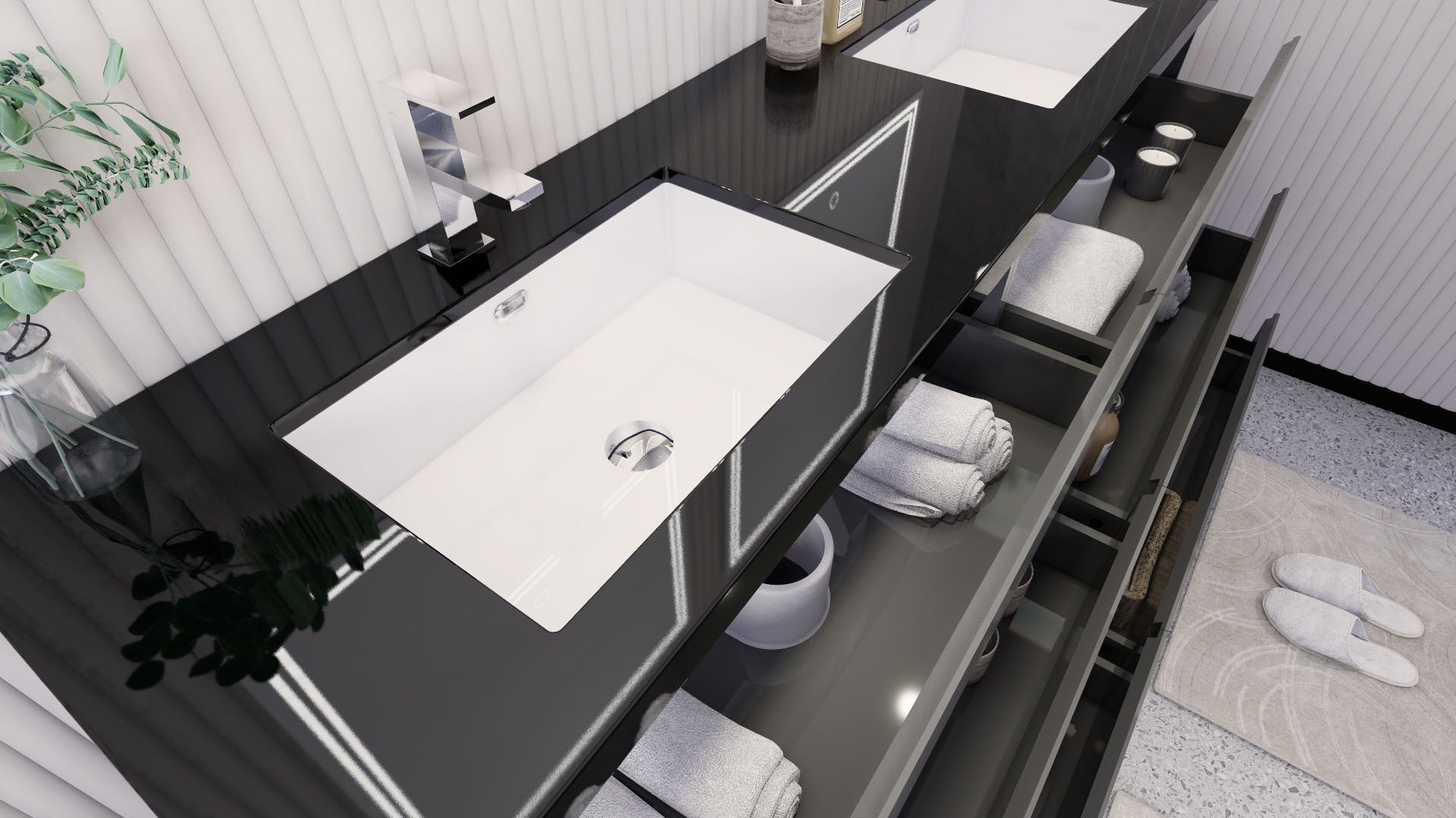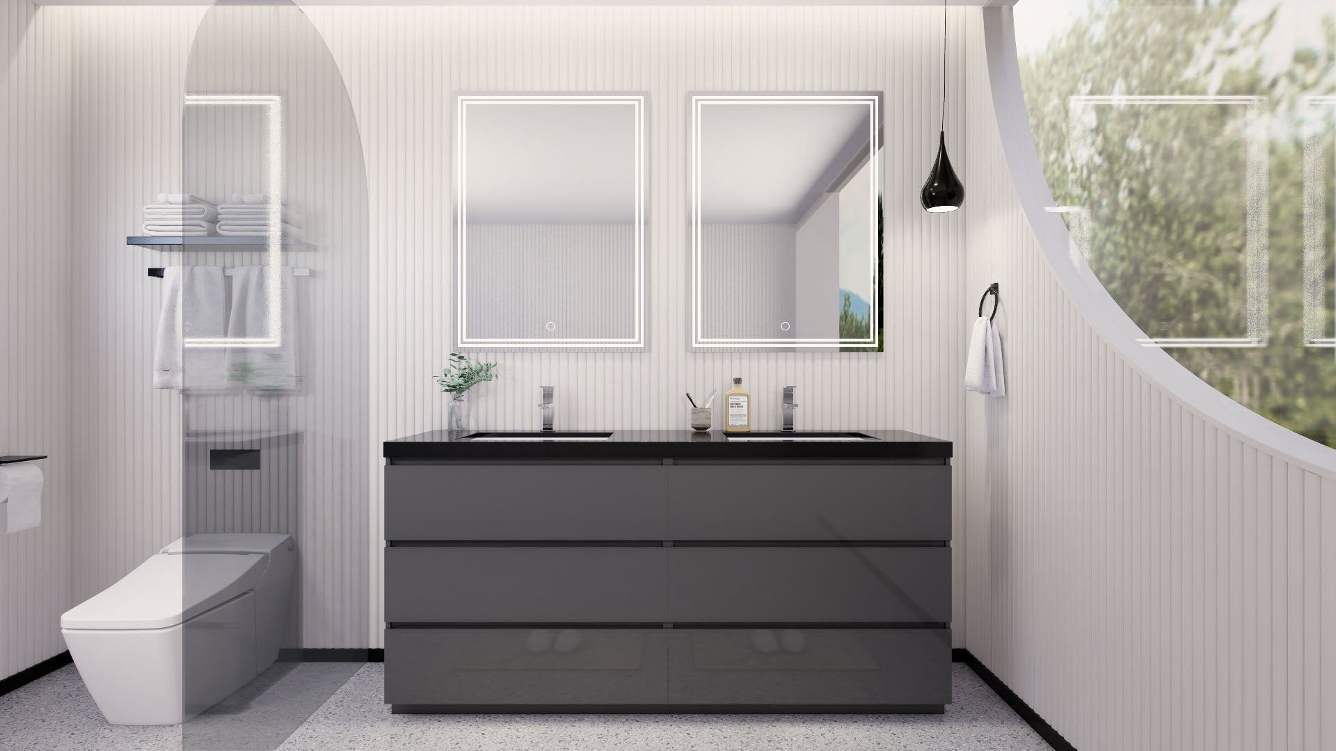 Stanley 72" High Gloss Gray Freestanding Vanity with Reinforced Acrylic Sinks